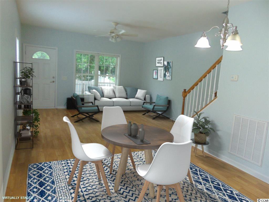 Very unique townhome style condo, think more duplex in this 3 bedroom, 2 and a half bath unit on the desirable east side of 17 Business in Surfside Beach, known as the ""Family Beach""! Lots of room to spread out, the front room can double as an extra living space and dining, opening to the kitchen. In the back is another living space and a half bath. Follow through to a private fenced in back yard with a great porch. Plenty of room for grilling or a fire pit! Upstairs you will find a great size master bedroom with private balcony and bath. There are 2 additional bedrooms upstairs along with a hall bath and convenient laundry on the second floor as well. The HOA is self managed and includes the building insurance. The interior was freshly painted and ready to move in! Only a few blocks to the ocean, Surfside residents can take their golf cart to the beach and park for free! Ideal location, don't let this one get away! Square footage is approximate and not guaranteed. Buyer is responsible for verification. Some photos in this listing have been virtually staged.