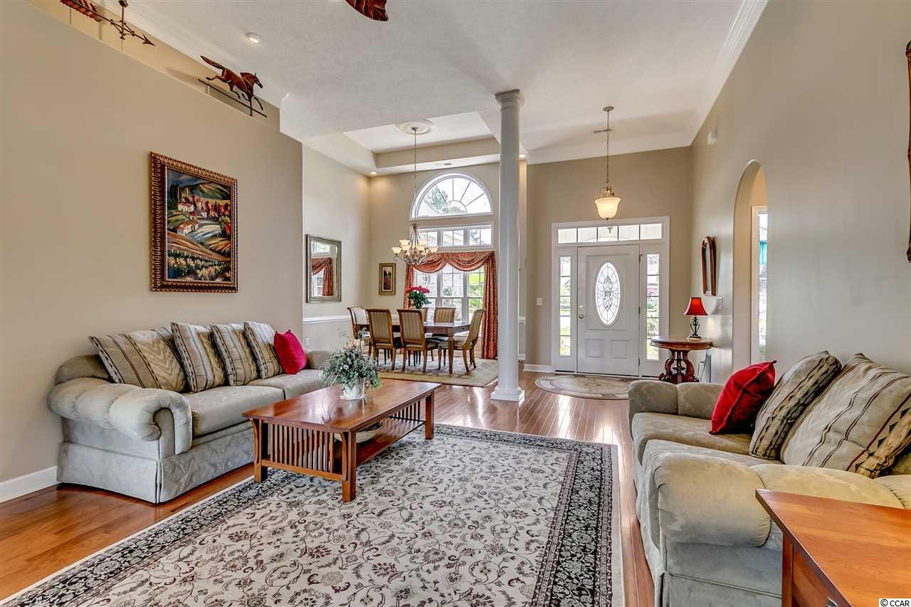 Spectacular lake views await from this immaculately maintained cul-de-sac home in the quiet community of Waterford Plantation in the Carolina Forest area of Myrtle Beach! From the time you step through the front door, your eyes are immediately drawn to the panoramic lake views. This home boasts numerous upgrades, including cherry cabinets with under-mount lighting, premium granite countertops, hardwood floors, in-wall high-end speaker system, water filtration system, Jacuzzi tub, vaulted ceilings, crown molding, Carolina room, screened porch, ceiling fans, walk-in attic storage, extensive landscaping, and more. There are three bedrooms and two baths downstairs and a bedroom and bath upstairs. This is a well-loved home, occupied and meticulously maintained by the original owners. This cul-de-sac lot is pie shaped, which makes for a super wide back yard (privacy) with huge lake frontage, affording stunning views of a lake that's teaming with wildlife. The architectural detail and extensive landscaping make this home a paradise. Waterford Plantation is a peaceful, established neighborhood with mature trees, and the location is only minutes away from shopping, grocery stores, health care providers, great restaurants, fantastic schools, and numerous golf courses. Call an agent to schedule your showing today!
