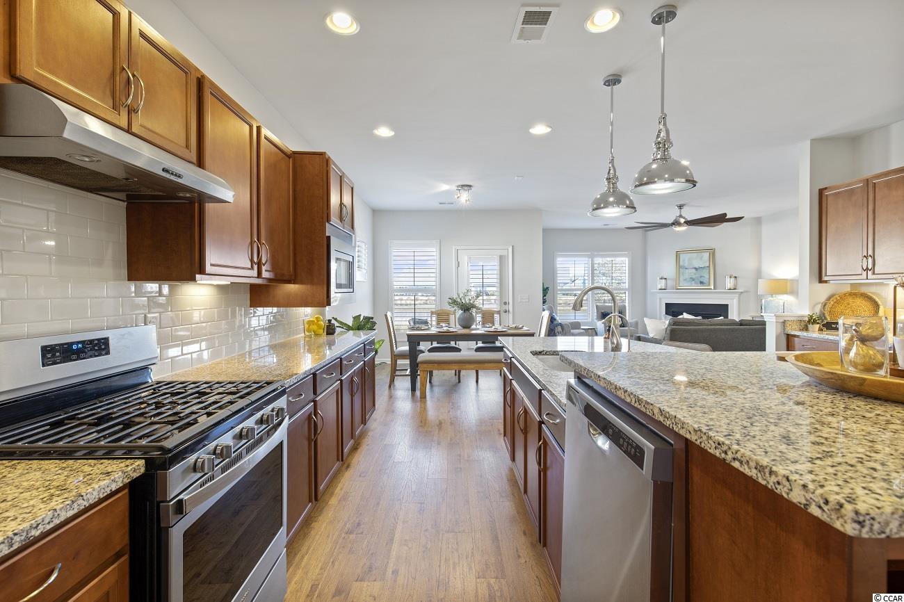 OPEN HOUSE SUNDAY, JANUARY 23rd 12:00-3:00 PM. SERENE WATERVIEW, PREMIUM X-LARGE LOT- MOVE-IN READY in Del Webb, the active 55+ community in prestigious Grande Dunes along the Intracoastal Waterway. Enjoy beautiful skies from the back patio of this Castle Rock model. This 3 BR/2 BA (includes flex room with French doors), is centrally located to the Amenity Center, health care facilities, restaurants, YMCA, and only minutes to the beach! BUILDER UPGRADES include gas fireplace with blower, upgraded insulation, tray ceiling, additional cabinetry in kitchen with underlighting, a partially raised island (great for entertaining or workspace), island display shelving, raised dishwater for easy load/unload (your back will love you!), upgraded Whirlpool stainless steel appliance package including gas stove, ALL CONVEY! Subway-tile backsplash and pendant lighting, granite countertops in kitchen and baths, tile floors with upgraded tile surround in owners shower, and laminate flooring in all the main areas make this home complete! The owners closet is HUGE with extra insulated pull-down attic stairs with additional storage. OWNER UPGRADES include elegant wooden plantation shutters throughout, reverse-osmosis water filtration system, French closet doors in guest room, upgraded lighting and beautiful ceiling fans. The laundry room is conveniently located next to the owners suite with the WASHER AND DRYER, ALL THESE CONVEY! This fun active community offers as many activities as your heart desires, including a Lifestyle Director who plans endless events, gaming, walking/biking trails, pickle ball and tennis, bocce ball, fire pit, day docks, amazing resort style outdoor and indoor pools, workout facilities, fitness classes and more. Your home ownership also includes the Grande Dunes Ocean Club with free parking, private beach access, beach chairs and umbrellas, resort-style heated pool, full-service food and beverage, clubhouse, dining, activities, and many free HOA socials. This is luxury living at its finest!