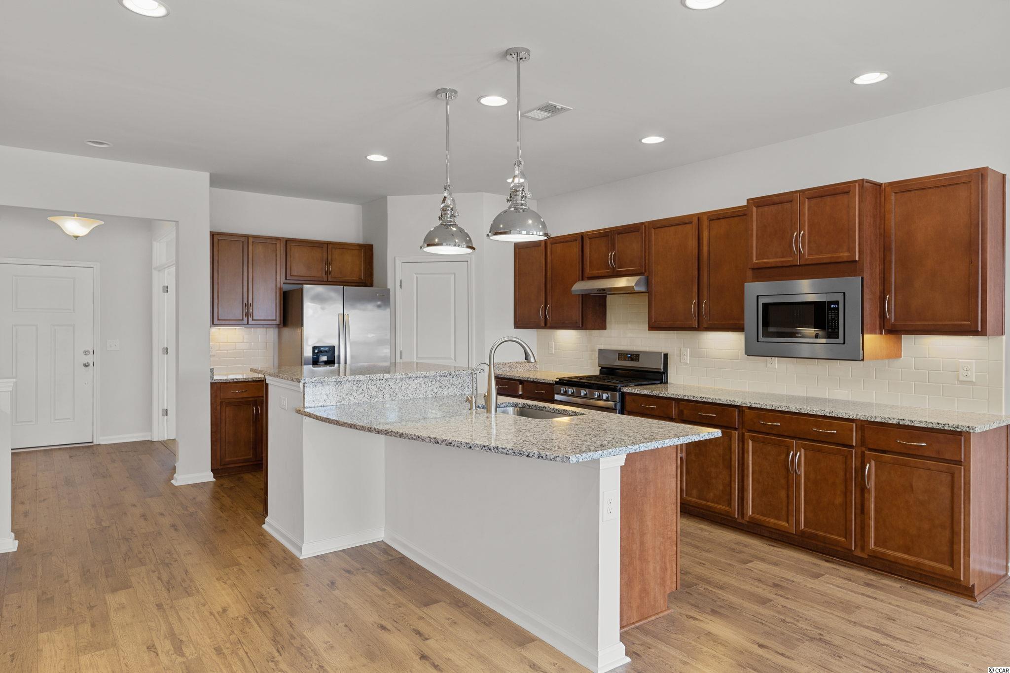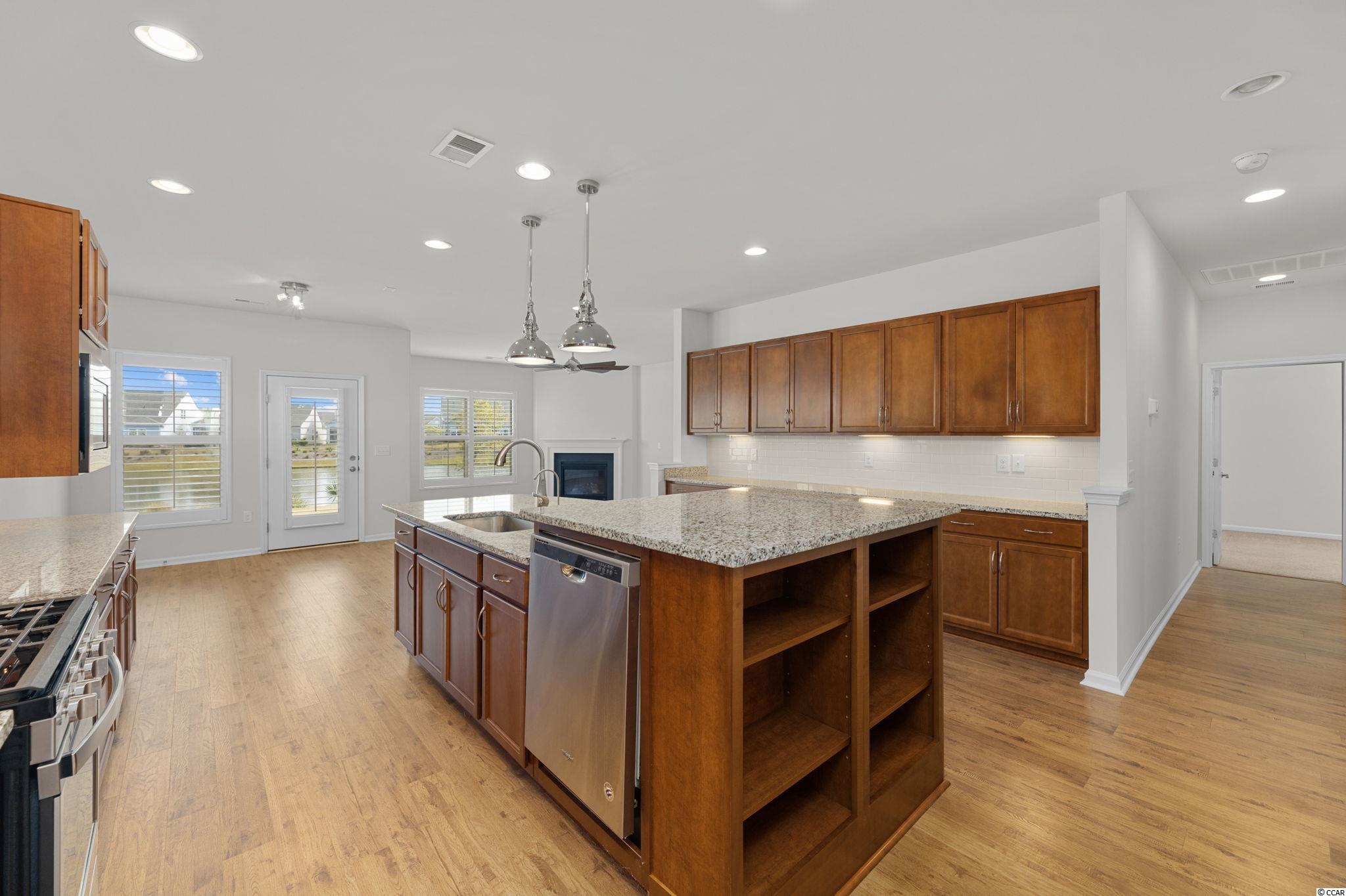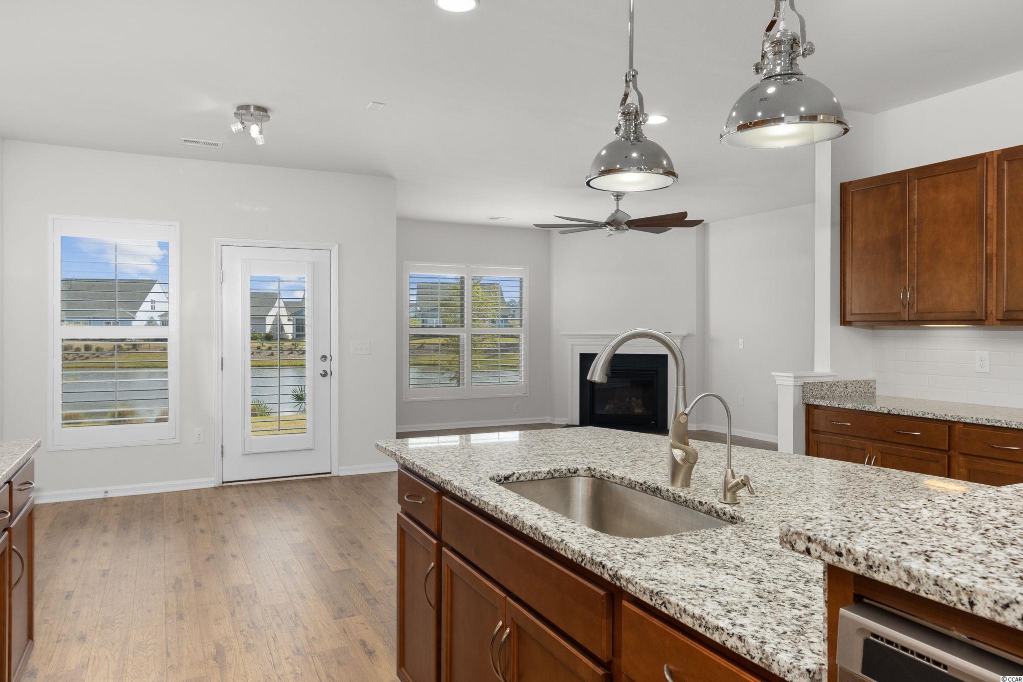 What an opportunity to own in Myrtle Beach's premier 55+ community, Del Webb. This 3br/2bath Castle Rock model sits on a peaceful pond with fantastic sunset views. The third bedroom is a flex room that can be used as an office as well as a bedroom. The upgrades from the builder in this home are amazing with a fireplace with a blower, tray ceilings, additional insulation, upgraded stainless steel appliances, raised counters and a raised dishwasher for easy on the back loading or preparing for your guests. Extra cabinetry with under cabinet lighting, granite countertops both in the kitchen and the baths, custom lighting, Subway Tile backsplash, and a gas stove!! The original owner also upgraded to wooden plantation shudders throughout the home, a reverse-osmosis water filtration system, French closet doors in the flex room add privacy and elegance to this home. The Washer and Dryer will also convey with the sale. The new owner will have access to both the amazing health and fitness center on the property as well as The Ocean Club @ Grande Dunes with an Oceanfront pool, fantastic food, and spectacular sunrises. The Del Webb clubhouse features a fitness director, amazing intracoastal pool, pickle ball courts, walking trails, workout facility, bocce court, and complete fitness center. Does this sound too good to be true, it isn't...Call for your showing today.
