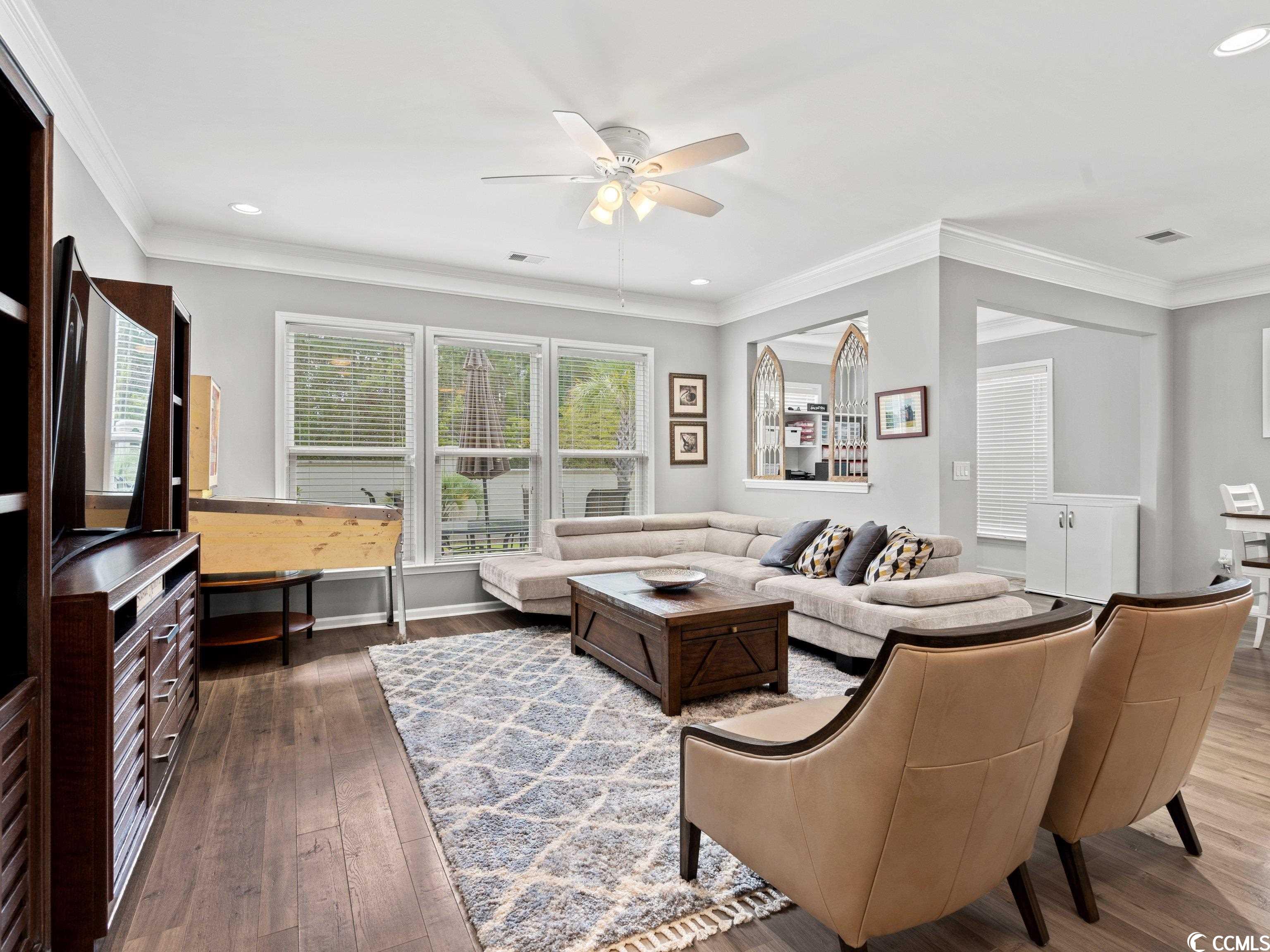 Introducing an exquisite 3-bedroom, 2-bath residence nestled within a luxurious 55+ community at Grande Dunes -Del Webb This meticulously designed home offers an array of upscale features and contemporary upgrades that are sure to captivate your senses. As you step inside, you'll be greeted by the elegance of LVP (Luxury Vinyl Plank) flooring that seamlessly flows throughout the entire living space, providing both durability and a touch of sophistication. The open floor plan allows for effortless navigation between the living room, dining area, and kitchen, creating an ideal setting for both relaxation and entertaining. The kitchen is a true culinary haven, adorned with stunning granite countertops that exude opulence. The abundance of cabinetry ensures ample storage for all your culinary endeavors. The master suite, in particular, is a sanctuary of comfort, featuring a private en-suite tile-in bath and walk-in closet for added convenience and privacy. The remaining bedrooms are generously sized and can easily be converted into a home office, hobby room, or guest accommodations to suit your lifestyle. Beyond the exquisite interior, this residence is located within a luxury 55+ community that offers an array of exclusive amenities and services tailored to enhance your everyday living. Immerse yourself in a vibrant social scene, take advantage of fitness centers and pools, or explore beautifully landscaped grounds and walking trailsall designed to cater to your wellness, leisure, and recreational needs. The active adult community offers great amenities like indoor lap swimming pool ,out door spa pool, fitness center, yoga room, outdoor resort like pool, tennis court ,pickle ball, bocce ball and an activity planning director on site to make your day fantastic .Let's not forget the accessibility to Grande Dunes Ocean Club membership coming with the small HOA fee of ownership at Del Webb !