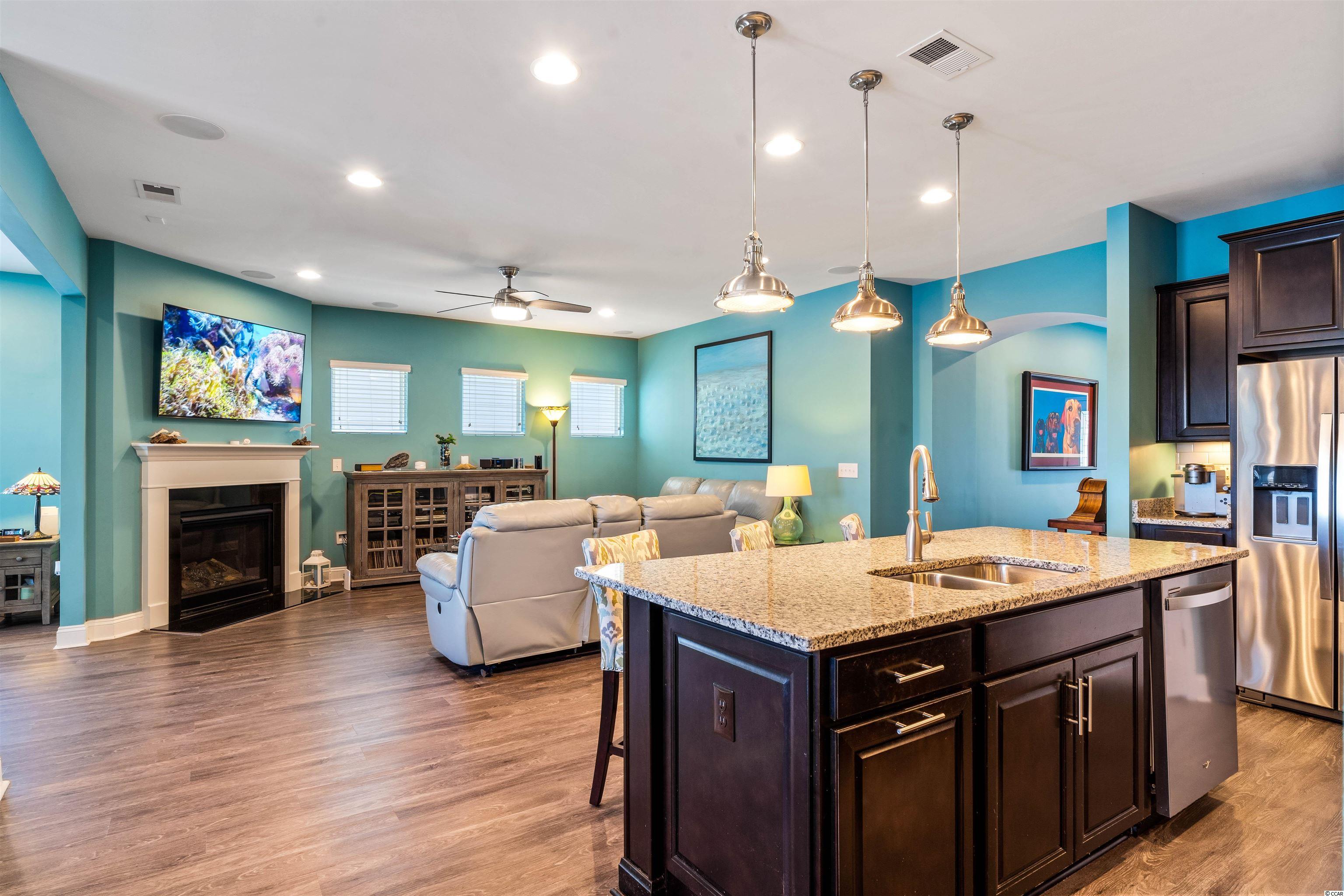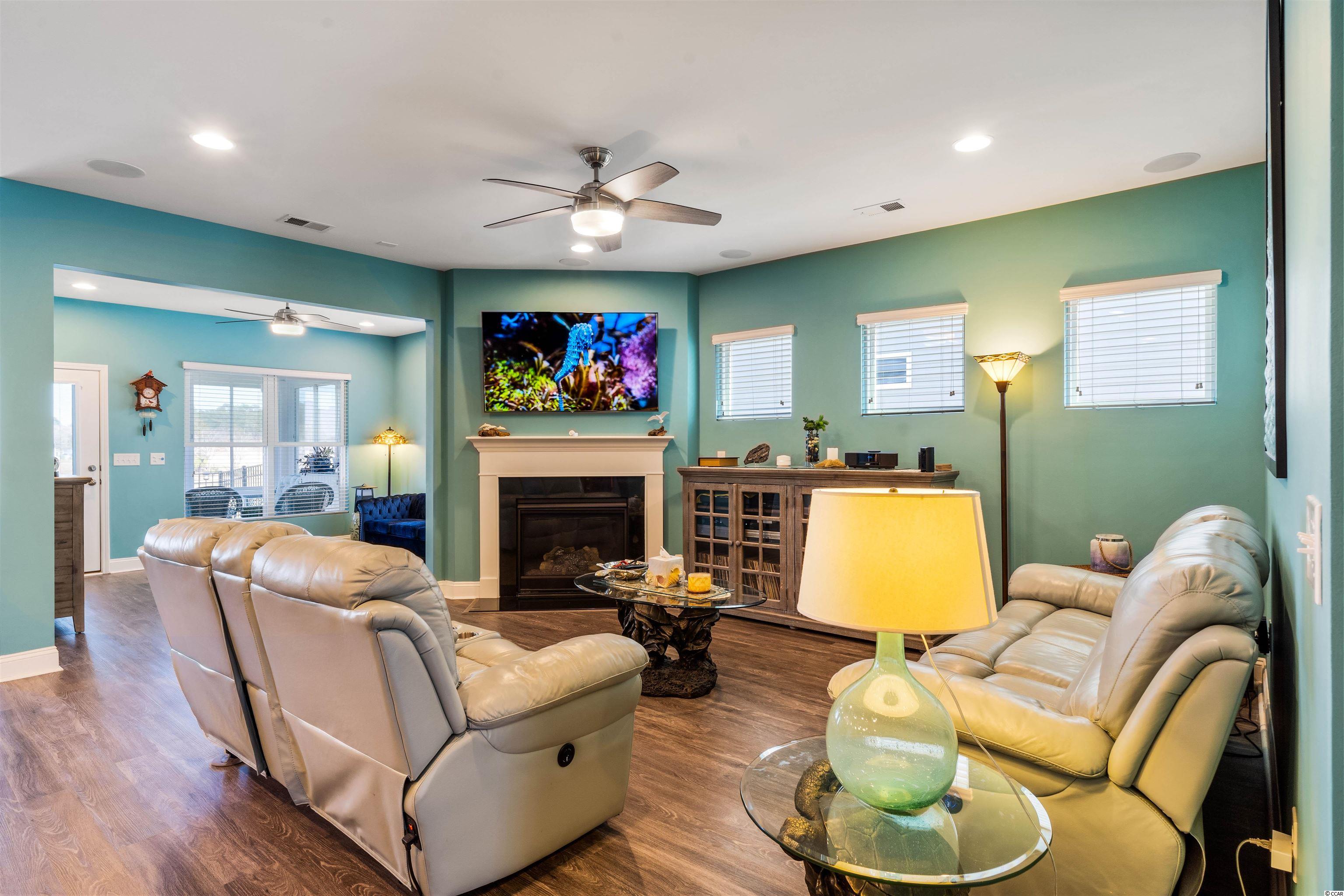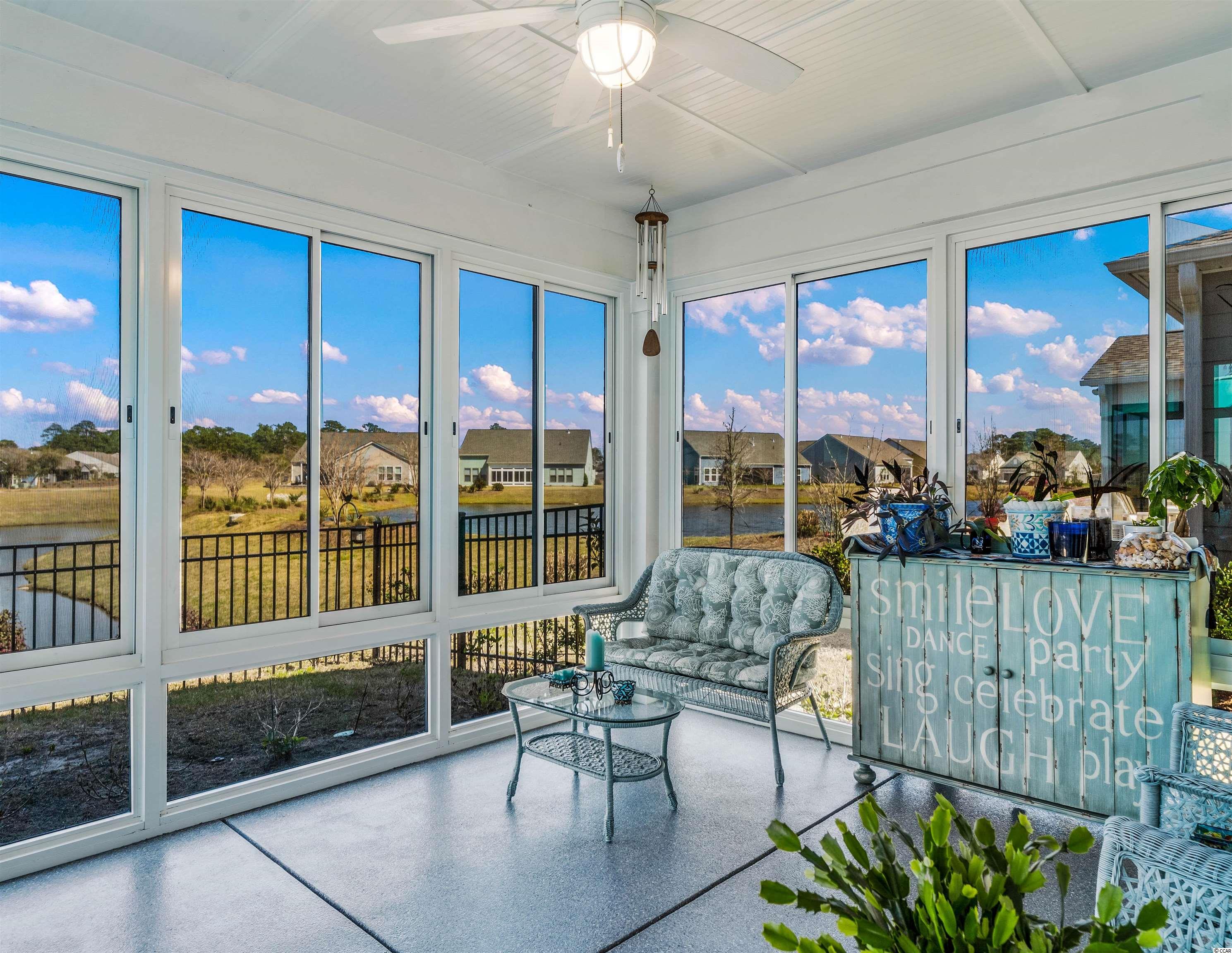 Properties like this don't become available often in this premier, 55+ community, so don't miss your opportunity to own a home in Del Webb - Grand Dunes before the summer fun even begins. This immaculately maintained and luxuriously upgraded Summerwood features space in all of the right places. Envision yourself relaxing and enjoying your favorite beverage while gazing at the outdoor ponds with fountain views that envelope this fenced lot. The outdoor living area has been enhanced to include an extended paver patio, solar lighting, and an incredible Carolina Room with easy operating, energy efficient, low maintenance screens and windows. Inside the 4-bedroom home you will find a beautiful coastal-themed color scheme that enhances and compliments the exterior panorama. Interior upgrades include a fireplace with granite surround, 4-foot garage extension, walk-up attic storage, radiant barrier sheathing, sunroom, tankless hot water heater, tray ceiling in owner's suite, luxury kitchen with additional island storage, professionally installed surround system with 5 speakers, upgraded lighting, laundry with additional cabinetry and sink, glass accented front-door and so much more. Finally, this phenomenal location (adjacent to the Intracoastal Waterway) offers quick access to shopping, dining, medical, and all of the attractions that Myrtle Beach is famous for. Del Webb offers an extensive list of amenities including access to an Ocean Front clubhouse on a private beach as well as the neighborhood indoor and outdoor pools, onsite activities director, pickle ball, tennis courts, and walking trails. Schedule your viewing today!