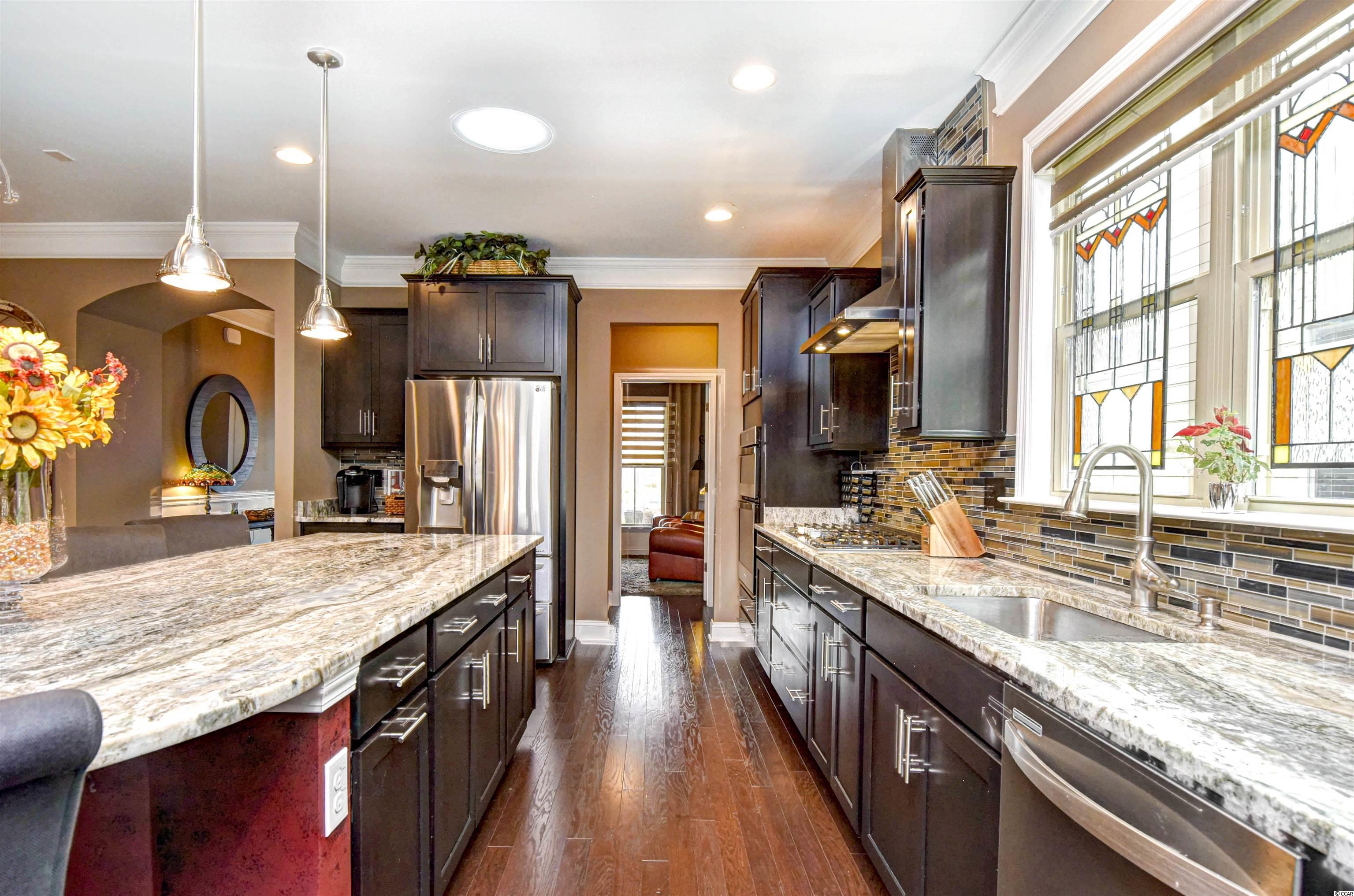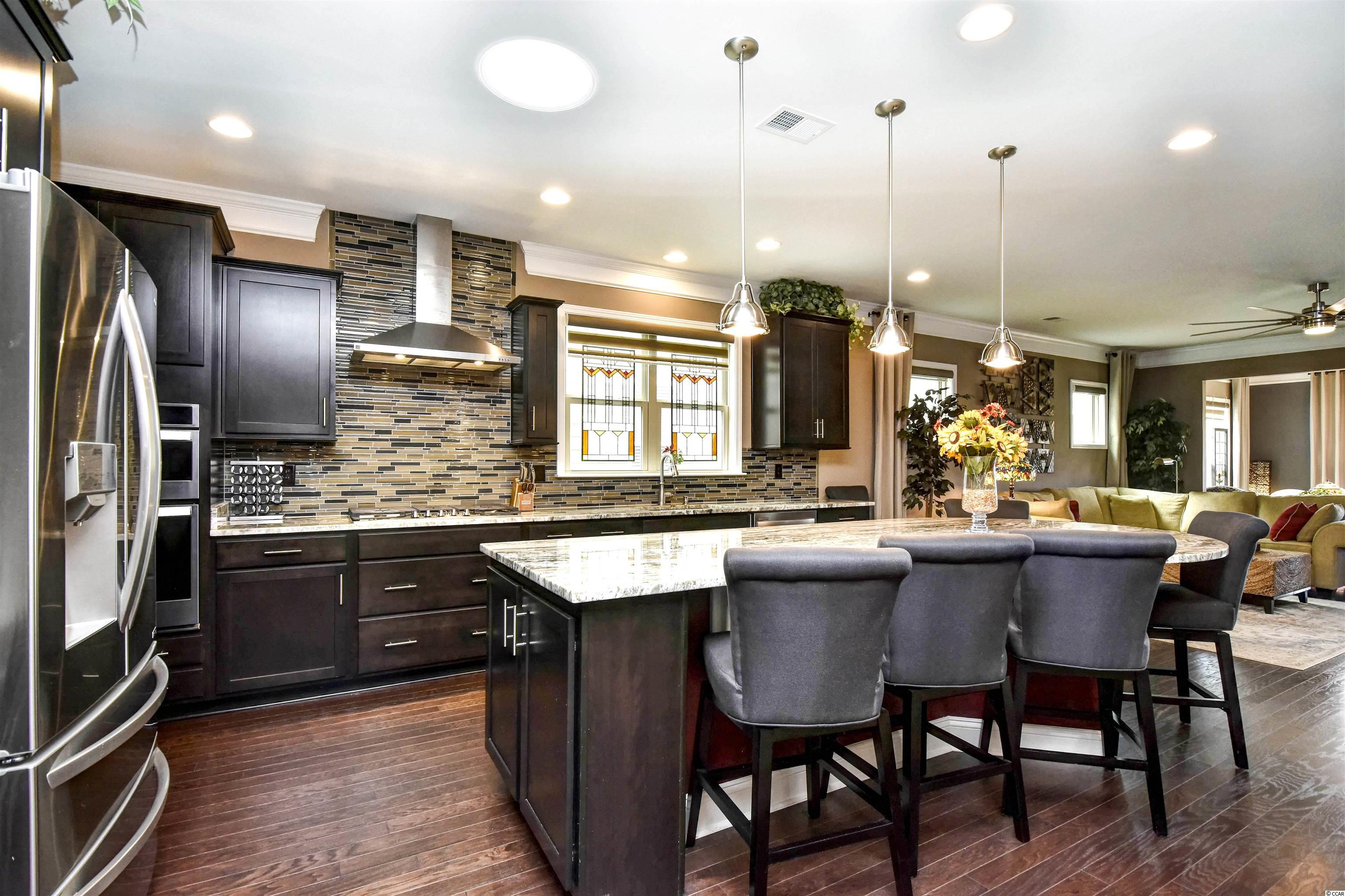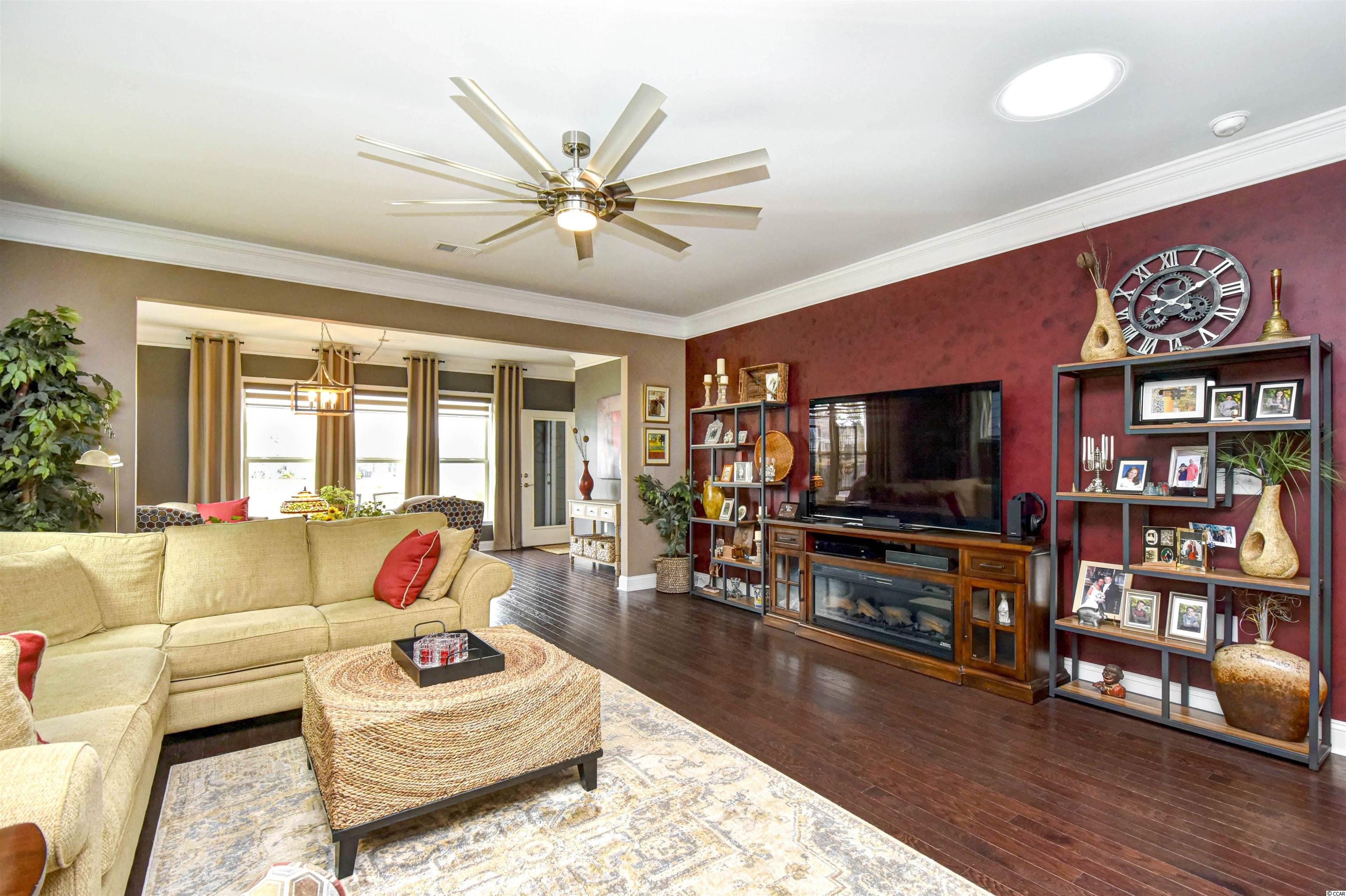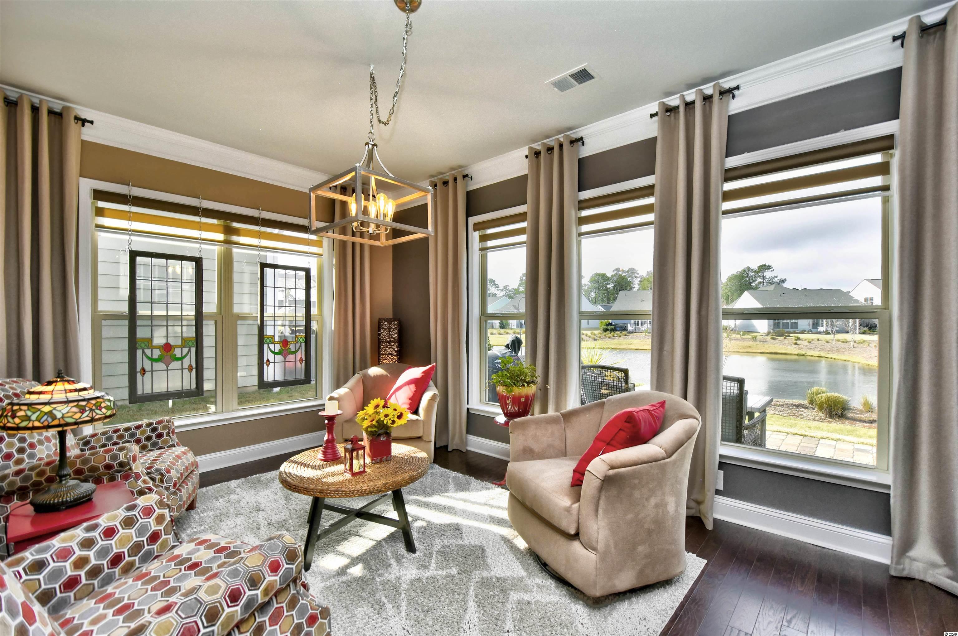Upon entering into this meticulous Martin Ray floor plan, the view is spectacular of the two ponds facing the sunroom which is a new 12x15 room with tinted windows and waterproof interlocking floor deck. There is a den to the left of the foyer with French doors that could be used as an office. This flows to the open kitchen with 3 solar lights all stainless-steel appliances, quartz counter tops accompanied with a butler's pantry. The living room is also open to a sunroom surrounded by windows. Ceiling fans in both bedrooms and living room, den, and the all-season's room. Large master bedroom with windows overlooking the ponds, double sink vanity, large master shower, tray ceiling a huge walk-in closet. Wood flooring throughout the living area, tile in the bathrooms. Outside of the all-season's room is another area for grilling with all new pavers and a new retention wall. This a fabulous home for entertaining and enjoying all that Del Webb has to offer the large amenity center with indoor and outdoor pool, yoga, a gym, pickle ball courts, tennis courts, walking trails, bicycle paths, and so many more activities to mention. Incredible Ocean Front Clubhouse with many pools and your own private Beach. This is a must to see - it will go quickly!!!!!