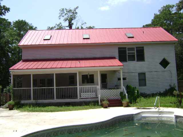 Nice large home with a metal roof. High ceilings make this home open, airy & bright. THe screened in porch overlooks a pond and the home boasts a spacious backyard. Home needs new owners and attention. Very private wooded lot.