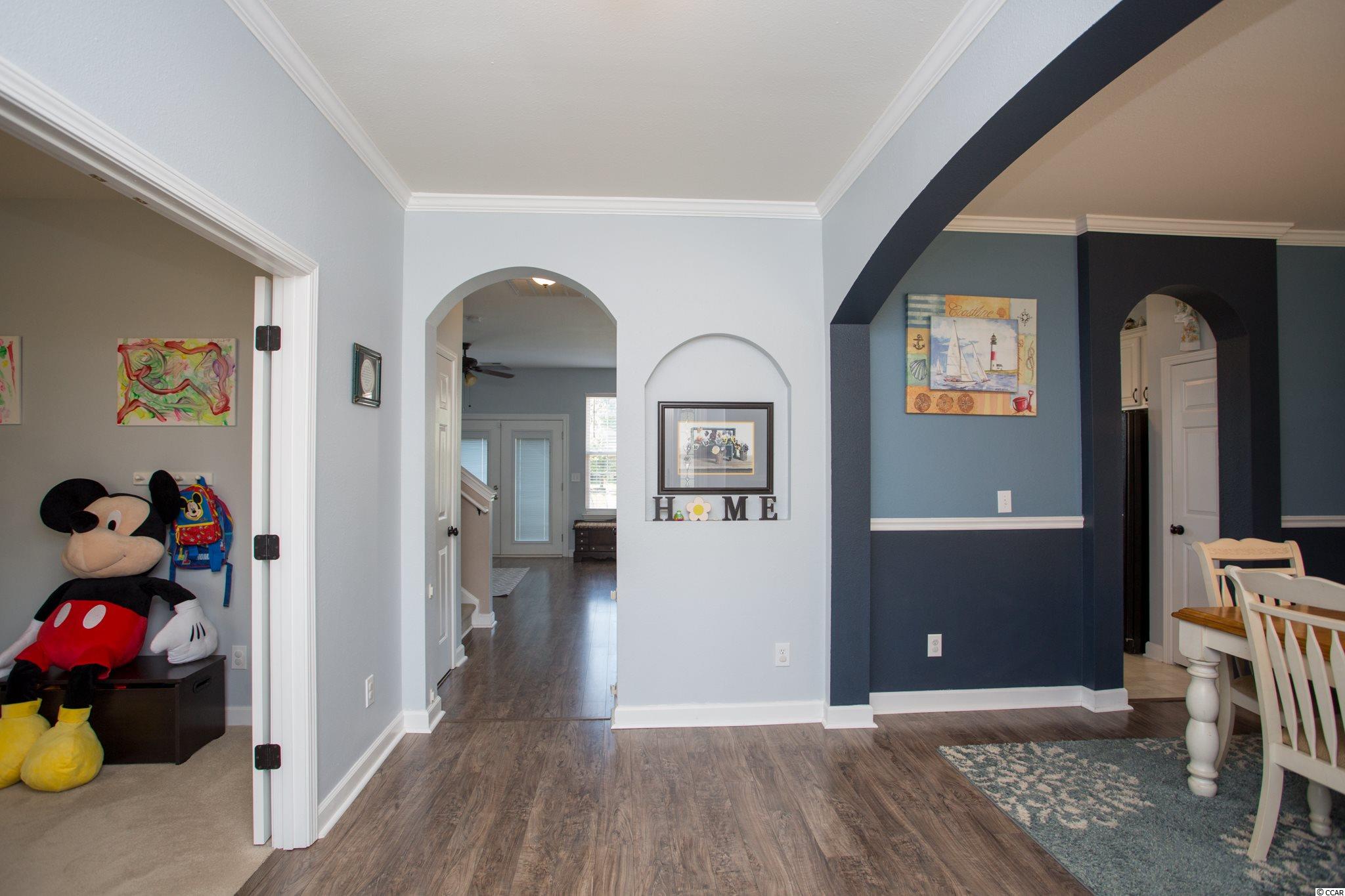 Welcome to 640 Brynfield Drive, a 4 bedroom, 2.5 bathroom home located in the Brynfield Park neighborhood. This home has a wonderful layout including an office/den, two-story living room, dining room, eat-in kitchen, kitchen and half bathroom downstairs while all bedrooms and the laundry room are upstairs. You will also notice architectural details including a decorative nook in the foyer and arched doorways. The Sellers updated the entrance with a front door featuring a transom window and two sidelights. Flooring in the dining room, living room and eat-in kitchen area has been updated to Pergo plank laminate flooring. Other downstairs updates include the vanity in the half bathroom and the French back door with blinds in the glass (2014). All toilets have been updated to high rise toilets. The HVAC (2015) and water heater (2019) are newer. The master bedroom is spacious and has room for a king-sized beach. The master bathroom includes a garden tub, walk-in shower, double vanity and large closet. The backyard of the home is a wonderful place to relax or entertainment. The backyard is completed with a paver patio, fire pit overlooking the neighborhood pond and paver walkway leading to the personal garage door. The patio has plenty of room for a grill, porch swing, table and more. Brynfield Park has low HOA fees and amenities including sidewalks, trash pickup, ponds throughout the neighborhood and a neighborhood park complete with a playground, gazebo, outdoor pool and hot tub. Brynfield Park is located between Hwy. 544 and Hwy. 707 and close to Hwy. 31 making it easy to get to all cities along the Grand Strand. Come take a look at 640 Brynfield Drive today or call your agent to schedule an appointment.