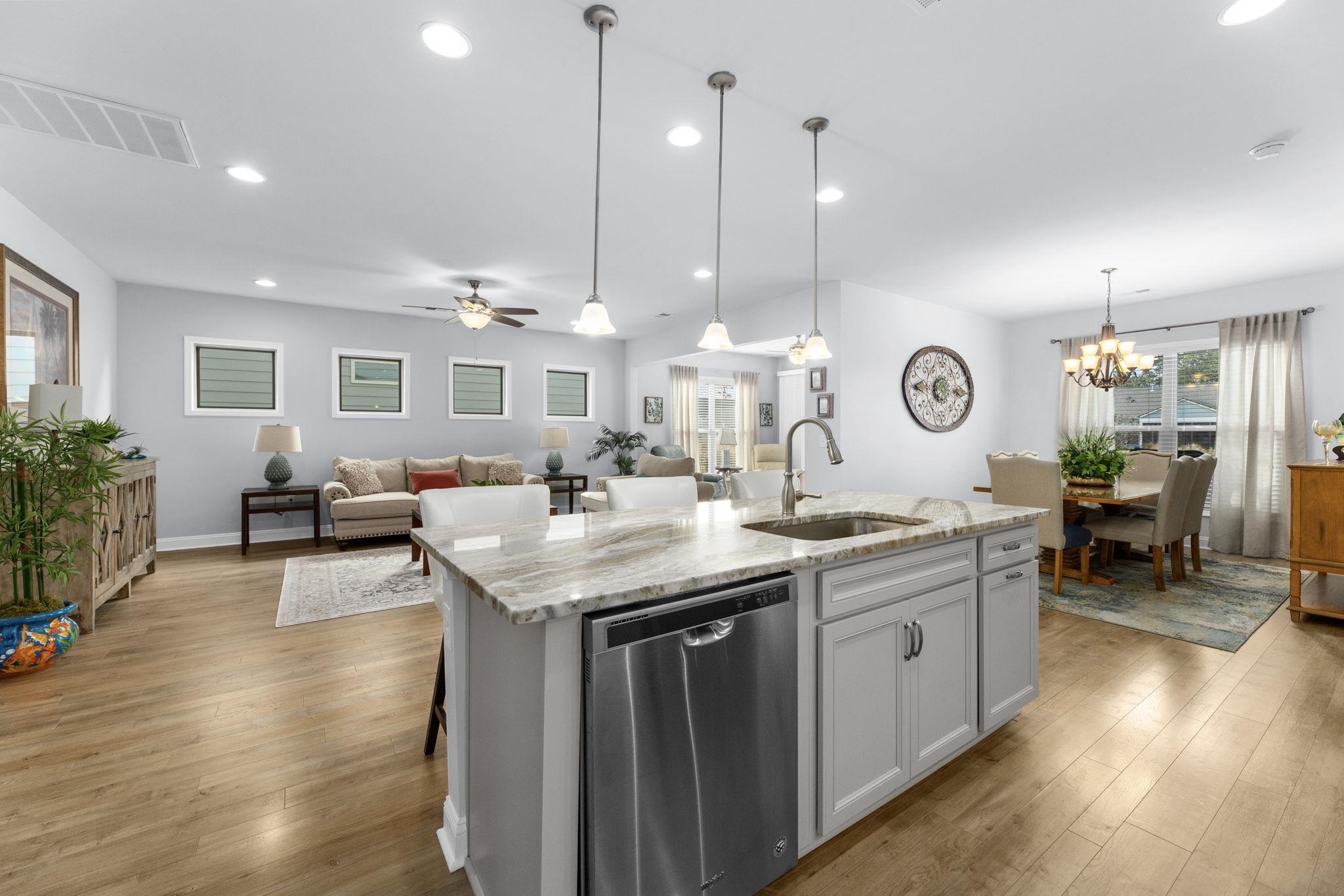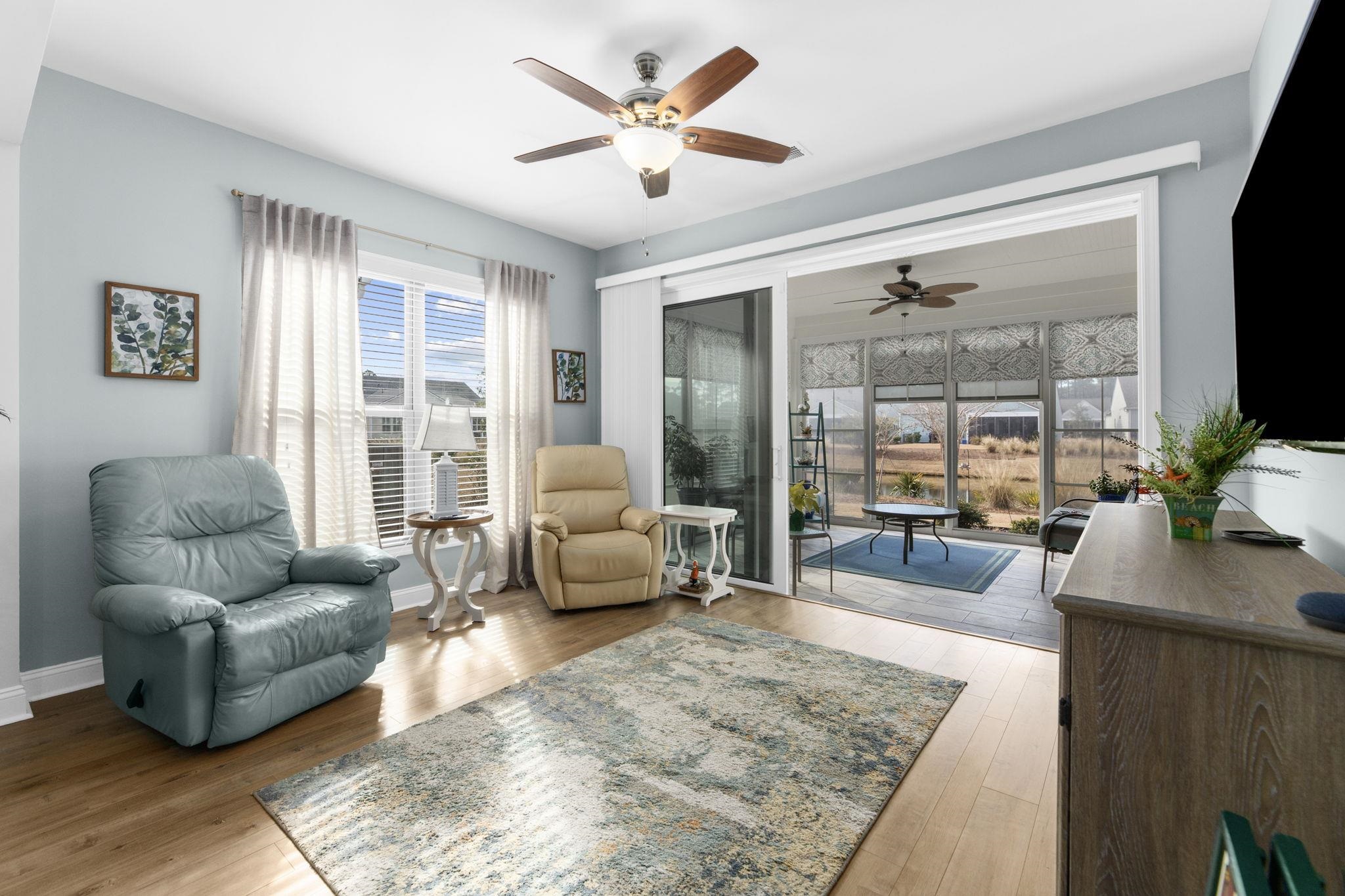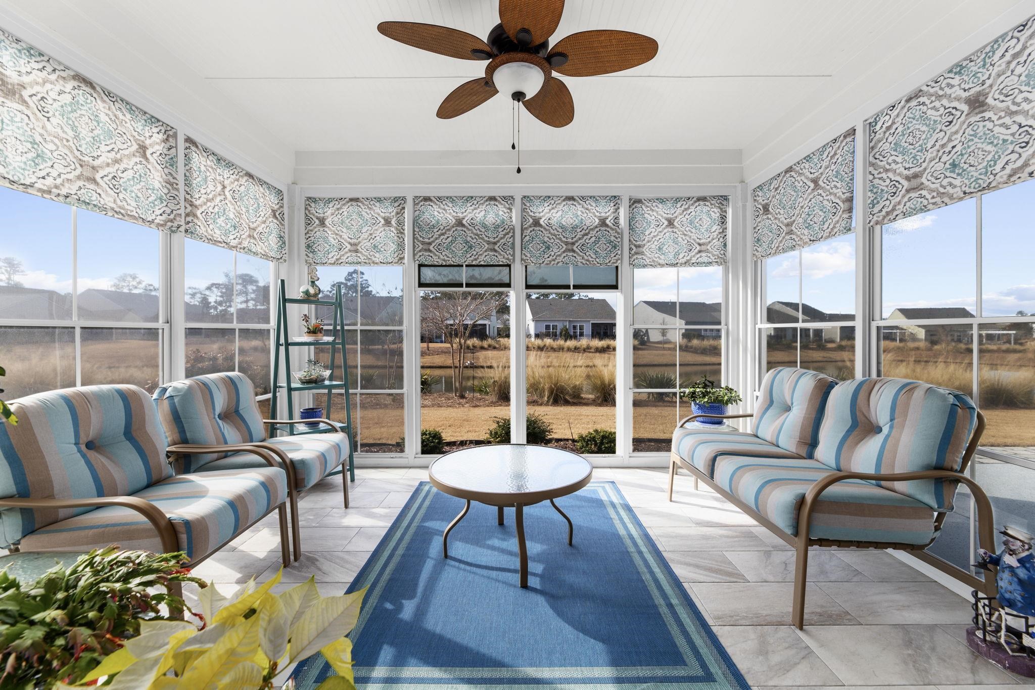 Welcome to this immaculate, turnkey home in the premier 55+ Intracoastal community, Del Webb at Grande Dunes Myrtle Beach! The moment you walk through the door you will appreciate all of the upgrades from the freshly painted interior, upgraded flooring, quartz countertops in both bathrooms, tiled showers, extended two car garage with golf cart storage, beautiful sunroom with large sliders leading to an Eze-breeze lanai with windows from floor to ceiling perfect for enjoying your morning coffee overlooking the water. The kitchen is a cook's delight with gas range, stainless steel appliances, granite backsplash, plenty of cabinets for storage and a large island. Del Webb Grande Dunes is the coastal lifestyle you have been looking for including lawn care and a Lifestyle Director for social events. Amenities include an indoor lap pool, resort style outdoor pool, fitness center, tennis, pickleball and bocce ball courts, day docks, fire pits and the Ocean Club with private beach access, dining, entertainment and two golf courses.