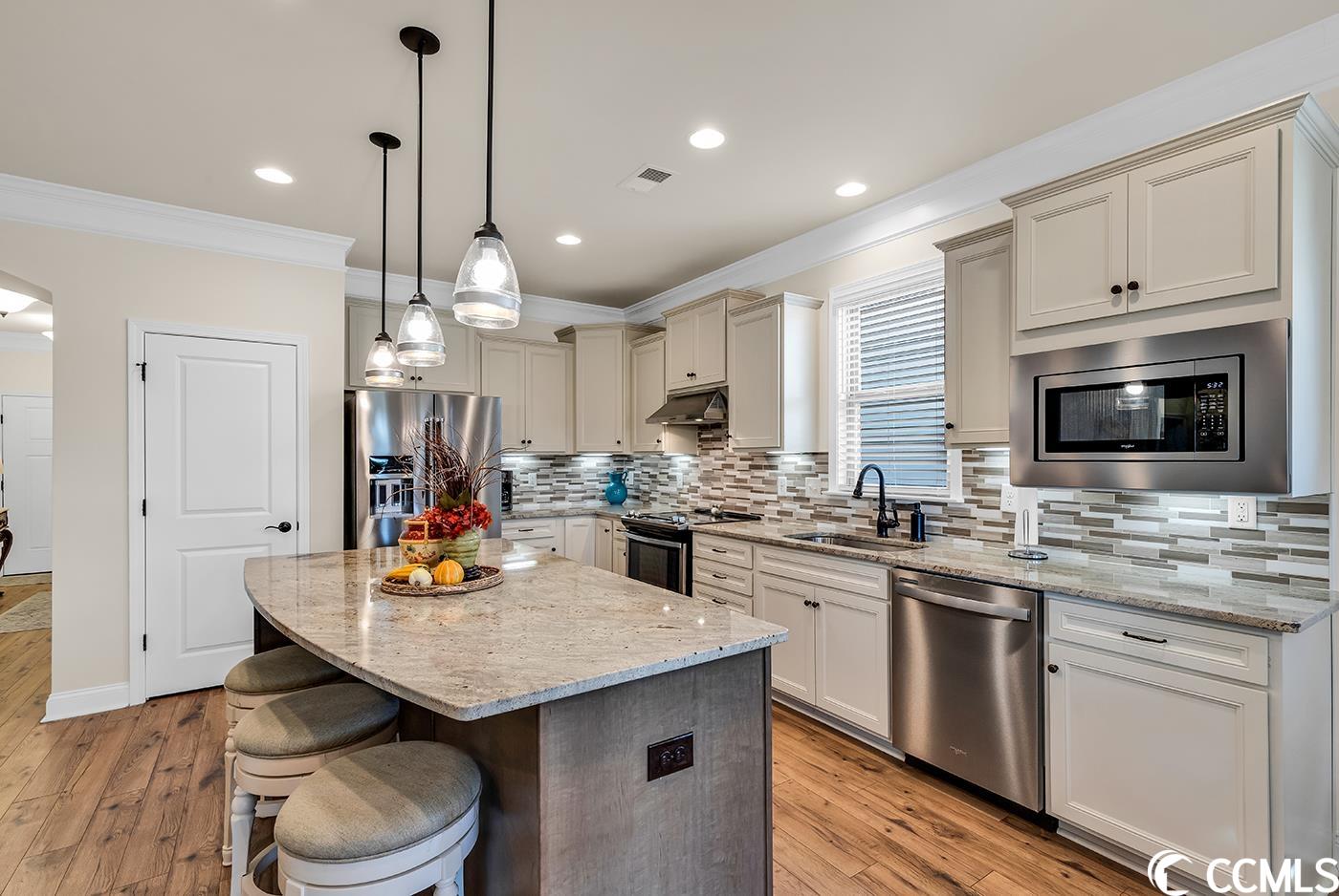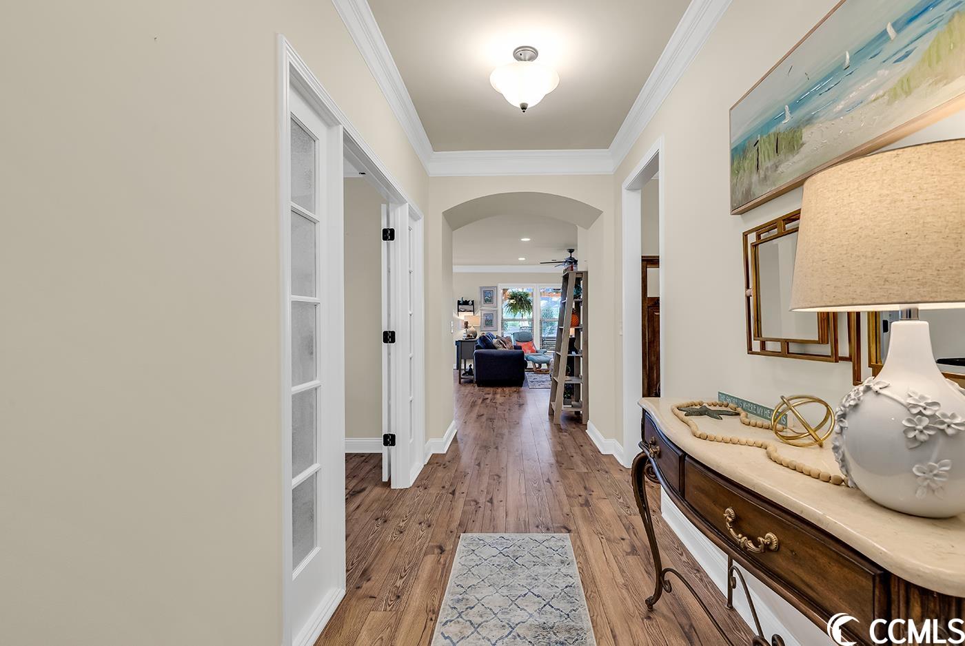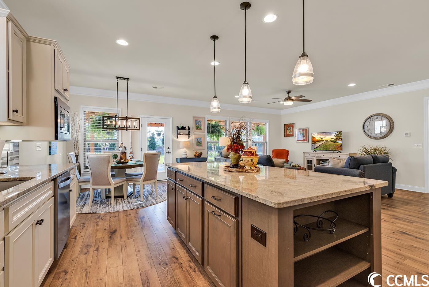 This Abbeyville home is beautifully decorated & located on a premium lot in the prestigious 55+ active community of Del Webb in The Grande Dunes. The outdoor setup of this home is one of a kind with professional landscaping, lighting, and has a large pergola. The open floorplan offers many upgrades including a gourmet kitchen, double crown molding, luxury primary closet, primary shower upgrades, and a heated garage. The neighborhood features world class amenities. The on-site amenities are managed by a full-time lifestyle director. They include an indoor pool, outdoor pool, fitness center, pickleball, bocce ball, and tennis. The Ocean Club access for Grande Dunes residents provides a resort style pool, dining, and beach access. List agent is available for tours of all amenities. Sold fully furnished.