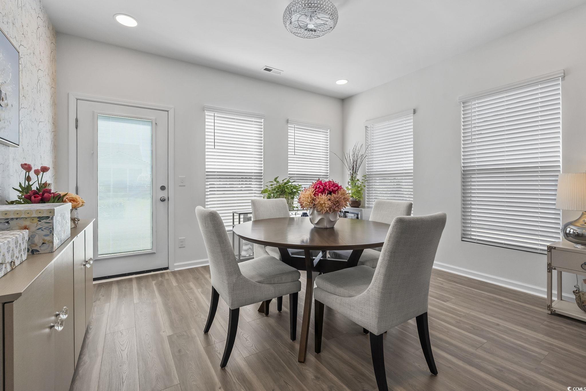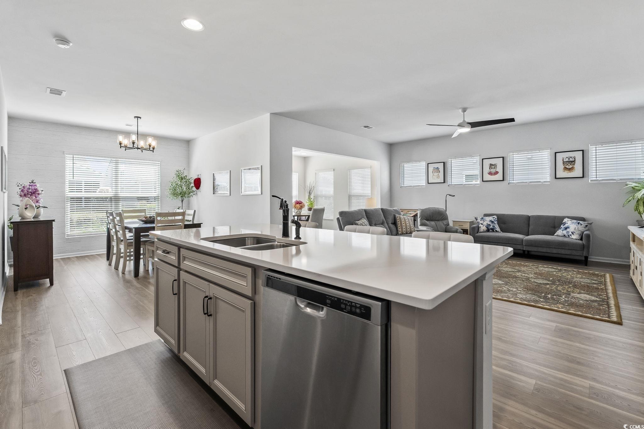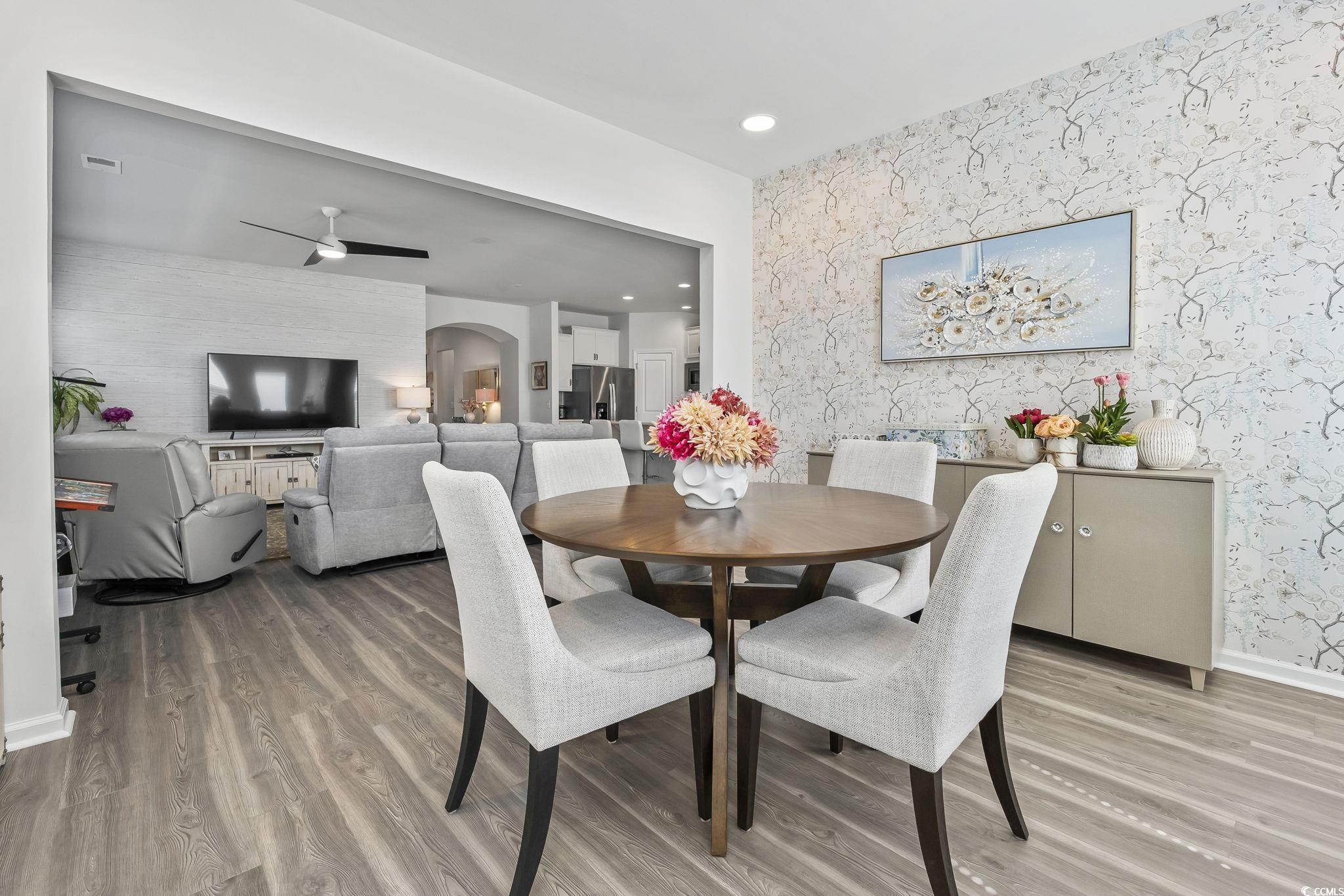This stunning four-bedroom home is located in Del Webb's premier 55+ community. You will enjoy the low maintenance lifestyle with HOA covered lawncare and resort style amenities. The layout offers easy one-level living with an open-concept design perfect for entertaining. The chefs kitchen features a gas range, quartz countertops, and solid shelving in the pantry for a custom, upgraded touch. The Carolina Room is a thoughtfully added feature, comfortably expanding your living space. The spacious primary suite includes a custom closet design for maximum organization, while LVP flooring is featured throughout the home, creating a low-maintenance living space. Spend your days lounging by the resort-style pool overlooking the Intracoastal Waterway or enjoy the indoor pool and fitness center. The community offers pickle ball, bocce ball, a snack bar, dog park, outdoor kitchen and fire pit, along with a full calendar of activities including water aerobics, dance and fitness classes, card games, and more. There is even a deep-water marina with a day dock for easy access to the water. As a resident, youll also enjoy membership to the Grande Dunes Ocean Club, an oceanfront resort with private beach access and chair service, a stunning pool with chairside food and beverage service, kiddie pool, jacuzzi, and a vibrant social scene with live music and happy hours. This is more than a home its a lifestyle designed for connection, relaxation, and enjoyment.