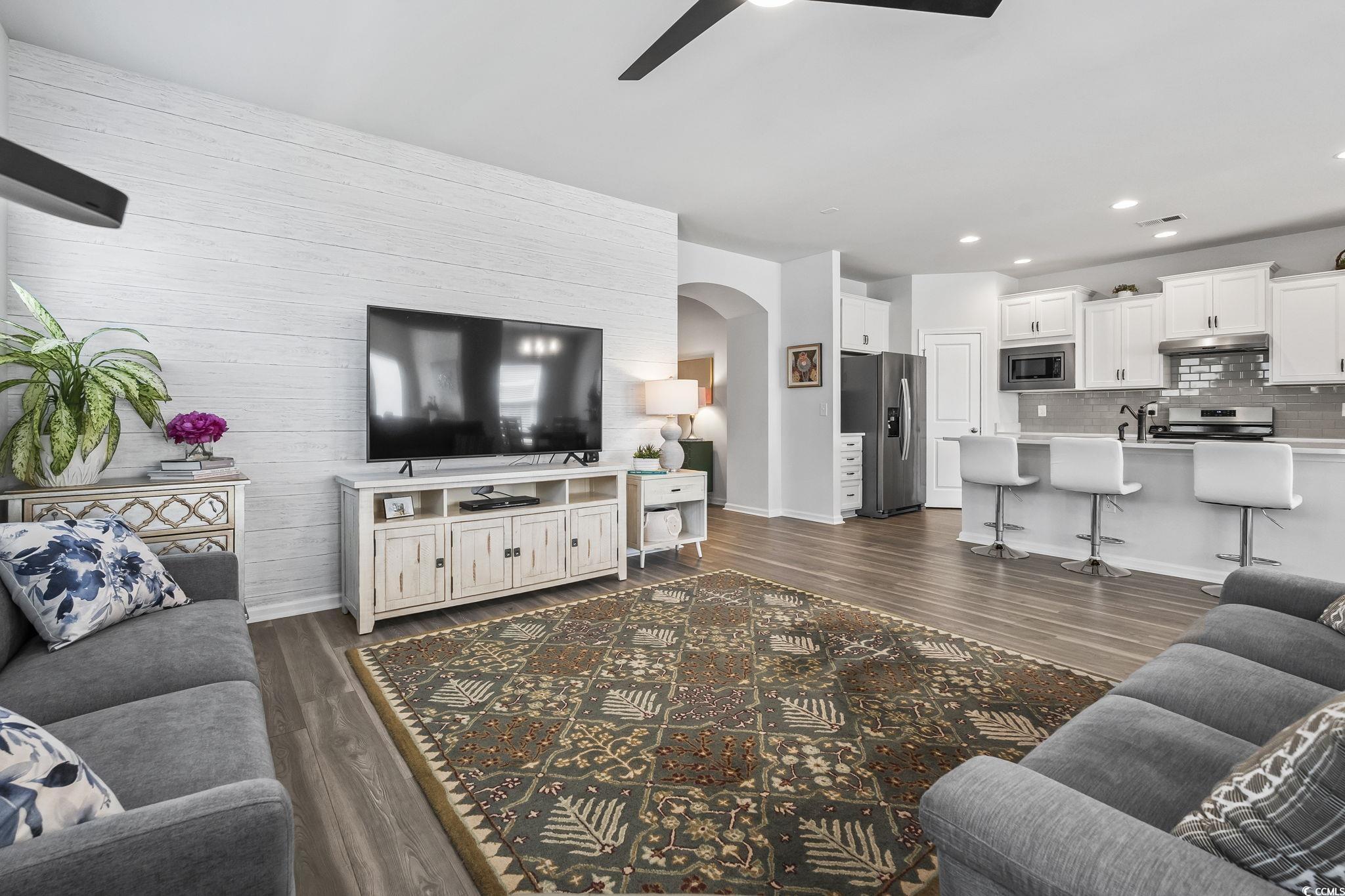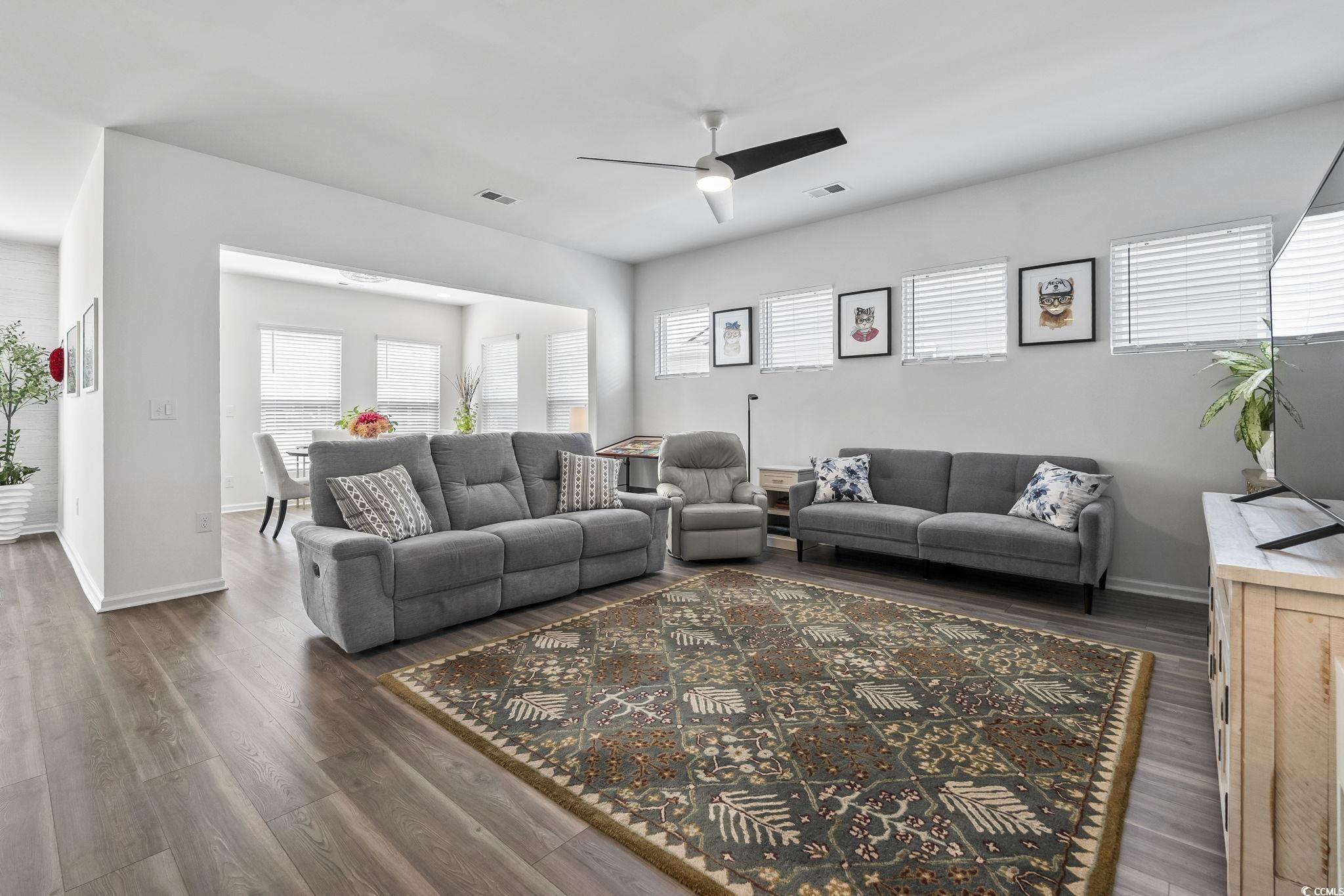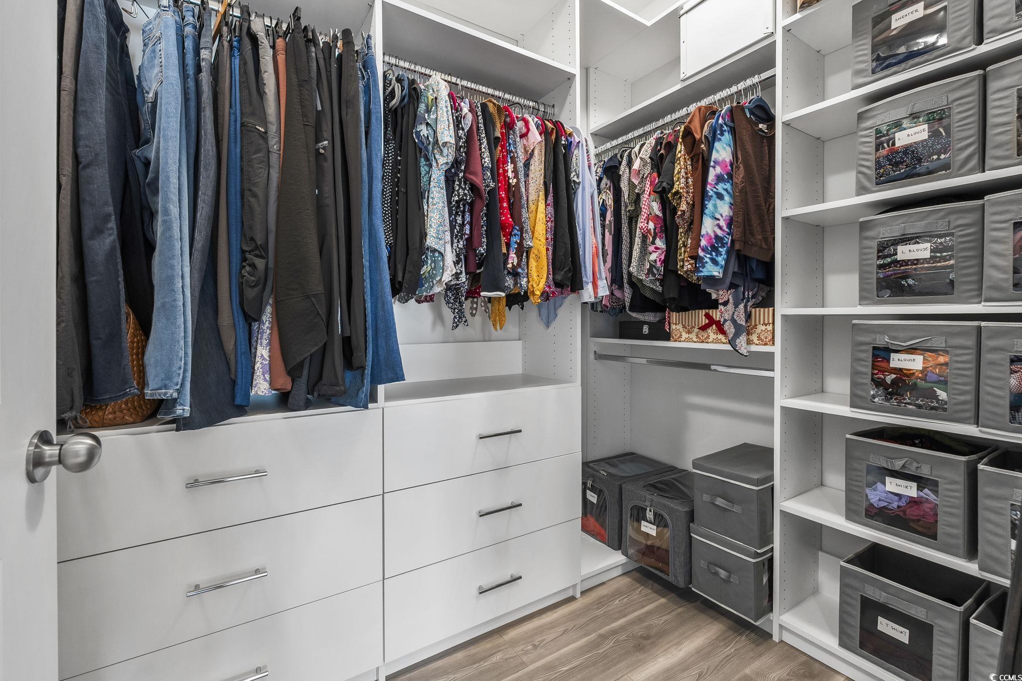 This stunning four-bedroom home is located in Del Webb's premier 55+ community. You will enjoy the low maintenance lifestyle with HOA covered lawncare and resort style amenities. The layout offers easy one-level living with an open-concept design perfect for entertaining. The chefs kitchen features a gas range, quartz countertops, and solid shelving in the pantry for a custom, upgraded touch. The Carolina Room is a thoughtfully added feature, comfortably expanding your living space. The spacious primary suite includes a custom closet design for maximum organization, while LVP flooring is featured throughout the home, creating a low-maintenance living space. Spend your days lounging by the resort-style pool overlooking the Intracoastal Waterway or enjoy the indoor pool and fitness center. The community offers pickle ball, bocce ball, a snack bar, dog park, outdoor kitchen and fire pit, along with a full calendar of activities including water aerobics, dance and fitness classes, card games, and more. There is even a deep-water marina with a day dock for easy access to the water. As a resident, youll also enjoy membership to the Grande Dunes Ocean Club, an oceanfront resort with private beach access and chair service, a stunning pool with chairside food and beverage service, kiddie pool, jacuzzi, and a vibrant social scene with live music and happy hours. This is more than a home its a lifestyle designed for connection, relaxation, and enjoyment.