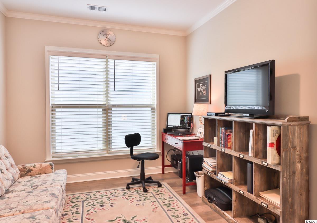 Don't miss out on this incredible opportunity! This stunning 2 bedroom, 2 full bathroom home is located in the prestigious Intracoastal Waterway Community Grande Dunes - Del Webb and features a bright and spacious floor plan! The open living room features lots of natural light and beautiful crown molding throughout! The gourmet kitchen features lovely wood cabinetry, custom tile backsplash, granite countertops, an island counter with a breakfast bar, stainless steel appliances, and a pantry plus a spacious dining area! The elegant master suite boasts a large walk-in closet and an impressive master bathroom! This amazing home also features a gorgeous Carolina room and an office/bonus room! You will enjoy the spectacular weather and relaxing patio perfect for grilling out and entertaining complete with a sun setter awning! Being in the wonderful Del Webb neighborhood, you have access to The Ocean Club, a spectacular club house with a full kitchen, a community resort-style pool and lounge area, tennis courts, a fitness center, beach access, and a private boat dock on the Intracoastal Waterway perfect for any and all water activities! You also have access to Grande Dunes Ocean Club. Book your showing today!