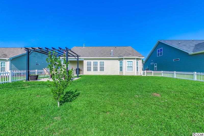 A charming home in Summerlyn, a natural gas commuity in the heart of Carolina Forest! Located on a large .23 acre lot with an abundance of front and back yard space, this home offers beautifully spacious common areas and ample natural light. Enter the home through the foyer, opening up into the sizable living area with a gas fireplace, vaulted ceilings, and sliding glass doors leading to your covered patio. From the patio, pavers lead to an additional patio with a pergola in the large fenced-in back yard. The kitchen features ample cabinetry and granite counter space, a breakfast bar, pantry, and direct, convenient access to the laundry room. Dual dining areas are sure to impress. The accommodating master bedroom showcases a tray ceiling, walk-in closet, gorgeous views of your back yard from the bay window, and a private ensuite master bath. The other bedrooms share comfortable access to this home's second full bathroom.The Summerlyn community is located near the back of Carolina Forest, affording its residents easy access to Robert Grissom Parkway, Highway 17 Bypass, and Highway 31 by way of International Drive. Residents of Summerlyn enjoy the community pool and their proximity to area restaurants, shopping, entertainment, award-winning schools, the ocean, and everything else Myrtle Beach has to offer. Square footage is approximate and not guaranteed. Buyer is responsible for verification.