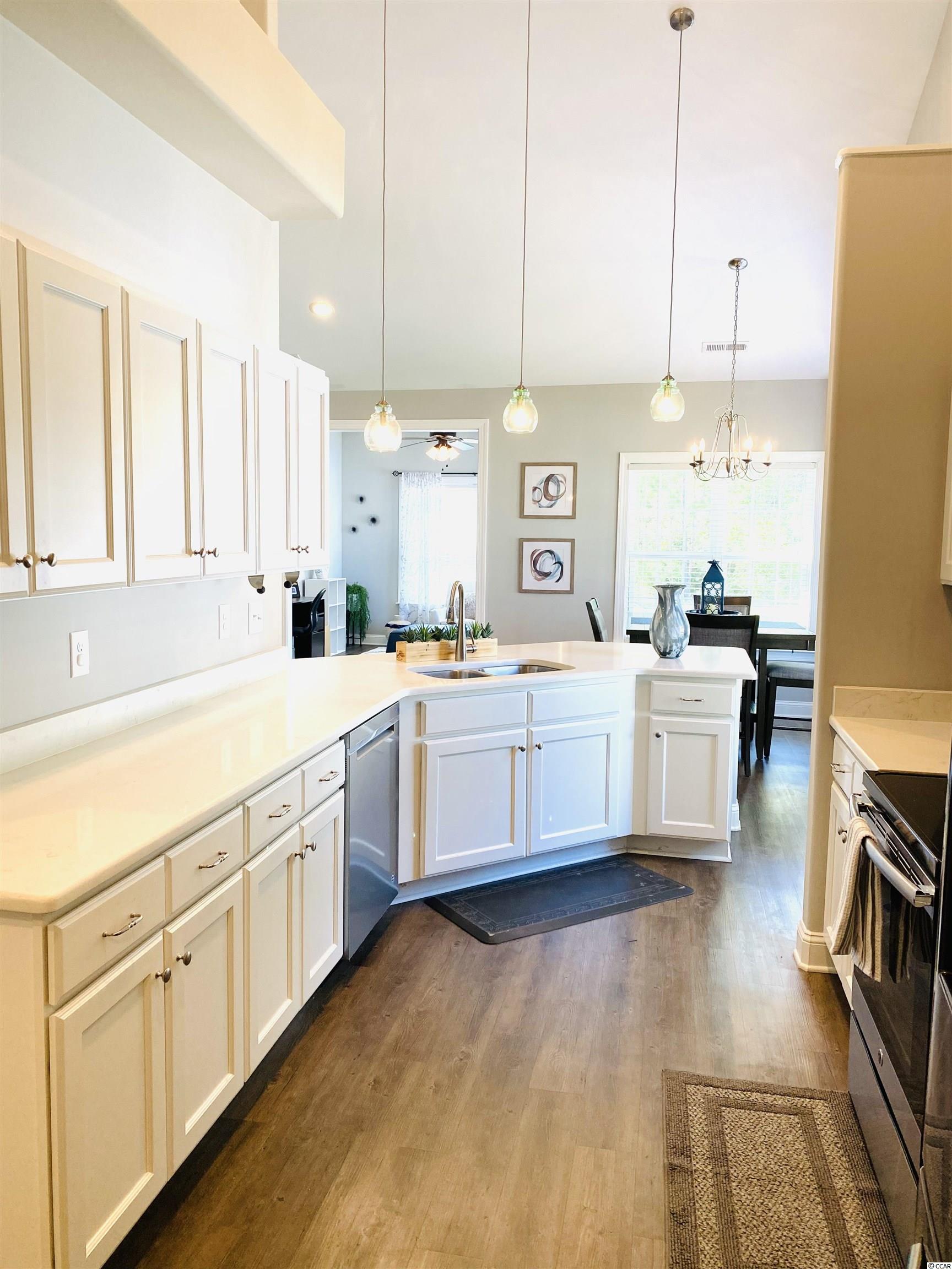Nearly new and very cute home built in 2018 in the Parsons Garden area of Georgetown, South Carolina. This is a great open floor plan - perfect for guests and entertaining! Luxury vinyl floors throughout the entire home - no carpet for the win! Vaulted ceilings grace the entire living, dining and kitchen areas with plenty of windows and natural light making it super inviting. The large kitchen has white cabinets and white granite countertops - very modern clean lines, finished with a breakfast bar and a nook with bay window, pendant lighting, large pantry, and stainless appliances. The space is finished with a cozy Carolina Room as well. With a split bedroom design, the owner's suite is in the back of the house with a sizeable walk in closet, tray ceilings, and bathroom with linen closet, double sink vanity and walk in shower. The other two bedrooms each have ample closets of their own and share a bathroom. Outdoors is the covered front porch, back patio, two car garage and a nice big back yard backing up to a wooded area. Located just a short distance away is historic downtown Georgetown waterfront and Harbor Walk, shopping, wonderful restaurants, and fresh seafood markets (literally ""just off the boat""!). There are also several public boat landings close by for quick salt or fresh water fishing and access to five rivers that surround the area. Easy drive to Pawleys Island, the closest public beach access. Approximately 45 minutes south to Mount Pleasant or north towards Myrtle Beach. Welcome to the Low Country of South Carolina! *Buyer responsible for verifying square footage of home and lot.