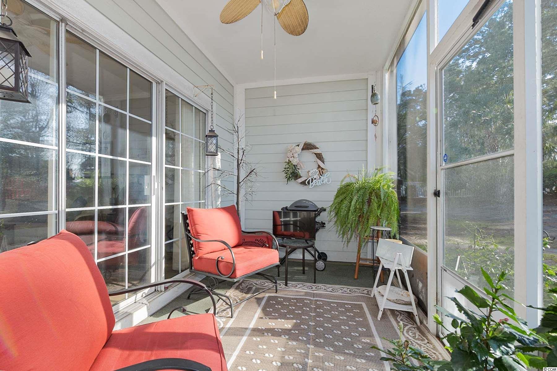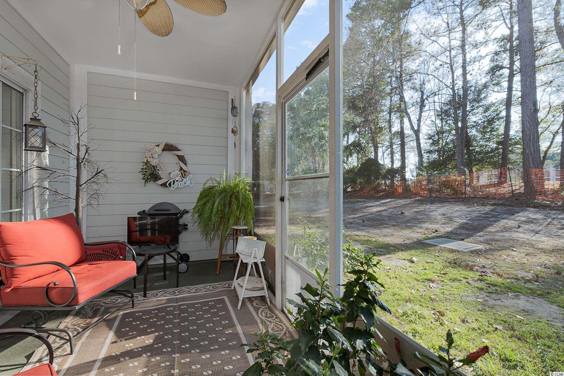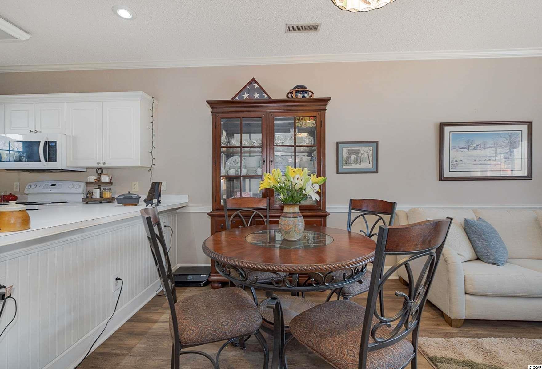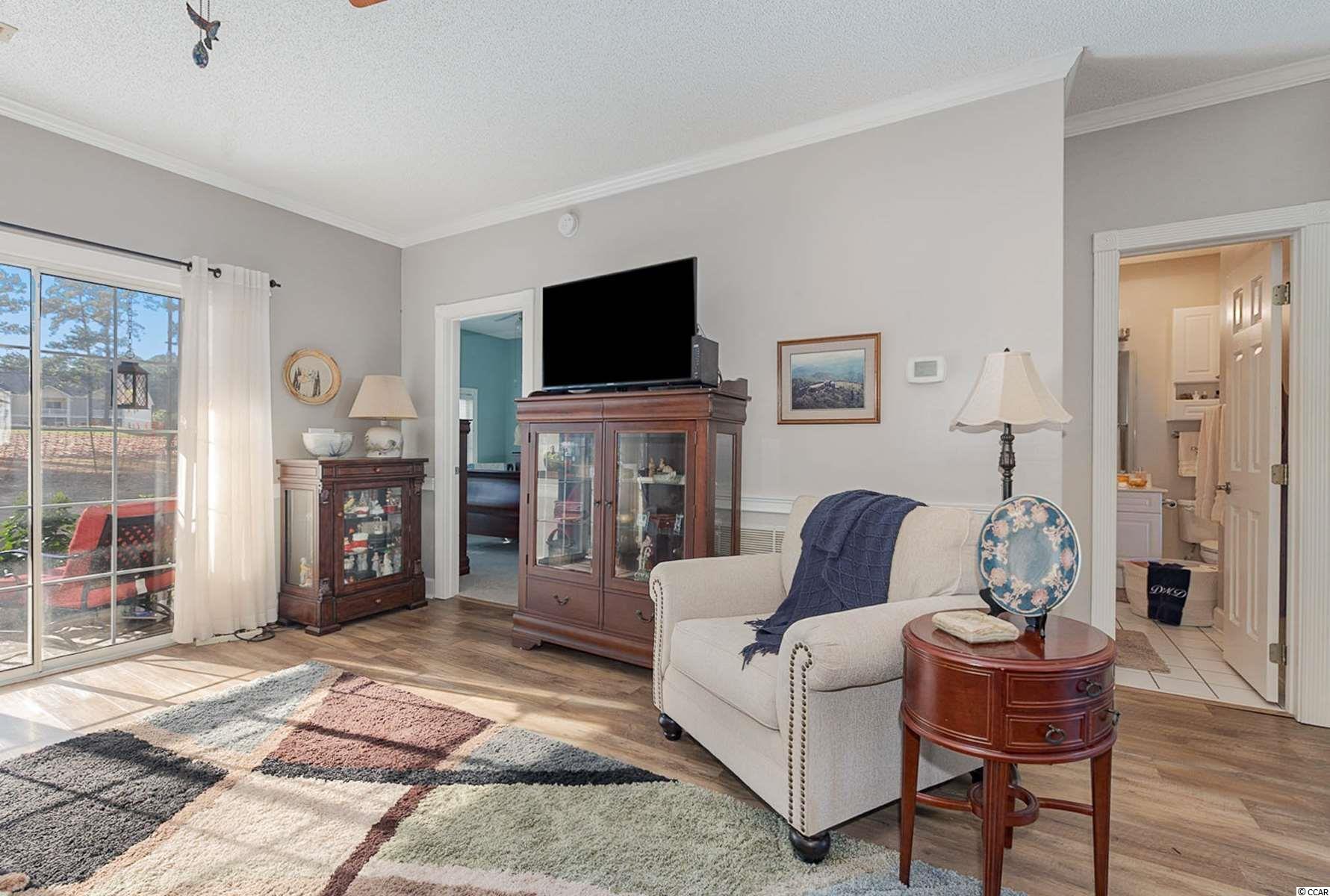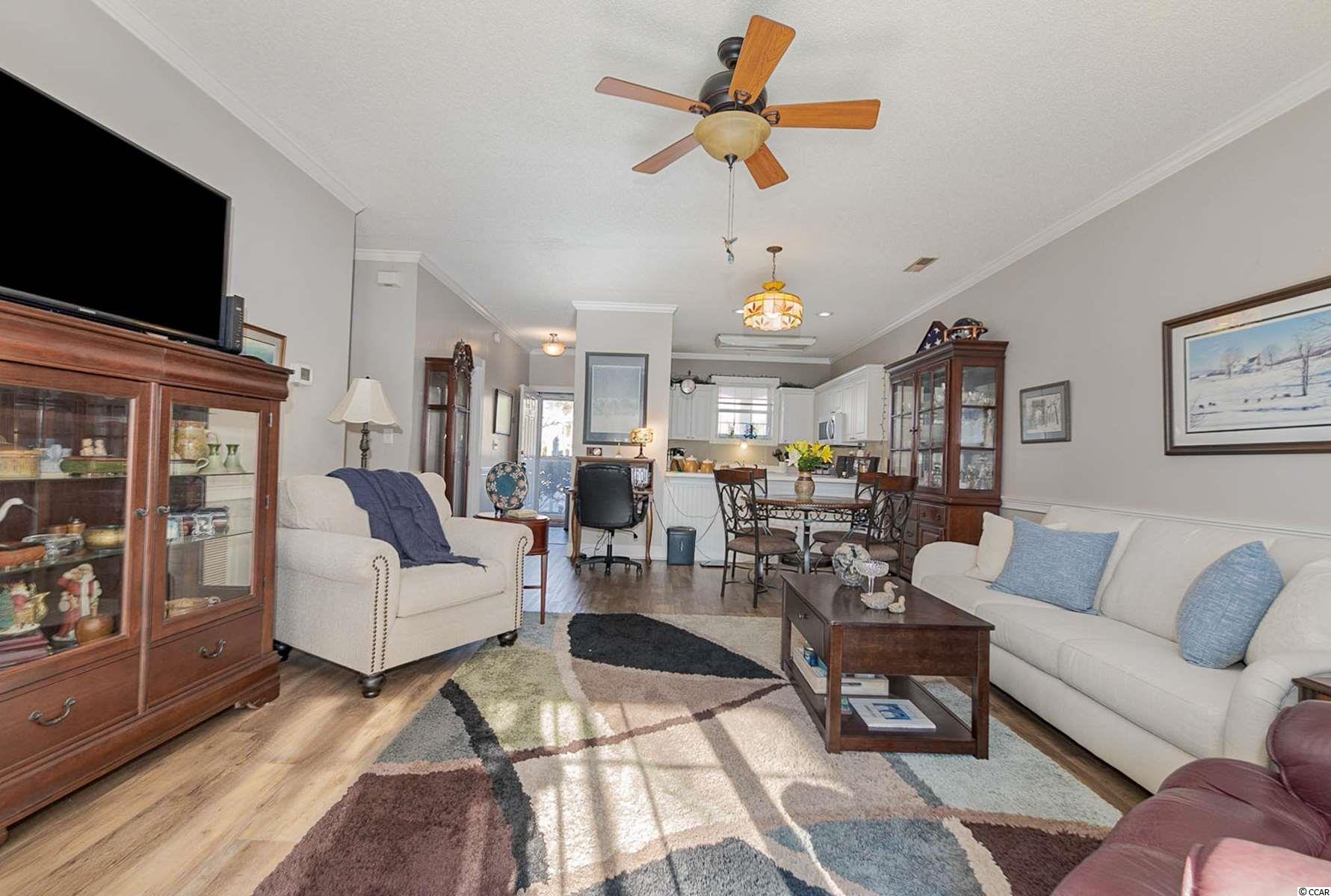 Bright & airy, first floor, 2 bedroom, 2 bathroom condo located in the community of Riverwalk in Arrowhead. The fully equipped kitchen offers a breakfast bar and plenty of cabinets and countertop space. The living area is open to the kitchen/dining which is perfect for entertaining and everyday living. The master bedroom has private access to the screen porch and an ensuite bathroom. The second bedroom is nicely sized and has access to a full-size bathroom which allows for more privacy. A washer & dryer are located in the condo for more convenience. Step onto the private screen porch and enjoy a morning coffee or evening cocktail with relaxing views of the golf course. There is attached storage off of the screened porch to put your beach gear and golf clubs. Additional features of this condo are ceiling fans throughout, chair railings, crown moldings and a wide sliding glass door in the living room. On top of this fantastic unit, Riverwalk offers great amenities including indoor & outdoor pools, a fitness center, ICW and is close to all of the shopping, dining, entertainment, golf, area attractions and just a short drive to the Atlantic beach! Whether you are searching for a primary home or your vacation getaway, don't miss out! Schedule your showing today!