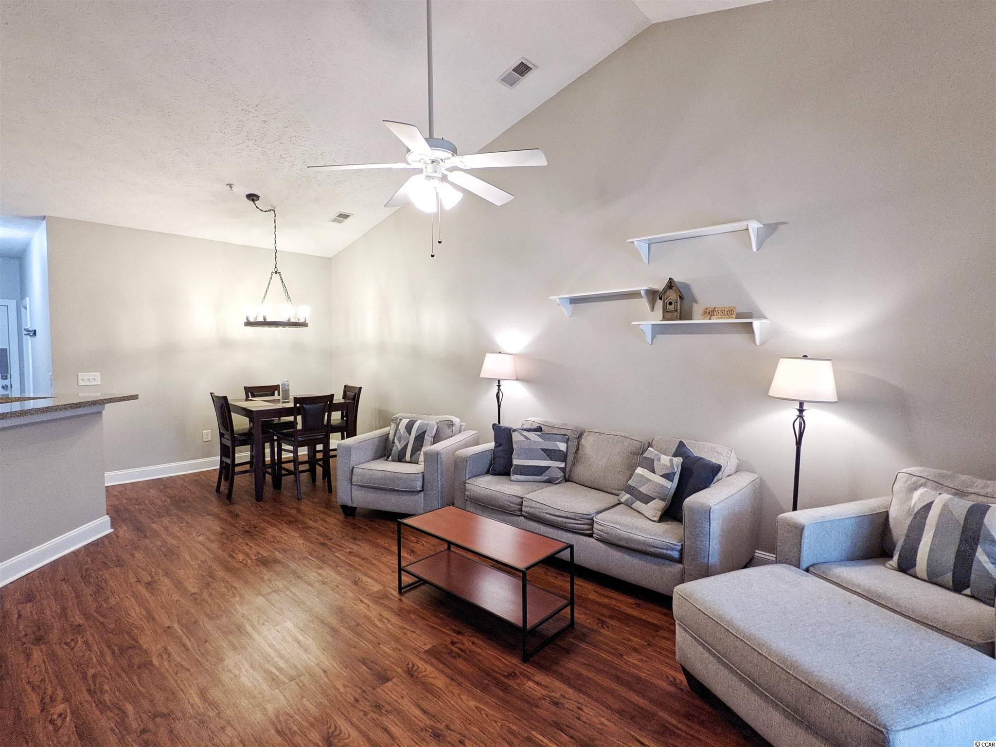 This quaint, gated community is conveniently located west of Highway 17. Centrally located in the heart of the Pawleys Island area, you will be just minutes from a wealth of shopping, dining, award winning golf courses and public beaches. Building 674 is one of the more desirable buildings in this neighborhood due to the private landscape that borders. Offering 3 bedrooms & 2 full baths, this turnkey unit is being sold fully furnished. Luxury vinyl tile flooring and vaulted ceilings highlight the main living area. Off the great room sits the private screened porch. Pawleys Pavilion offers its residents and their guests a community pool and lounging area with on-site bathrooms.