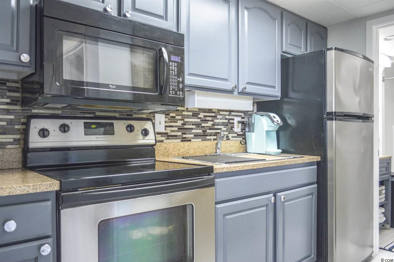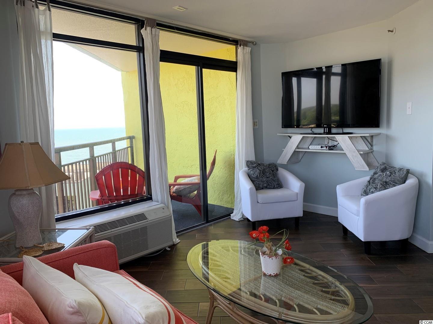 RARE private corner end-unit with unbeatable views of the ocean and the city of Myrtle Beach! This spacious 1 bedroom 1 bathroom remodeled unit is located on the 11th floor of Monterey Bay Resort - with security cameras facing the unit and the front door overlooking the beautiful 10th floor atrium pool/hot tub deck. Monterey Bay features tons of on-site amenities with multiple outdoor pools, indoor pools, lazy rivers, cabana bar, restaurant, fitness center, laundry facility and private beach access. Walking into the front door you enter into a large spacious bedroom with two brand new sleigh beds (including mattresses and bedding). Unit features brand new space saving furniture, window treatments, and decor. New paint throughout including smooth ceilings. Full bathroom includes a single granite bowl vanity, new hardware, shelving, lighting, and tub/shower combo. Owner also renovated the closets with custom shelving and new doors (great storage options in the unit unlike others). Brand new luxury carpet installed in the bedroom & living room (luxury ceramic hardwood tile underneath so if you don't want carpet the option is already there). Galley style kitchen features granite countertops, painted cabinets, stainless steel appliances, and tile backsplash. Open and wide floorplan is highlighted in the living room with two walls of floor to ceiling glass with incredible ocean and city views. Day or night - the views are unbeatable! Compared to interior units, this end-unit brings in a lot more natural light and it makes a noticeable difference. There is also not one but two private spacious balconies. Turn key one of a kind and must be seen to be appreciated - would make a great secondary beach getaway or primary residence. Schedule your private showing today and come see this model unit!