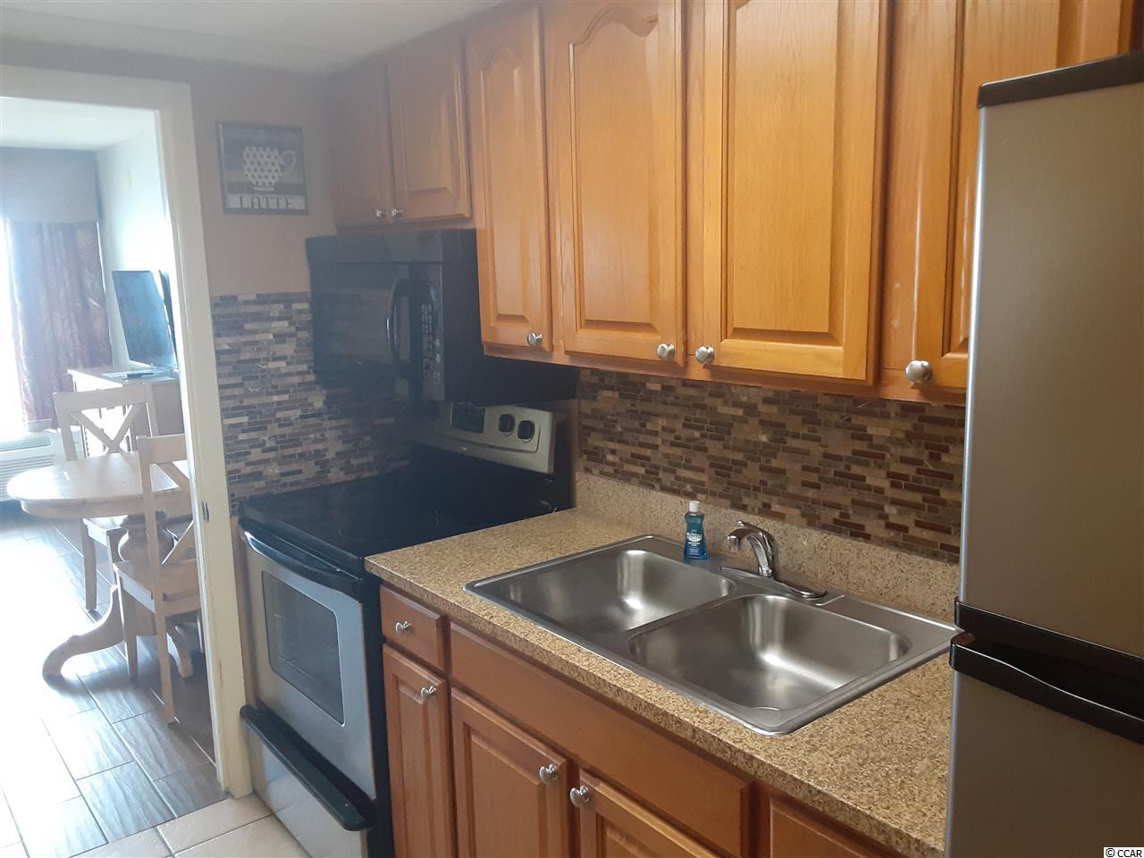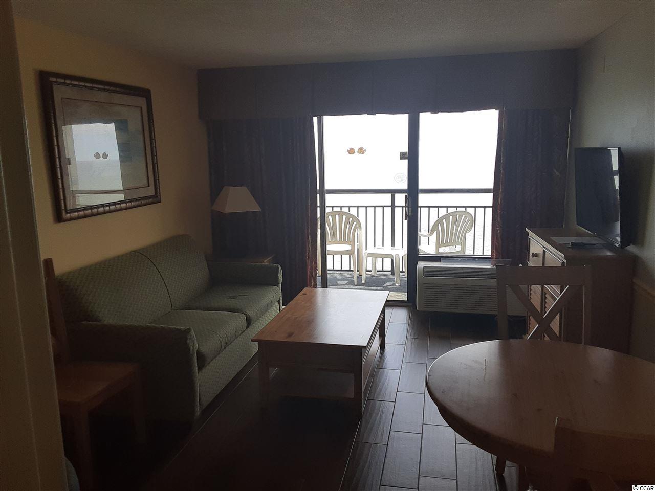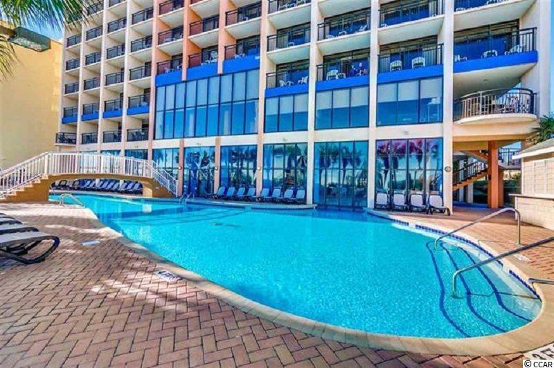 Beautiful 14th floor oceanfront unit with private balcony. Enjoy your morning coffee or late afternoon cocktail watching the ocean waves or walking on the beautiful sandy beach. Fully equipped kitchen with granite counter-tops and stainless appliances. Two queen size beds in master bedroom plus Murphy bed in living room Both AC units replaced in 2020. New headboards, dresser, nightstand, dining room table and chairs, coffee table, end table, TV stand and TV's, all replaced. Resort offers all amenities which include; outdoor pool, indoor pool, lazy river, game room, table tennis, playground for kids. This resort provides a breakfast buffet for owners and renters. Close to shopping, restaurants, major attractions and water parks. Great get-away or investment unit. Check it out today!
