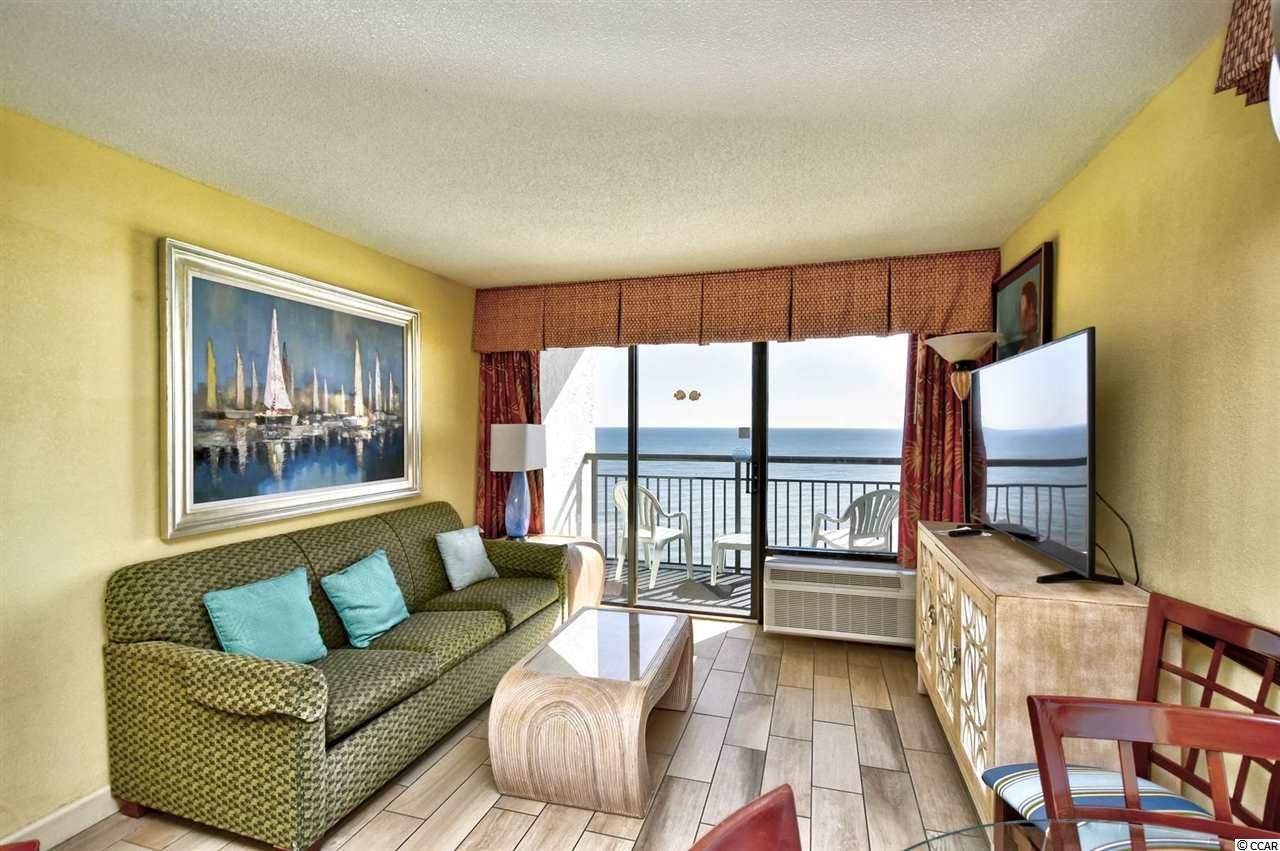Don't miss this RARE opportunity to own this top floor penthouse 1 bedroom unit in the highly sought after Monterey Bay. This end unit features upgraded tile flooring throughout with miles of ocean views from every room! The living room offers a murphy bed for an added sleeping space, a sliding glass door to your oceanfront balcony and floor to ceiling windows by the dining area overlooking the ocean as well! The kitchen is equipped with all stainless steel appliances, upgraded countertops and back splash. The bedroom includes plenty of closet space and a window with an ocean view. Monterey Bay offers top of the line amenities such as onsite laundry facilities, exercise room, onsite dining, indoor and outdoor pools, lazy river, kids pools and play areas, hot tubs, a sun deck, private beach access, and more! Whether you are looking for a second home on the beach or your next investment opportunity, you won't want to miss this! Schedule your showing today!