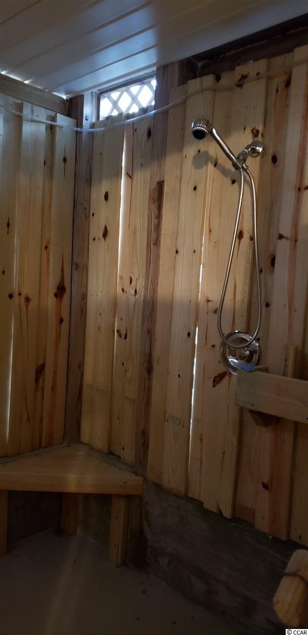 Raised furnished beach home just 3 blocks from the beach in the Arcadian Shores section of Myrtle Beach! This home has three bedrooms, and two full baths, open kitchen,dining and family room nice covered front porch with teak flooring and vinyl rails. Double garage has storage room, screened in area for entertainment and nice outdoor shower area with cold and hot water. Heating and cooling has been replaced, well maintained.