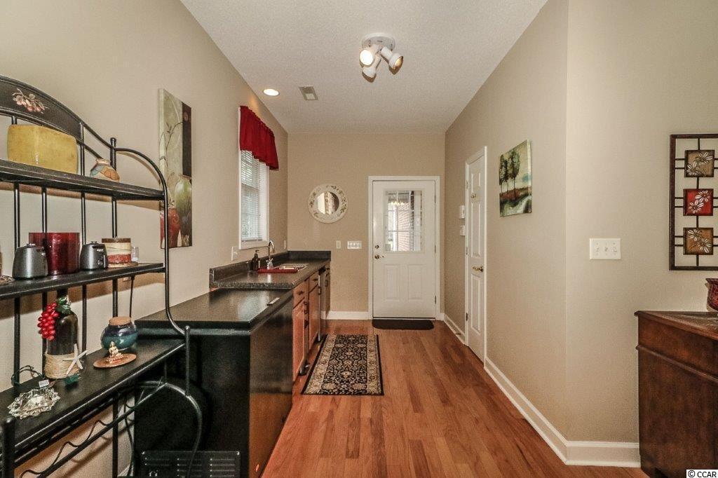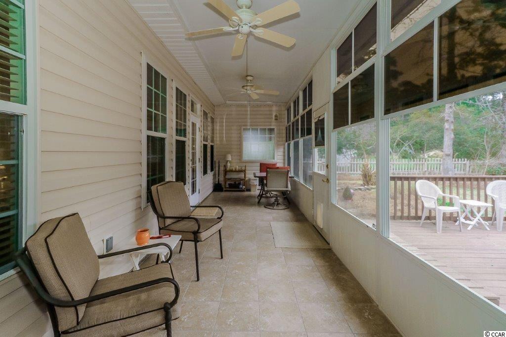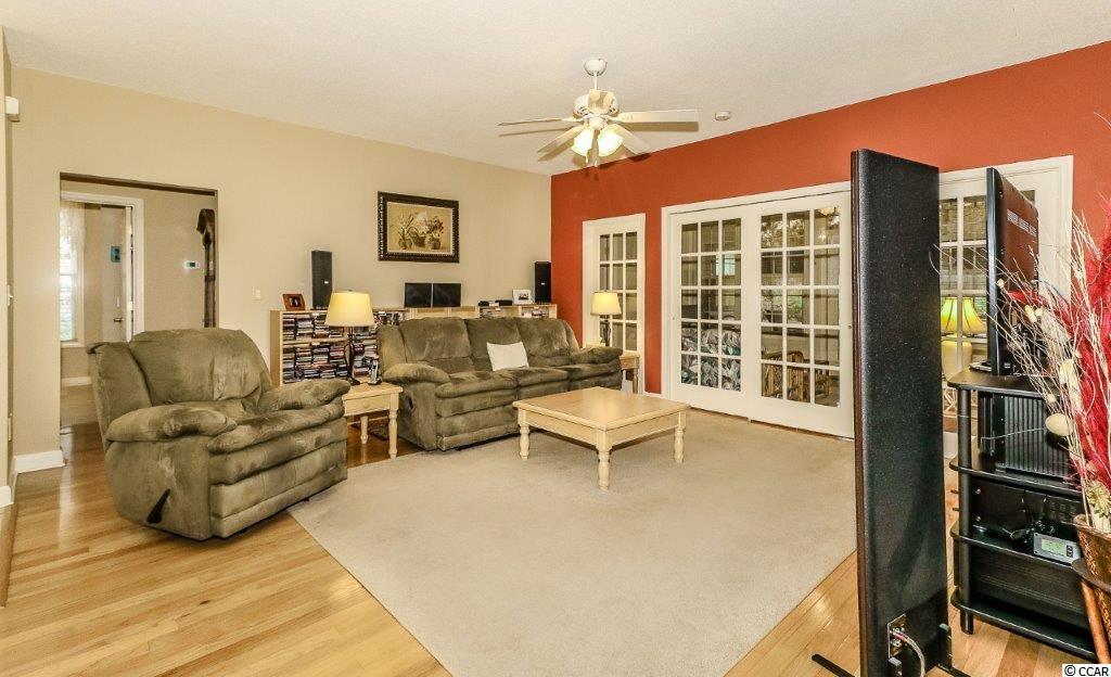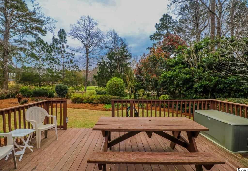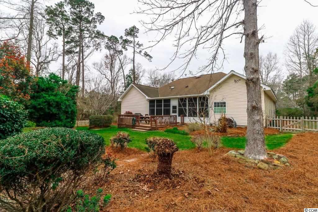 Incredible Value in Hagley Estates, Pawleys Island. This brick and vinyl 4br 4ba home on .70 acre lot backing up to the Founders Club Golf Course has been meticulously cared for and offers privacy, space and tons of flexibility. This home is move in ready with NO HOA FEES. The great room features French doors leading to Carolina room which then opens to a beautiful enclosed porch with vinyl windows and tiled floor. The Large kitchen brings in natural light through the solar-tube and has upgraded cabinets with tons of storage, granite counters, and tile backsplash. Entertaining family and friends will be a pleasure in the huge dining room with its own 9x7 wet bar area with an under the counter refrigerator, storage shelves and pantry. Great room, Carolina room, master bedroom, dining room and hallway have beautiful flooring. Downstairs has a large master bedroom and bath and two additional bedrooms one with its own private bath and an additional shared bath. Upstairs there is a bonus room that can be used as 4th bedroom or game room with a full bath. Additional features include 9' ceilings throughout, irrigation system, central vacuum system, and security system. Outside of the large screened in porch you can relax and enjoy the 16x19 deck which overlooks a lovely professionally landscaped backyard. And 3rd green of the Founders Club In-Law Suite ALERT!!! Don't spend money to add-on to another home for additional private living quarters. The current owners had the home built with a large in-law suite complete with kitchen, living area, and private bedroom and bath, but designed it in a way that when it was not needed the extra space would flow seamlessly into the rest of the home. The in-law suite has since been converted back, but all of the original features are still available behind the walls including 220 power for a range, additional power, etc.