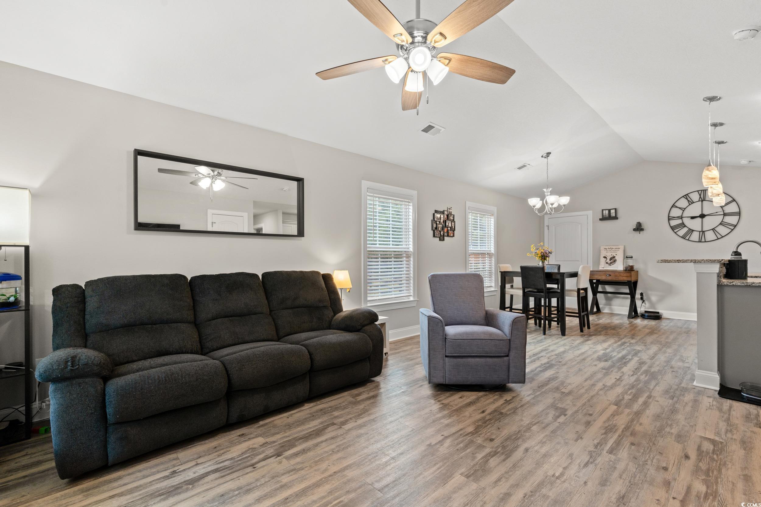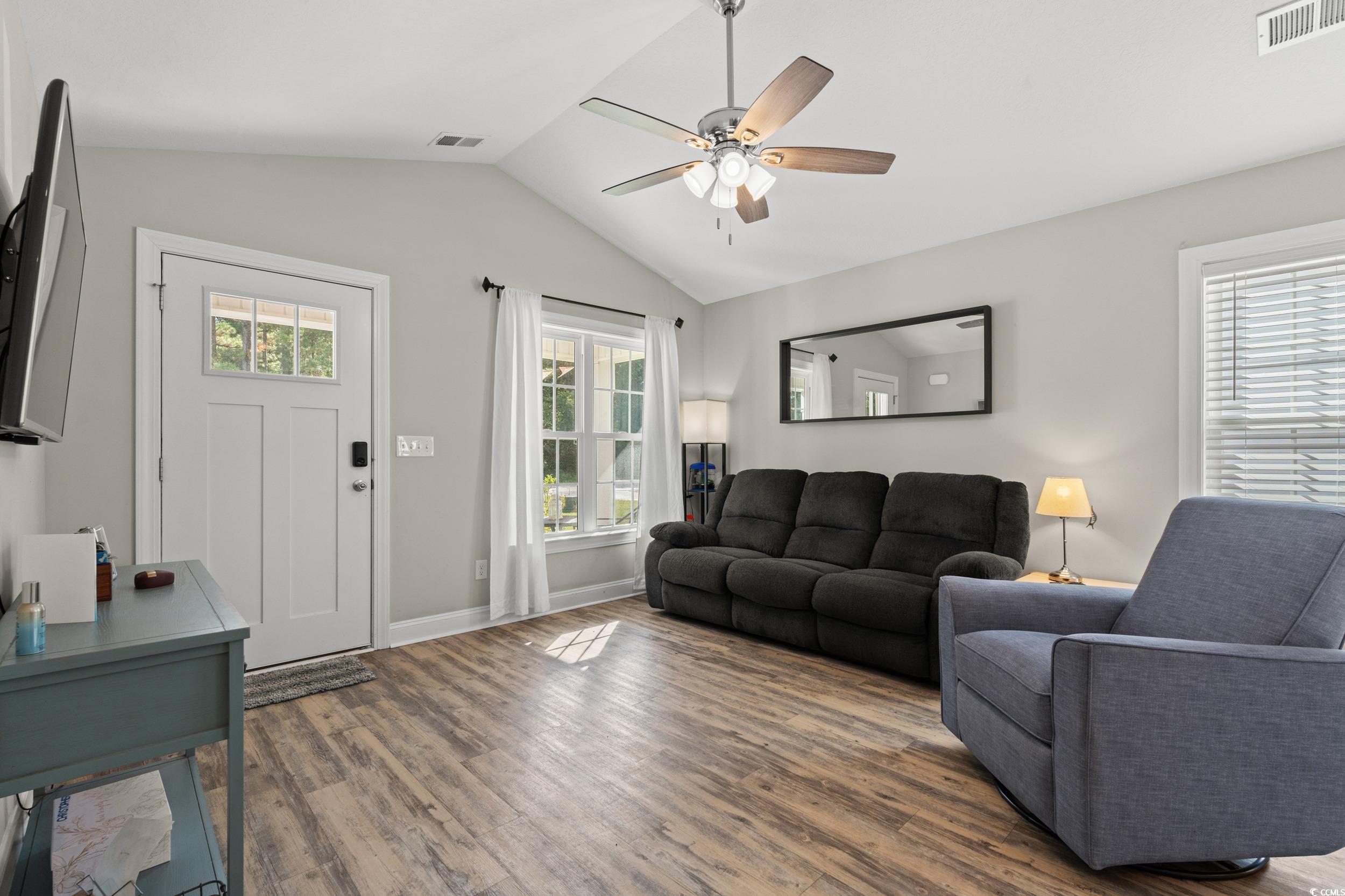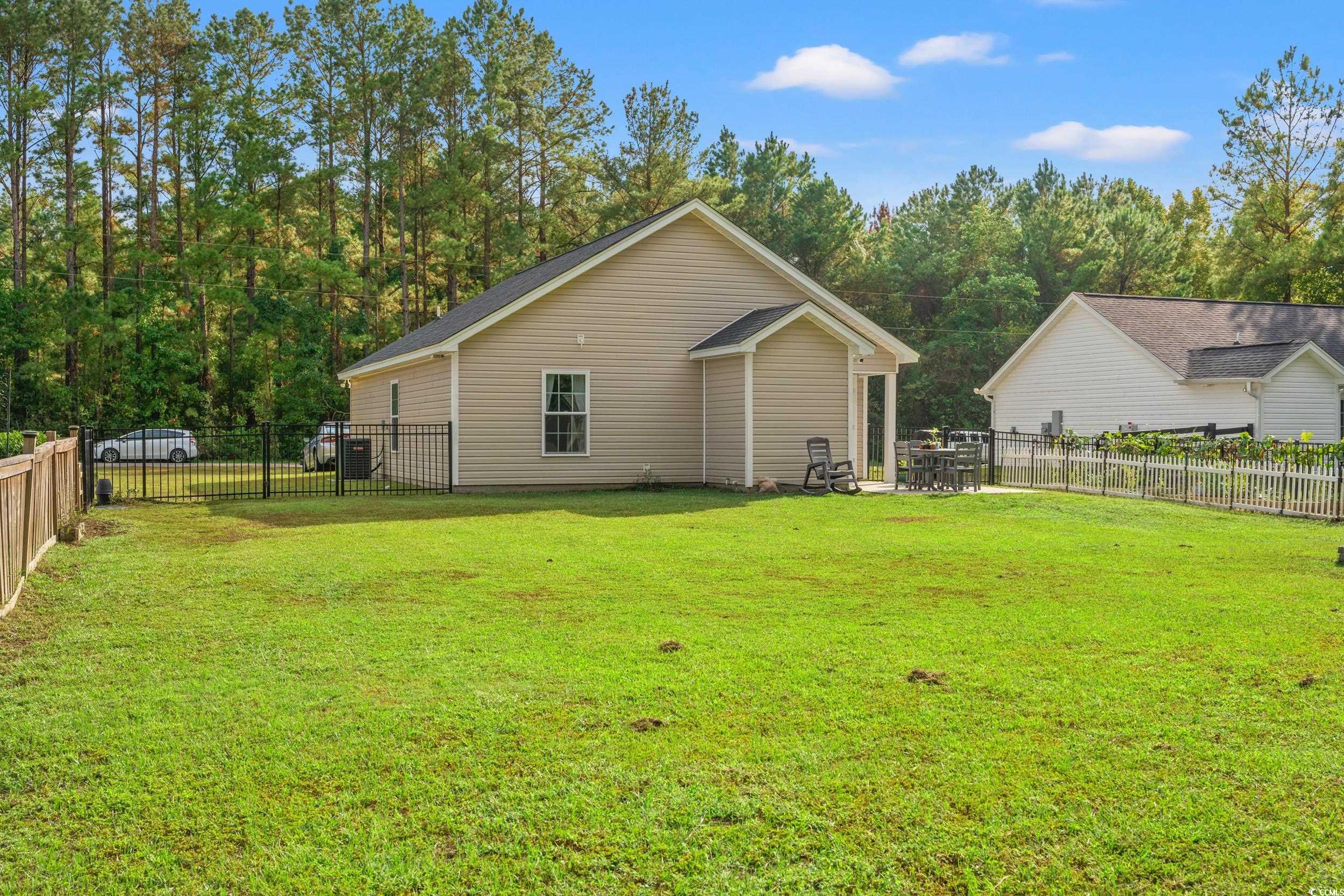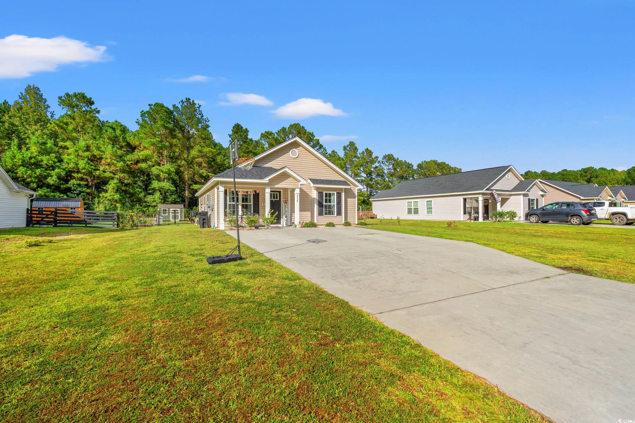 Welcome to this charming 3-bedroom, 2-bathroom home situated on a spacious lot with no HOA! This single-level home offers an open floor plan, featuring a vaulted ceiling in the living area. The kitchen is thoughtfully designed with granite countertops, stainless steel appliances, and a breakfast bar. The master suite includes a tray ceiling, walk-in closet, and a private bath. The split-bedroom layout provides added privacy, and luxury vinyl plank flooring runs throughout most of the home. Enjoy outdoor living with a covered front porch, a rear covered patio, and a spacious fenced in backyard. An attached exterior storage room adds convenience. Located just minutes from downtown Loris, major highways, and within easy reach of the beach. Dont waitschedule your showing today and make this beautiful home yours!