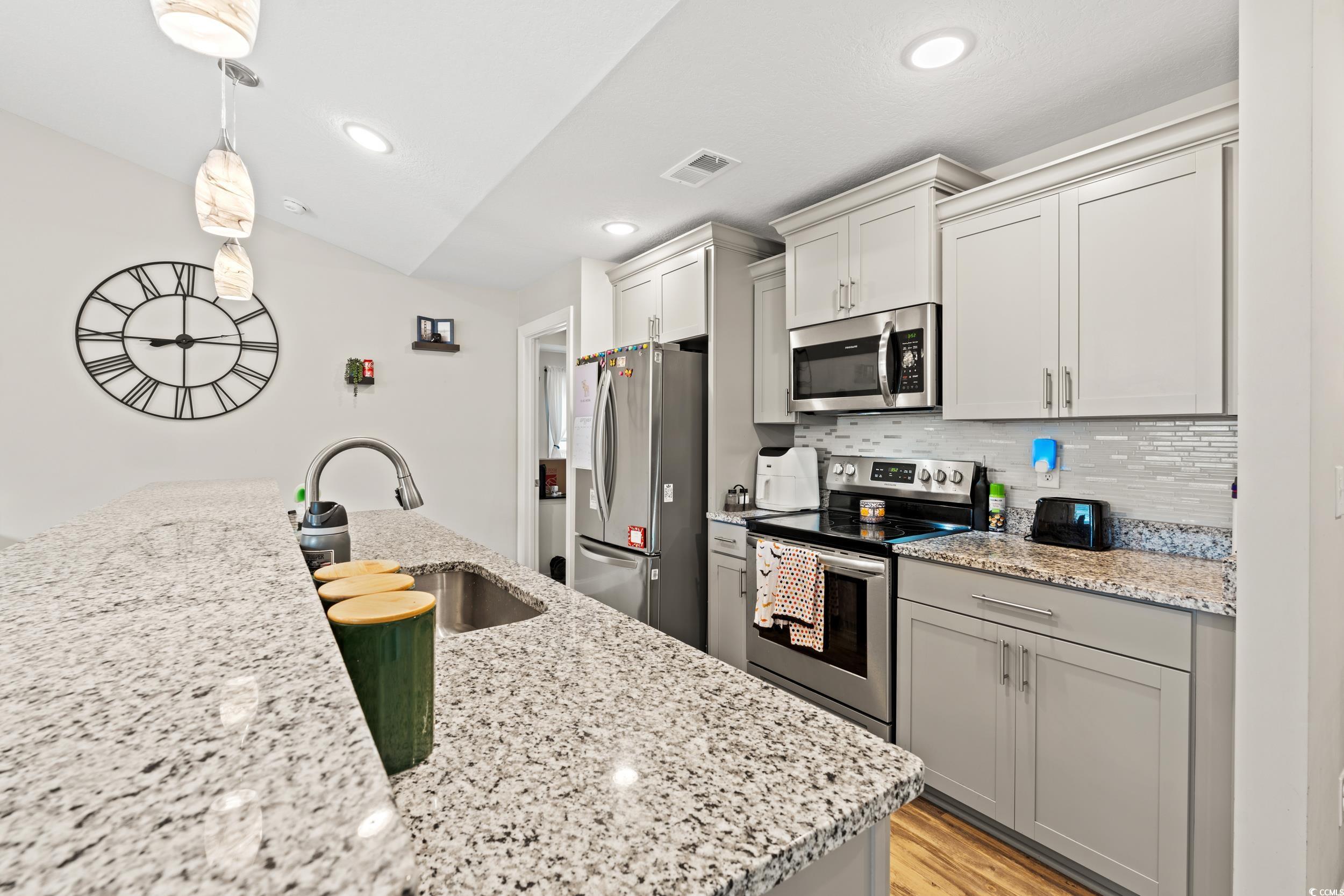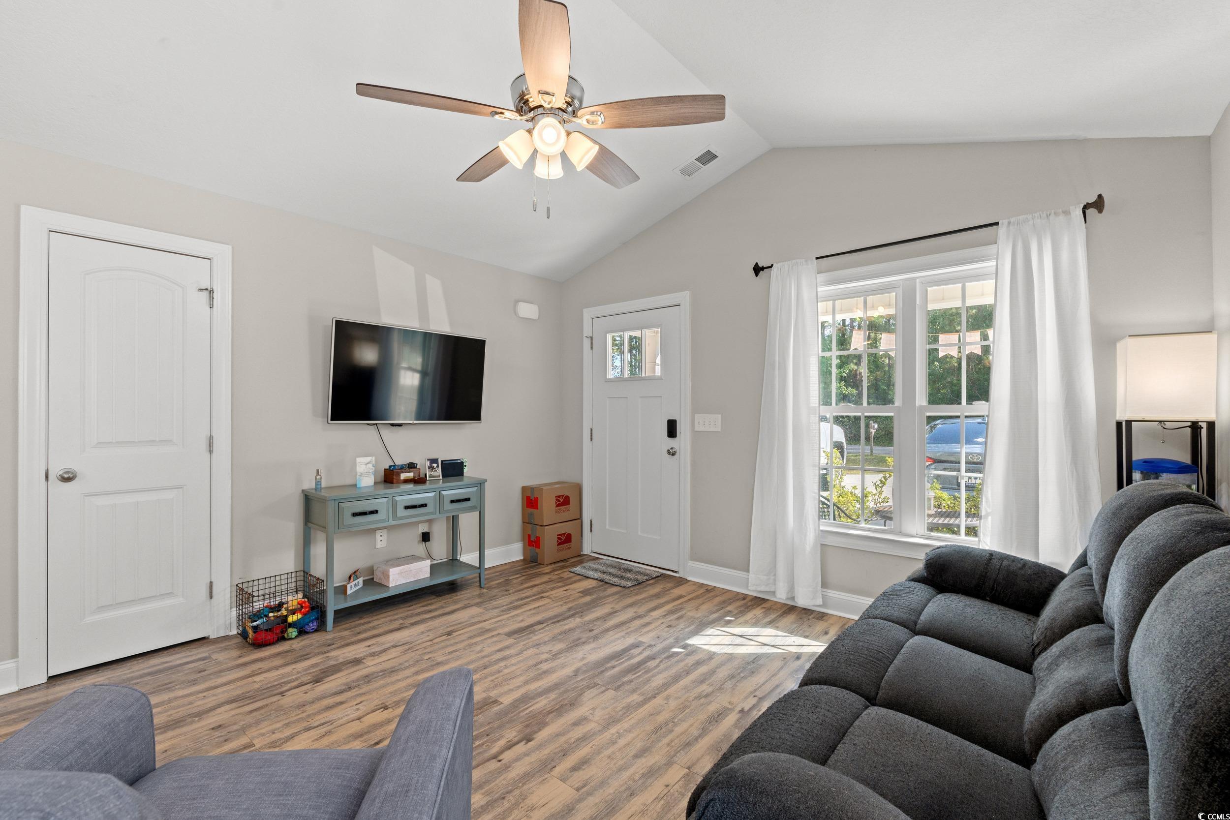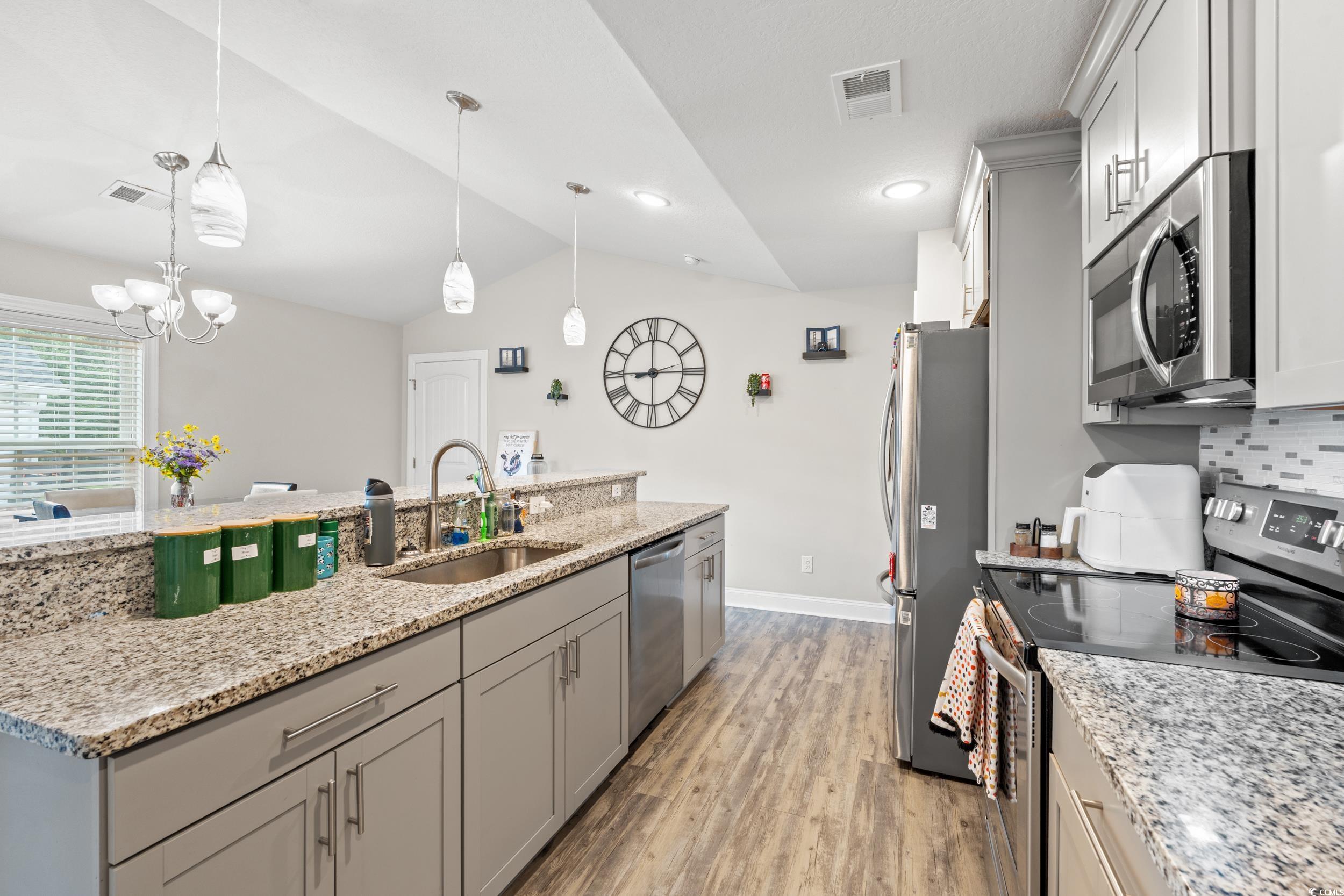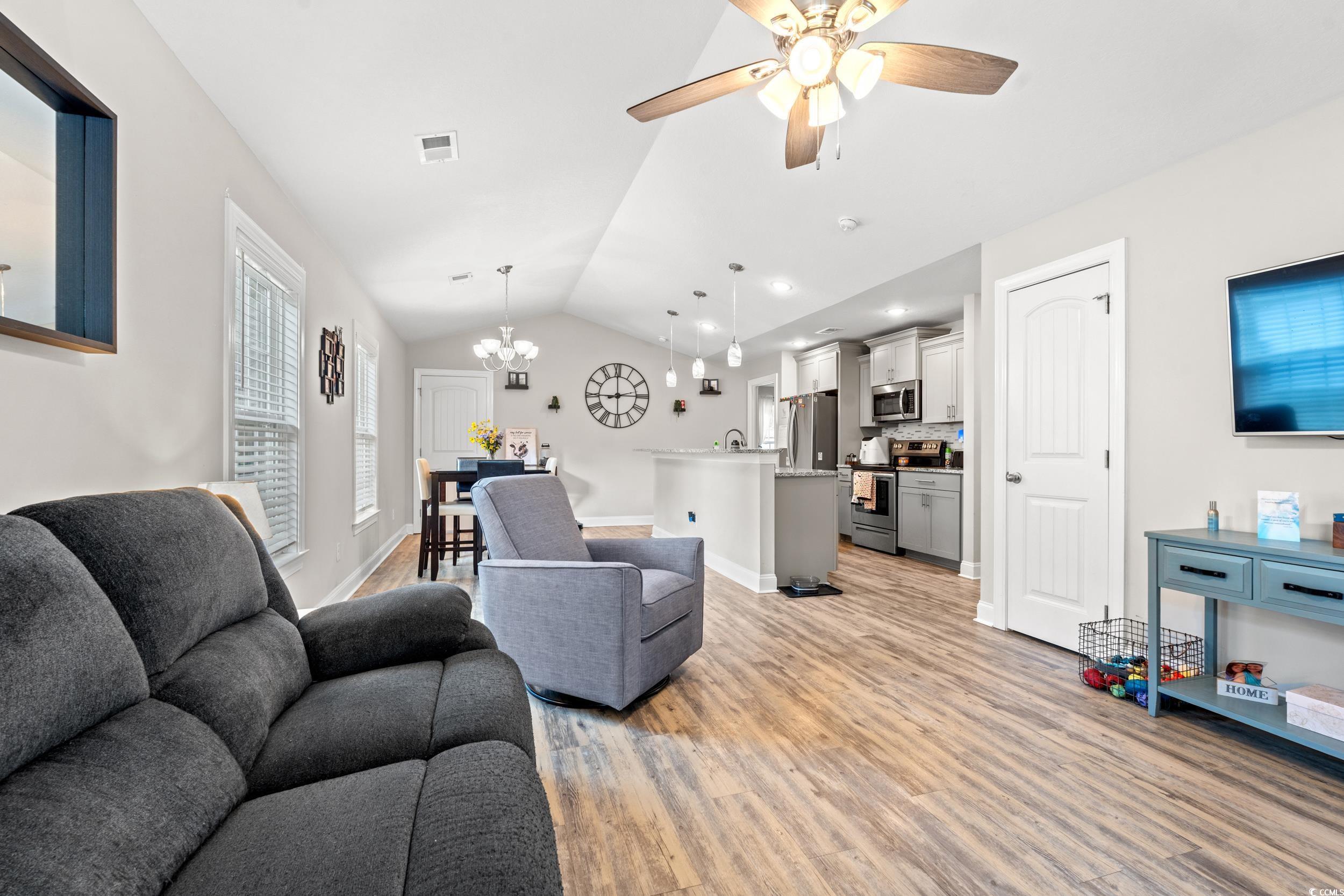 Welcome to this charming 3-bedroom, 2-bathroom home situated on a spacious lot with no HOA! This single-level home offers an open floor plan, featuring a vaulted ceiling in the living area. The kitchen is thoughtfully designed with granite countertops, stainless steel appliances, and a breakfast bar. The master suite includes a tray ceiling, walk-in closet, and a private bath. The split-bedroom layout provides added privacy, and luxury vinyl plank flooring runs throughout most of the home. Enjoy outdoor living with a covered front porch, a rear covered patio, and a spacious fenced in backyard. An attached exterior storage room adds convenience. Located just minutes from downtown Loris, major highways, and within easy reach of the beach. Dont waitschedule your showing today and make this beautiful home yours!