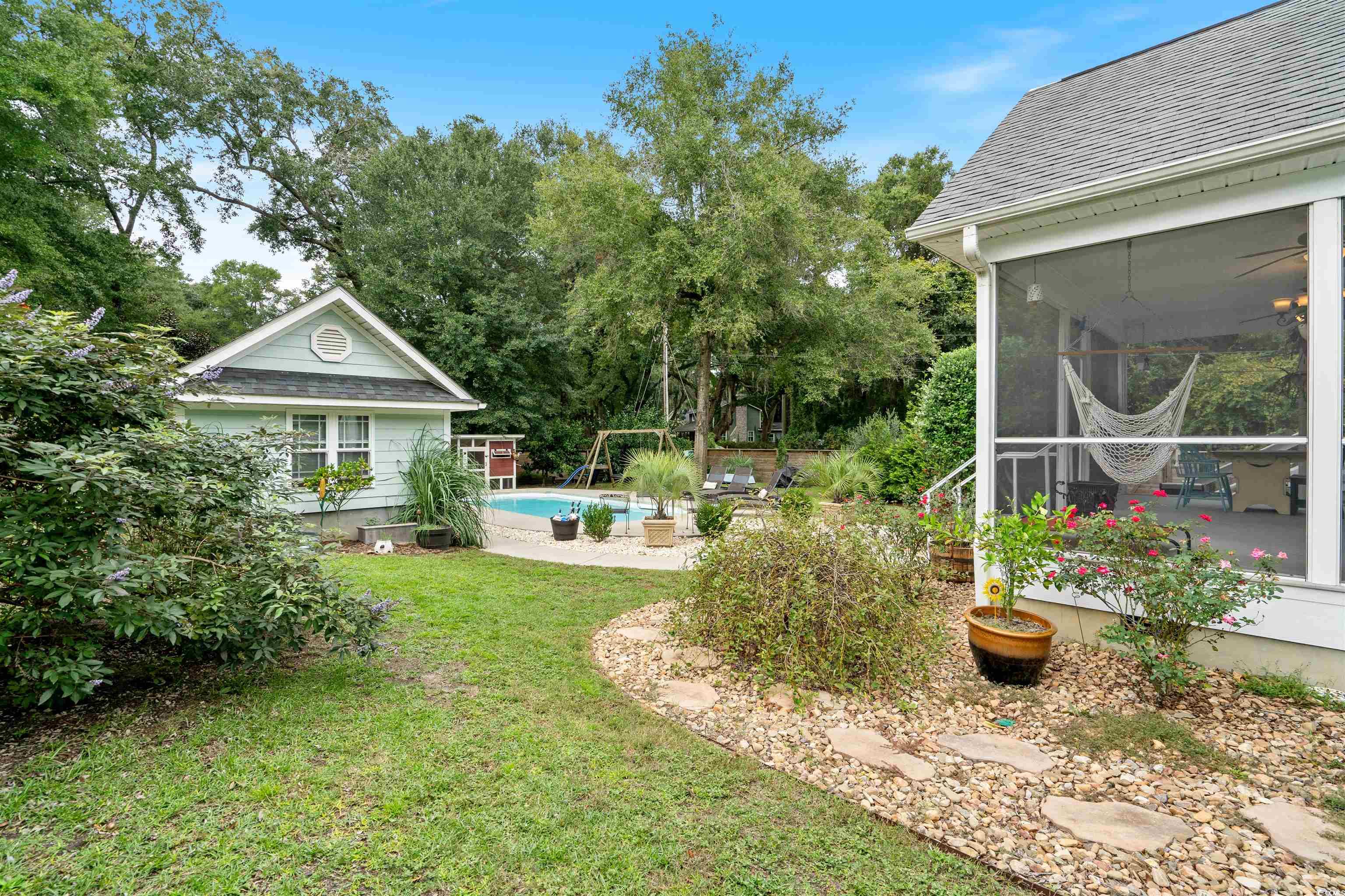 Welcome to 694 Old Waccamaw Drive. This 3 bdrm, 3 bth custom built Low Country home is located on a large corner lot in the heart of Hagley Estates. A delightful open-concept design allows the kitchen, dining room, and living room area to merge seamlessly for a spacious and airy feel. It is an inviting space with neutral tones and bold accent walls. The cooks in the home will love the dream kitchen with abundant cherry cabinetry, stainless steel appliances, a gas stove, and white quartz countertops, creating a beautiful but functional space. The formal dining room, with its 12-panel glass doors and double entry off the grand foyer, is currently used as an office. The family room features LVT wood-look floors, plantation-style ceiling fans, and plenty of natural light. The layout of the bedrooms is designed for privacy. The relatively large primary suite is tucked off the living room, offering plenty of space for a sitting area and a king-sized bed. You'll love the dual walk-in closets and the en suite bathroom, complete with his-and-hers vanities, a glass-enclosed tiled shower, and a luxurious clawfoot tub for soaking. Located at the front of the house is an office with double doors, a large window with plantation blinds, and a cool black accent wall that pops, currently used as a bedroom. Tucked away on the other side of the house, offering even more privacy, is the second bedroom, and don't forget the bonus roomjust a few steps down, it could be anything from a guest suite to a game room, with its full bathroom and a separate entrance. Outside, youll fall in love with the enormous screen porch overlooking the pool, a spacious patio, a yard with a playground, and a fire pit for those cooler evenings. The fully fenced yard has an outdoor shower, and the pool house has a working toilet with plumbing. The wide front porch is perfect for rocking chairs and a swing, where you can enjoy the peaceful surroundings. Nestled in the desirable Hagley Estates, this home offers the perfect mix of seclusion and convenience. With no mandatory HOA, you'll enjoy the freedom of living in a relaxed community. Just a short drive away, you can launch your boat at the Hagley public ramp, explore the Waccamaw River, or enjoy a peaceful evening watching the sunset. The neighborhood is also close to many top-tier golf courses, local restaurants, shopping, and the beautiful beaches of Pawleys Island and Litchfield, giving you endless options for recreation and relaxation. Dont miss the chance to make this exceptional home your ownschedule a showing today!