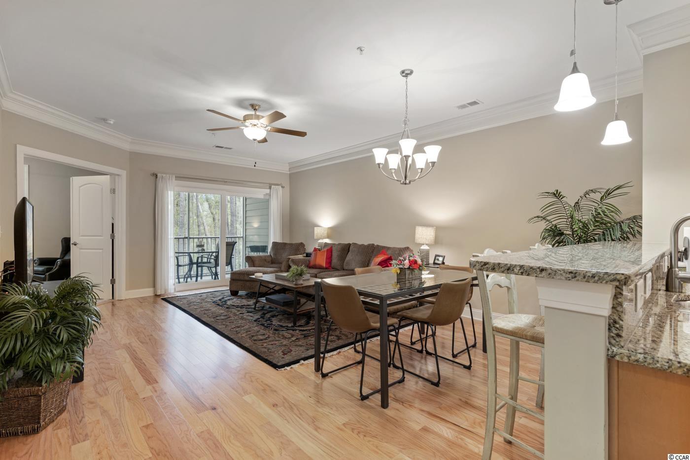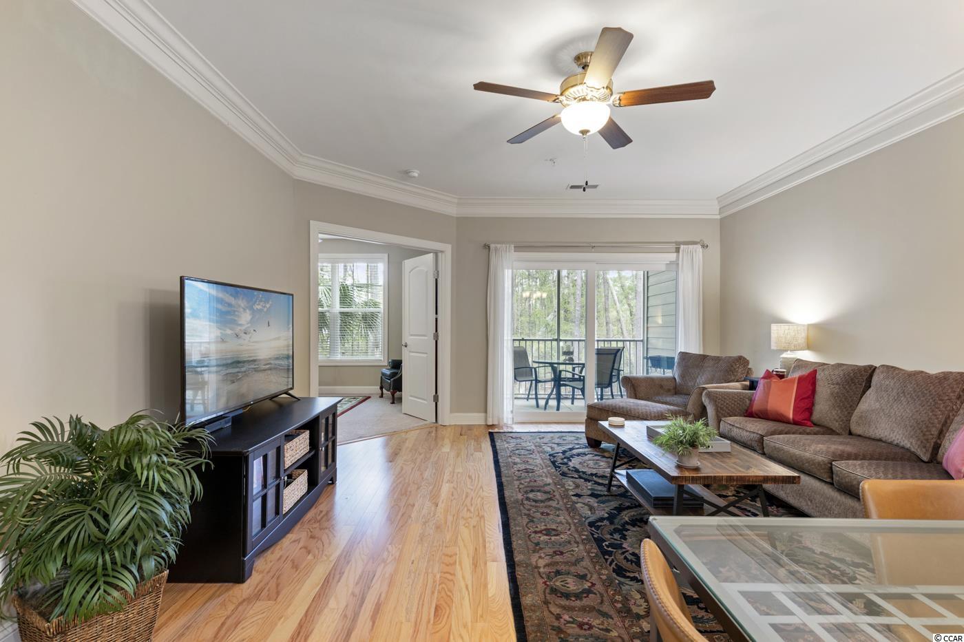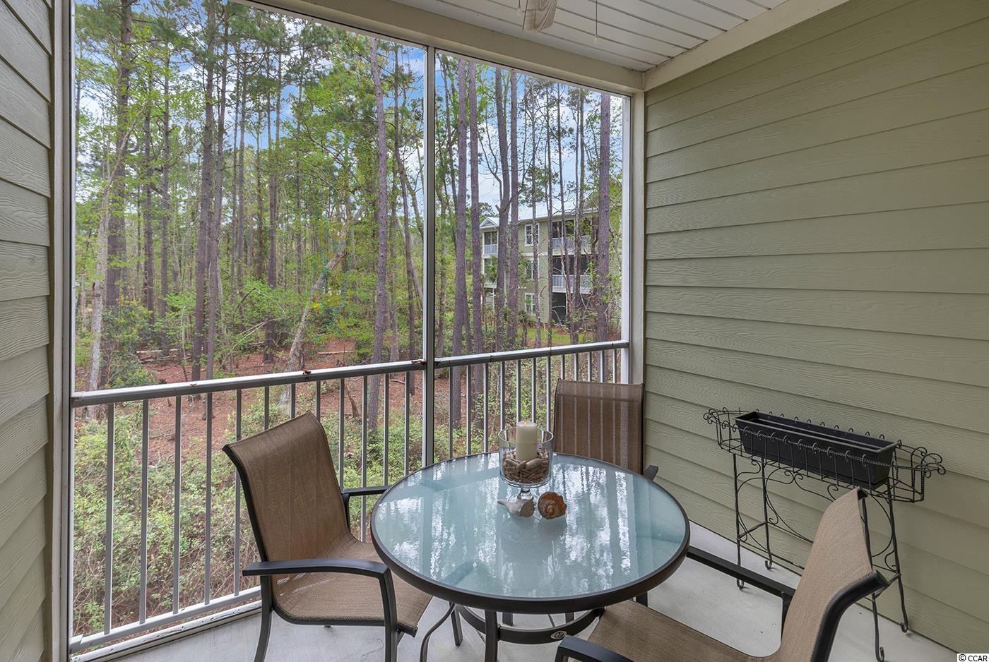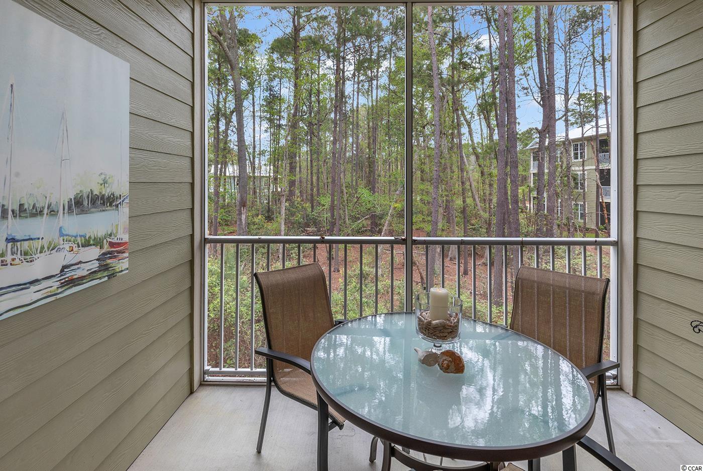 Move in READY! Take the elevator or the stairs to this beautiful single level living condo that offers an open floorplan and a view of WOODS off the screened in porch. Spacious kitchen with granite countertops, stainless steel appliances, pantry and breakfast bar. It has a coat closet!!! Hardwood floors throughout the main living area. Carpet in the three bedrooms with tile in bathrooms and laundry room. Owner's suite offers two walk in closets and a private bath with a walk in shower. Right outside the front door is a private large storage closet for you to hang your bike and store your golf clubs and beach chairs. Conveniently located within walking distance to popular area restaurants, shopping, the public library and you can ride your golf cart or bike to THE BEACH!