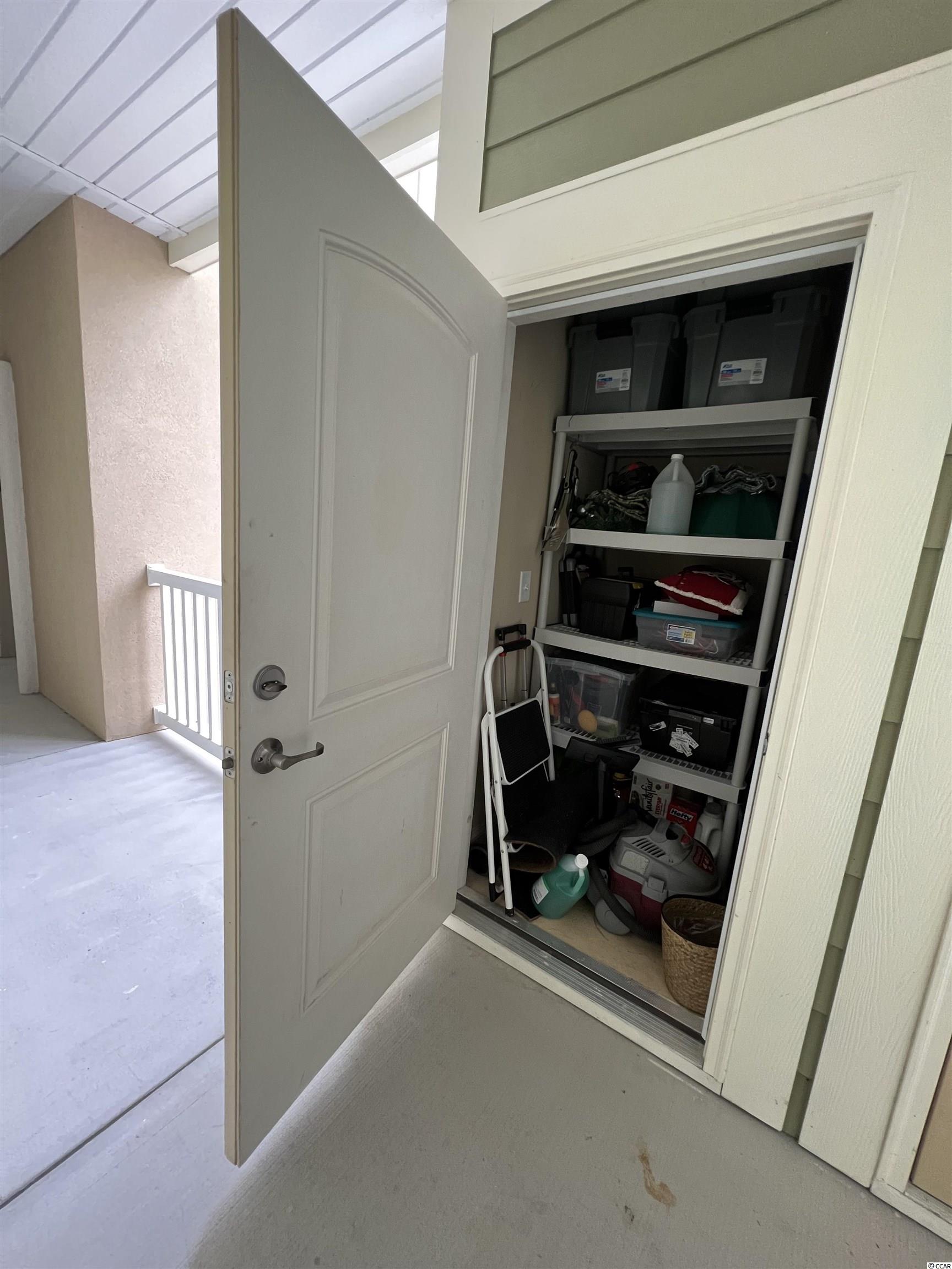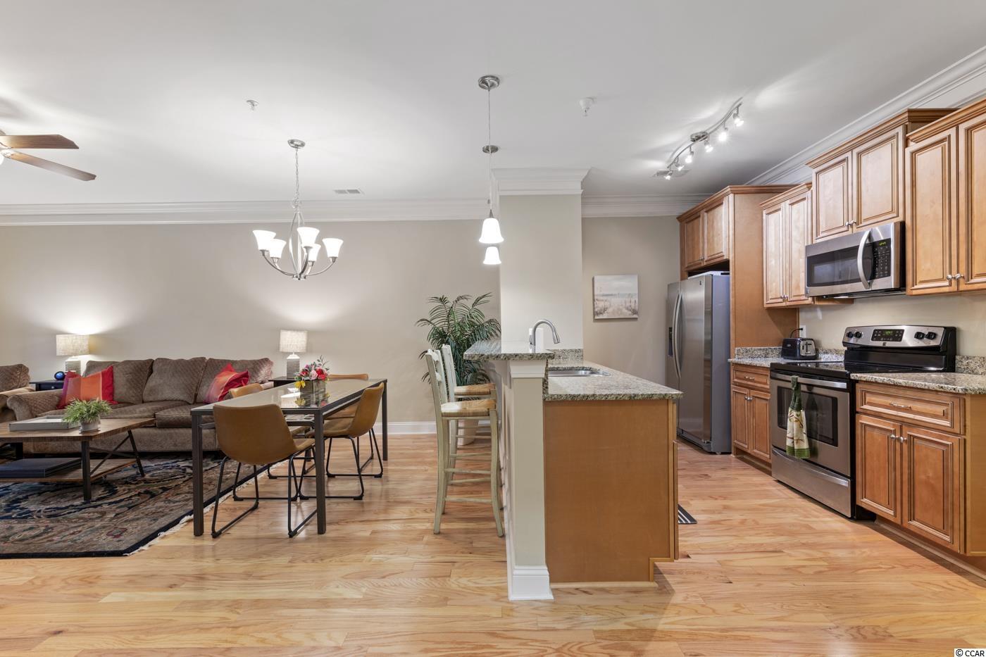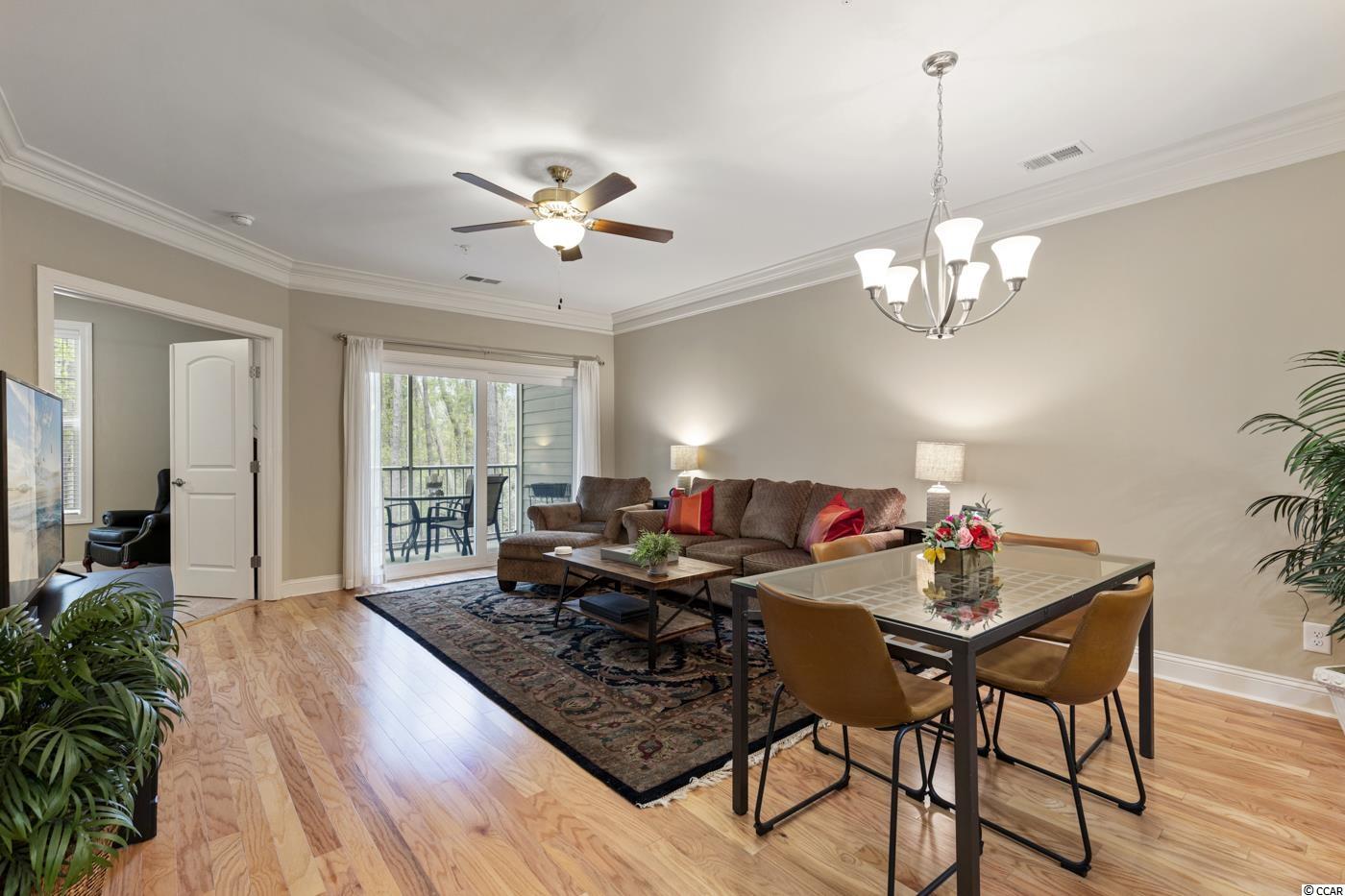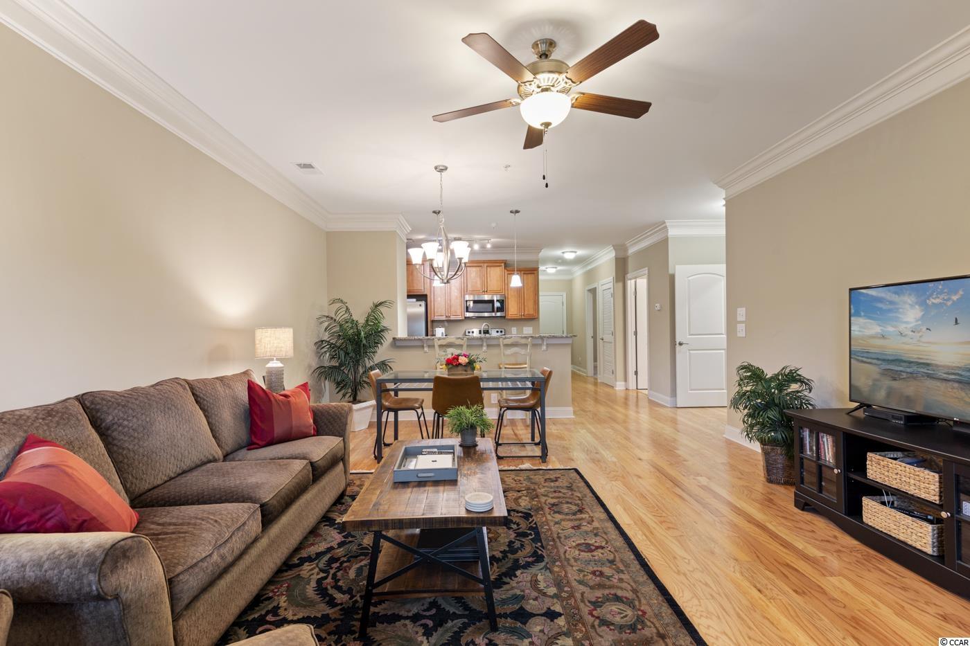 Move in READY! Take the elevator or the stairs to this beautiful single level living condo that offers an open floorplan and a view of WOODS off the screened in porch. Spacious kitchen with granite countertops, stainless steel appliances, pantry and breakfast bar. It has a coat closet!!! Hardwood floors throughout the main living area. Carpet in the three bedrooms with tile in bathrooms and laundry room. Owner's suite offers two walk in closets and a private bath with a walk in shower. Right outside the front door is a private large storage closet for you to hang your bike and store your golf clubs and beach chairs. Conveniently located within walking distance to popular area restaurants, shopping, the public library and you can ride your golf cart or bike to THE BEACH!