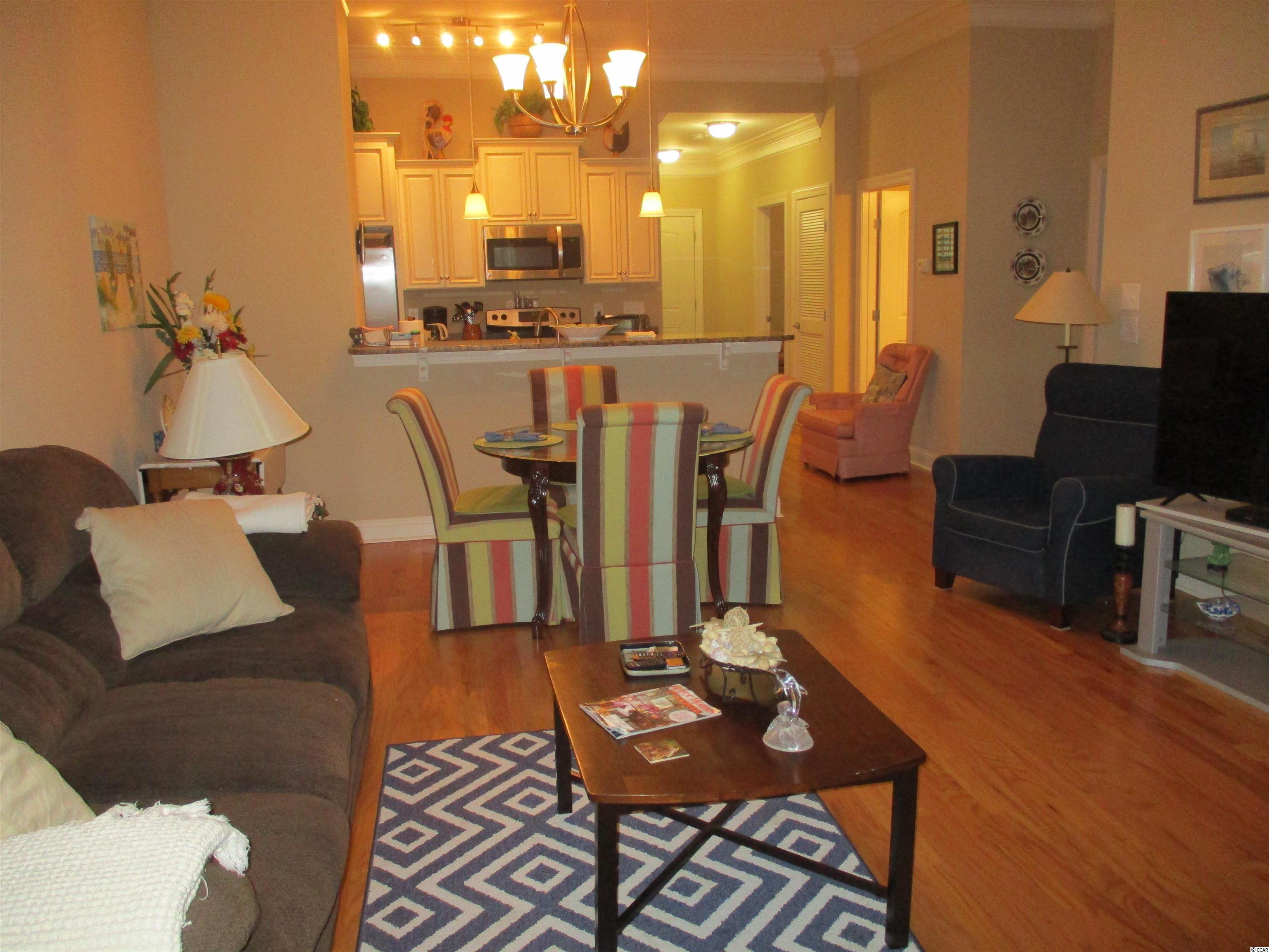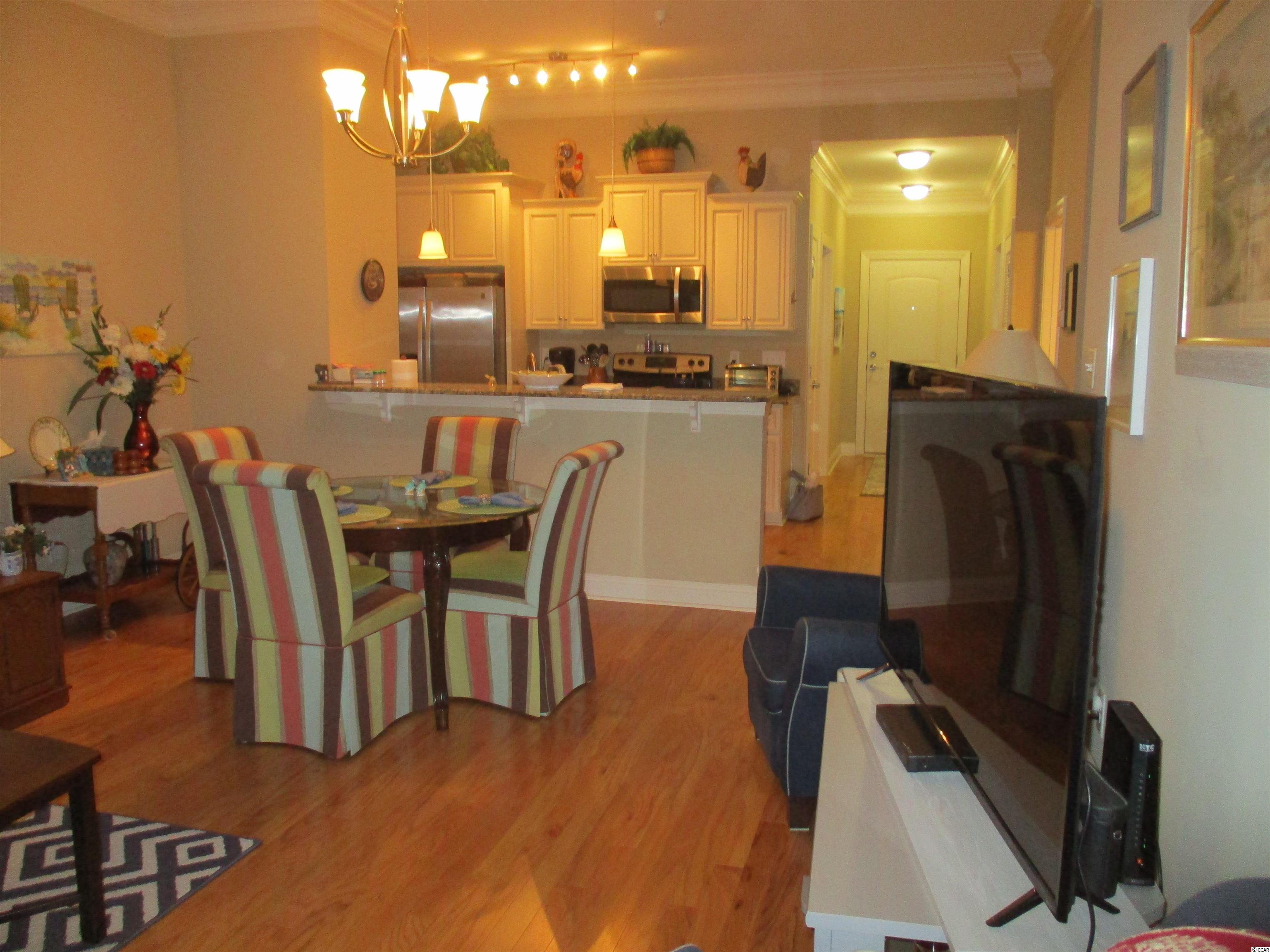 Village at Mingo, You will not want to miss this spacious and comfortable home. Built in 2017 and located in a very desirable development across from the sparkling blue Atlantic Ocean. This top floor unit offers many features throughout including 3bedrooms 2 baths, laundry room, beautiful hardwood floors, 10ft ceilings, crown molding in the main living area, stainless steel appliances, granite counters in the kitchen and bathrooms, plantation shutters, screened porch that overlooks a wooded area that is protected and cannot be built on. This home is conveniently located and within walking distance to restaurants, shopping, salons, and walking /biking trails. Also a car or bike ride to the ocean. Onsite, inground pool for residents to enjoy, lush landscaping, elevator access, gas grills in common areas and more. Square footage is approximate. Buyer should verify.