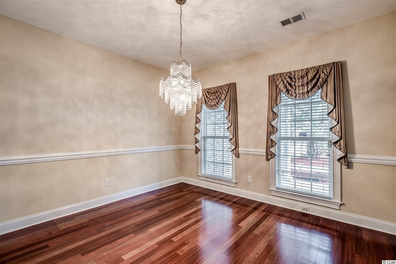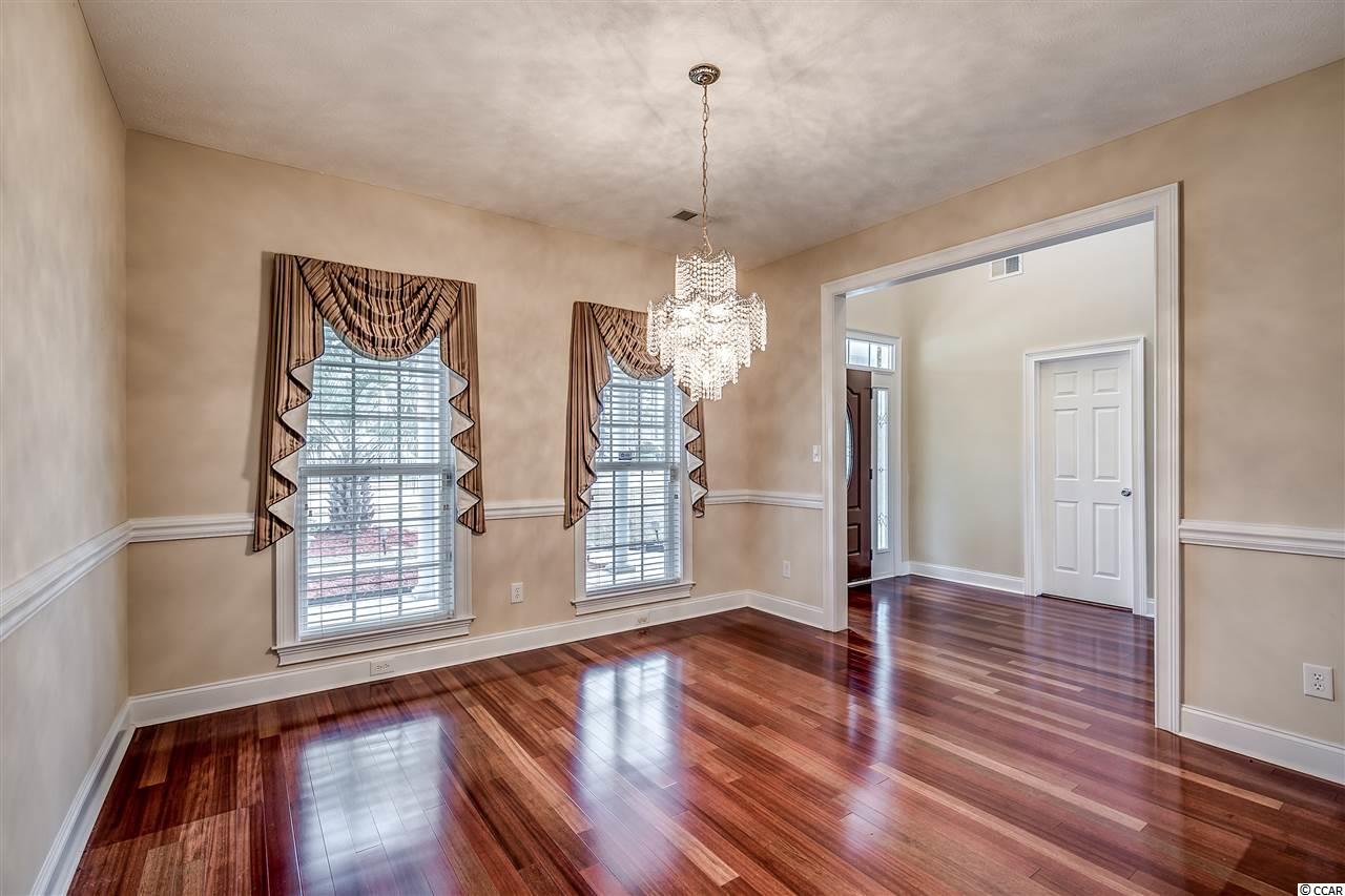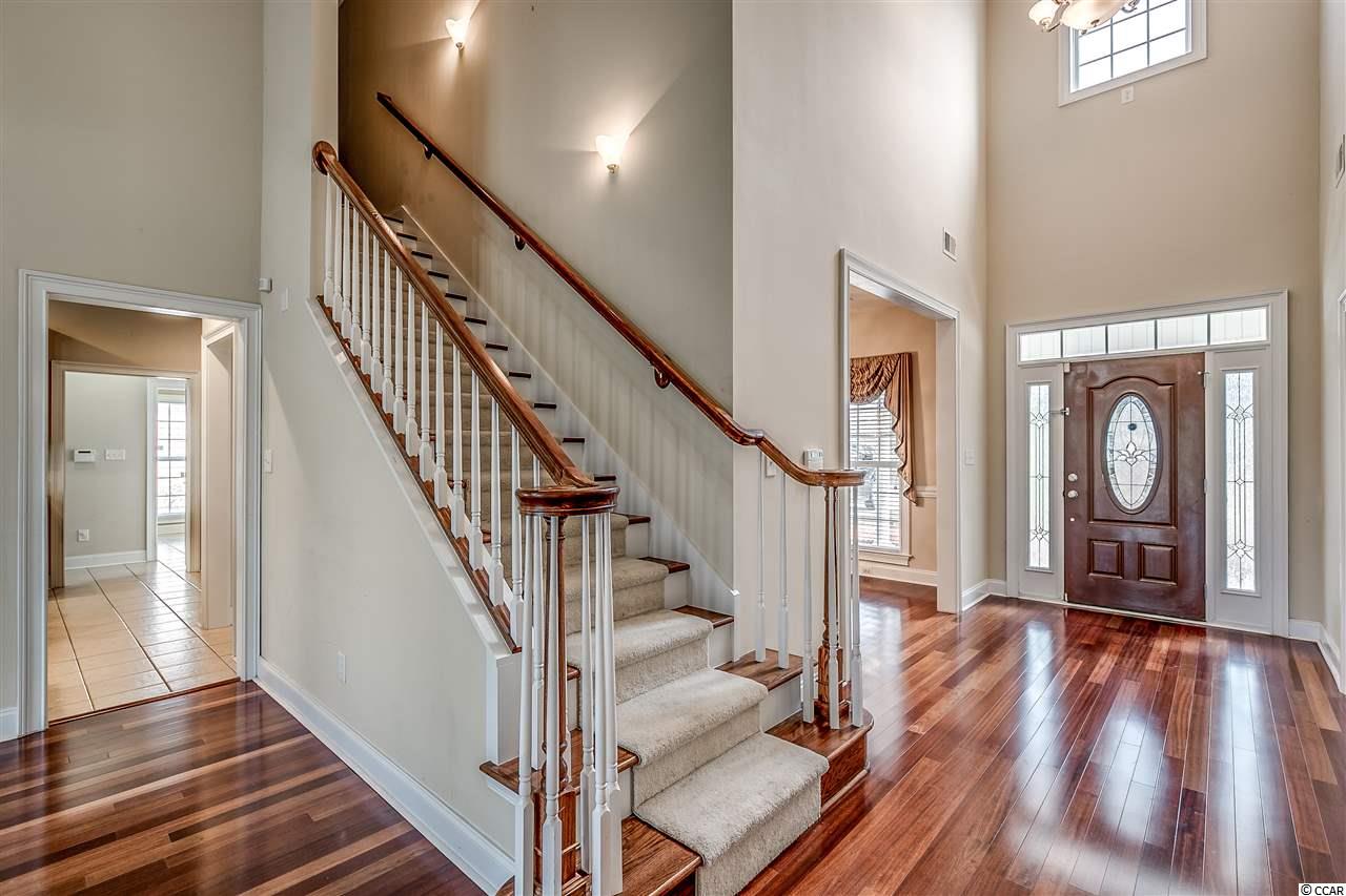 Waterford Plantation is a highly desirable neighborhood in Carolina Forest loaded with custom built homes and mature landscaping. This stunning and spacious 4 bedroom, 3.5 bath, plus bonus room has everything you can need in a large home! Walking through the front door you will take notice of the expansive ceilings, crown molding, custom hand rails, Brazilian cherry hard wood floors, breathtaking views of the 7th tee box, huge great room, surround sound, intercom throughout the home, gourmet kitchen, work island, breakfast bar & nook, pantry, granite counter tops and brand new stainless steel appliances, along with a large formal dining area, big utility room, and 2 en-suites with there own private bath on the first floor. The main level master suite features a very large bathroom with double sinks, a garden tub, walk-in shower, and spacious walk-in closet! Up stairs you will find the other two bedrooms, plus the huge bonus room that can be used as a 5th bedroom. Home is perfectly situated on the seventh tee box to allow the breath taking views of the golf course, but positioned so no golf balls will ever find the back yard; and is perfect to enjoy your morning coffee or an evenings' sunset from the comfort of your screened back porch. The back yard is very large and already has a black metal picket fence. This home was used only as a second home for most of its life and has been meticulously maintained; seller has retained all service records. Waterford Plantation features 2 golf courses and amenities for any lifestyle! Community pool, fitness center, playground, tennis courts, basketball court, sand volleyball, close to the beach. Minutes to grocery stores, restaurants, shopping centers, medical care, and located in an award winning school district make this home just perfect and priced to sell.