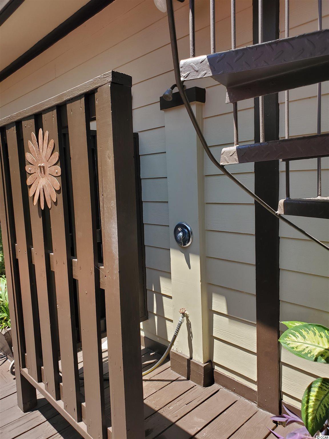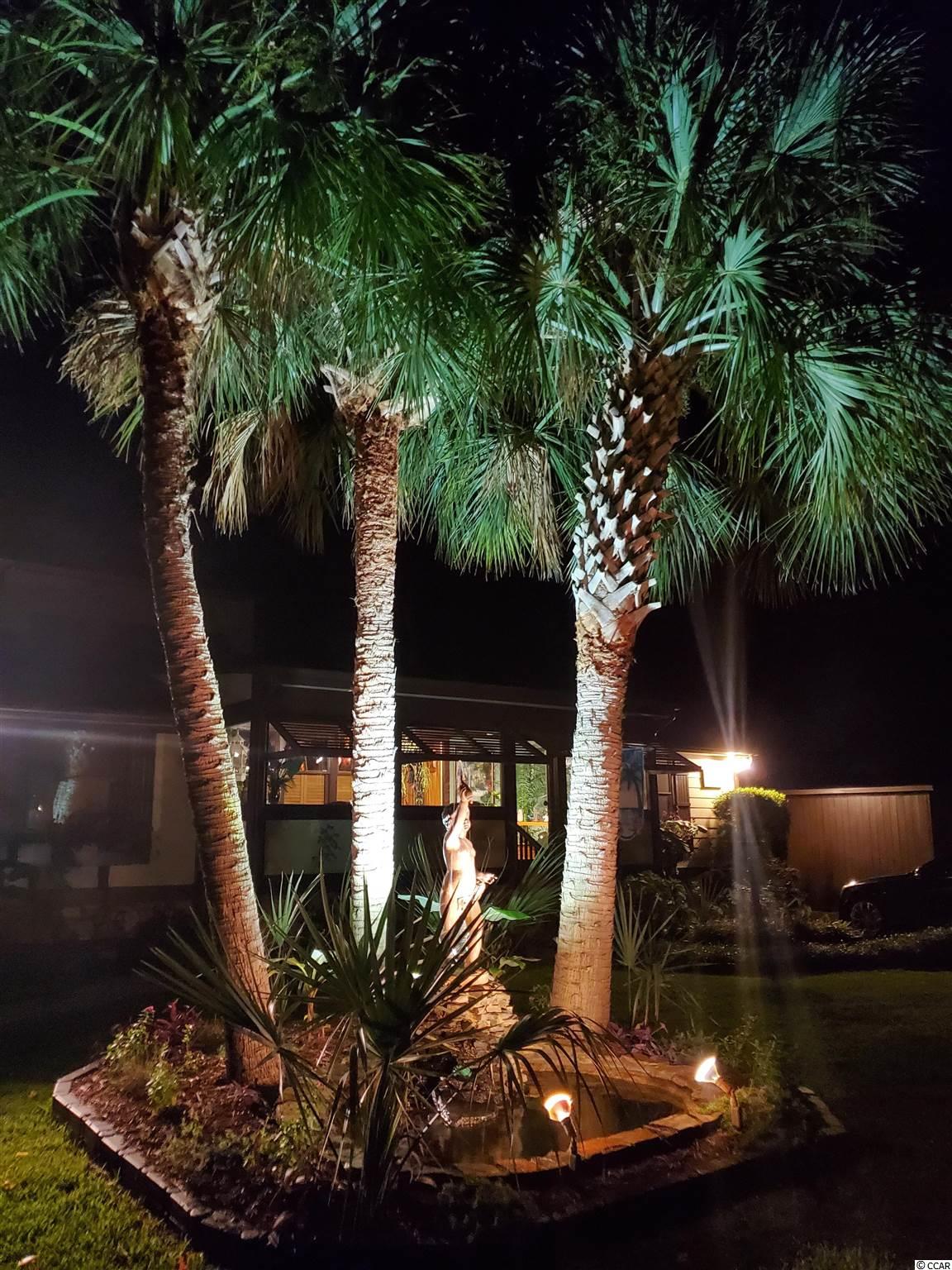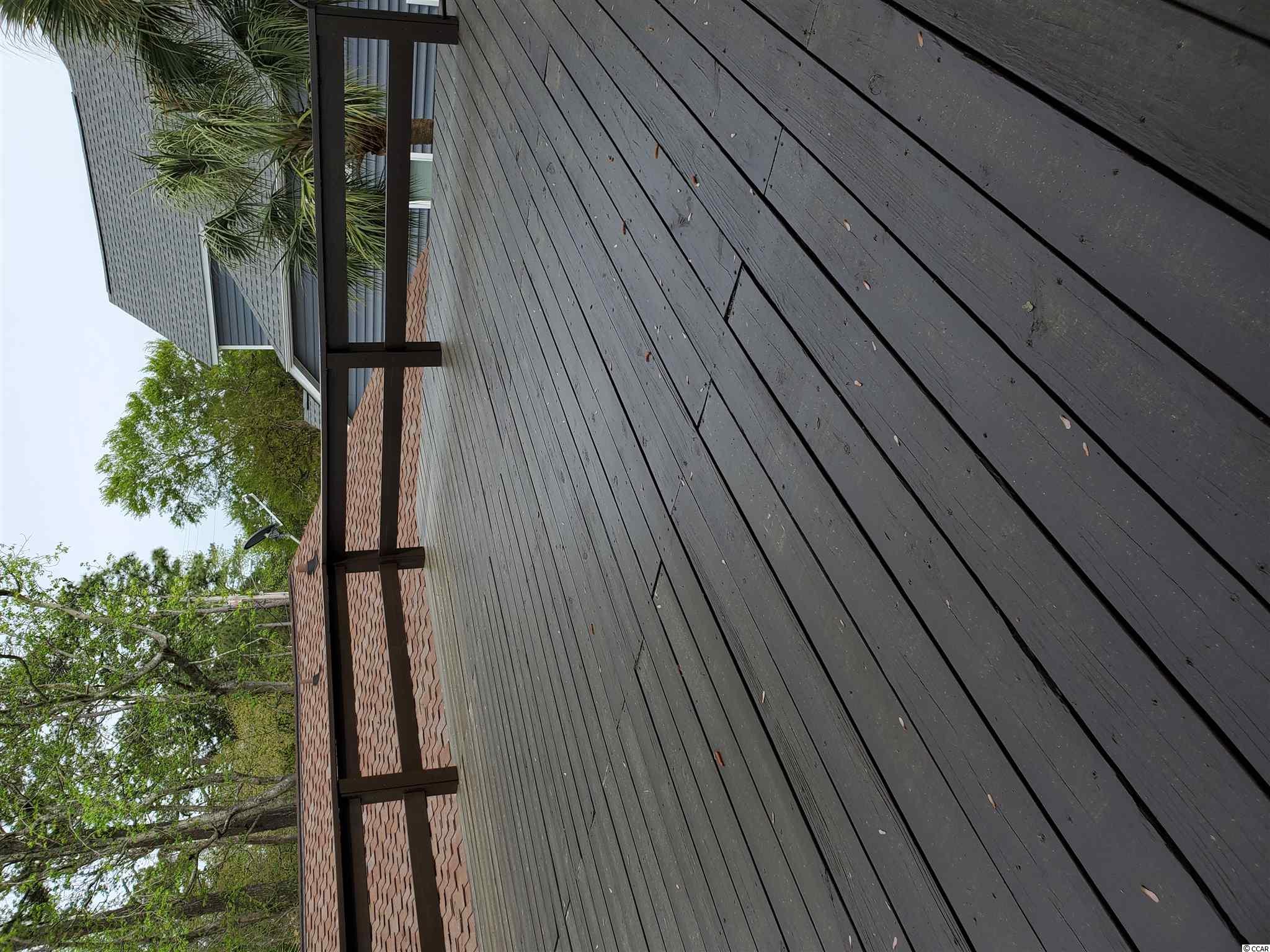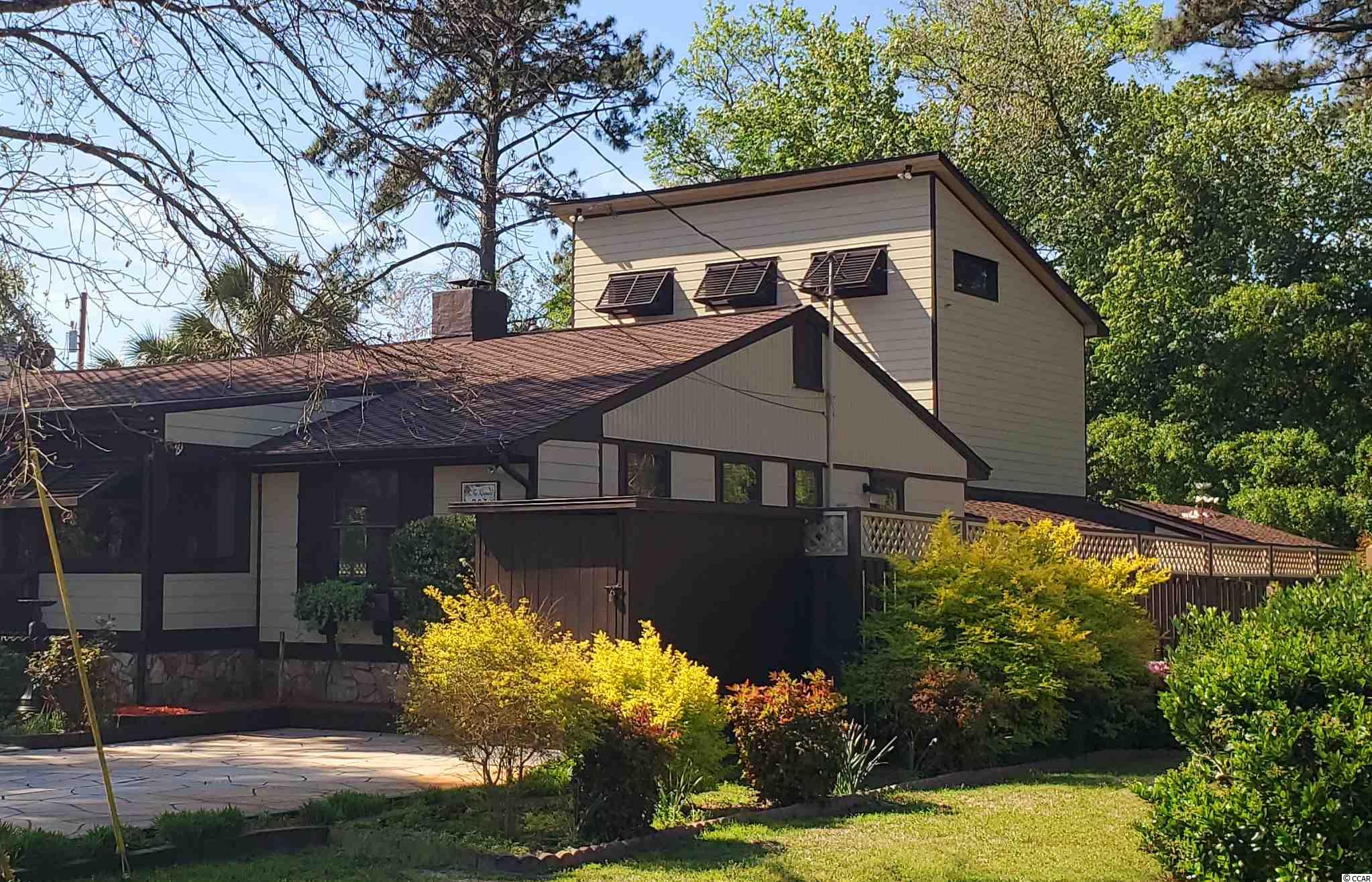 NO HOA and close to the beach. This home greets you with beautiful curb appeal with a fountain and mature palm trees. As you enter the home you walk-into a large tiled sunroom perfect for your green thumb. Then you enter the living room that has a beautiful brick wood burning insert fireplace, great looking oak floors and oak crown molding, custom built-in lighted shelving, and ceiling fan/light. The dining room has an awesome looking custom wood crafted box ceiling, a 8 foot sliding door that walks out to the huge 900 sq. ft. deck for entertaining. This split level deck has plenty of built in seating, beautiful mature palms that light up at night, plus an overhead trellis for shade, gas grill, private outdoor cold and hot shower and a built in sparkling 8 person electric hot tub, along with a long plant box complete with irrigation. This deck has a spiral staircase that takes you to another 520 sq. ft. sun deck that is also accessible from the master bedroom located on the second floor. The kitchen has marble floors with granite countertops, a very stylish backsplash, wet bar, built in seating area and plenty of custom solid oak cabinets for storage, trash compactor, black cast iron triple sink, custom skylight which opens to let fresh air in, and a built-in laundry with a duet washer and dryer with oak doors to conceal it. There is another custom room that has tongue and groove cedar ceiling and walls that can be used as a large den or just another large seating area, also features a 8 ft. sliding glass door that opens up to the deck. As you walk down a few steps you have a great entertainment room complete with a custom built in bar, with custom built in shelving, an 8 foot sliding door that opens up to the fenced in backyard. All the bedrooms are oversized with ceiling fan/lights and adjoining bathrooms. This home also features a workroom with tub sink, outdoor storage and a built in storage for your golf cart for the short ride to the beach. It also features an all fenced in yard that is 7 foot custom built fence with lattice trim for privacy and an irrigation system. The yard has decorative lighting at night along with spot lights on every corner of the house. This home is centrally located to all roads, hospital, post office, shopping and of course the beach access. This is definitely a one of a kind home that is a must see. Brand new 5 ton Train HVAC was installed 6-17-21.