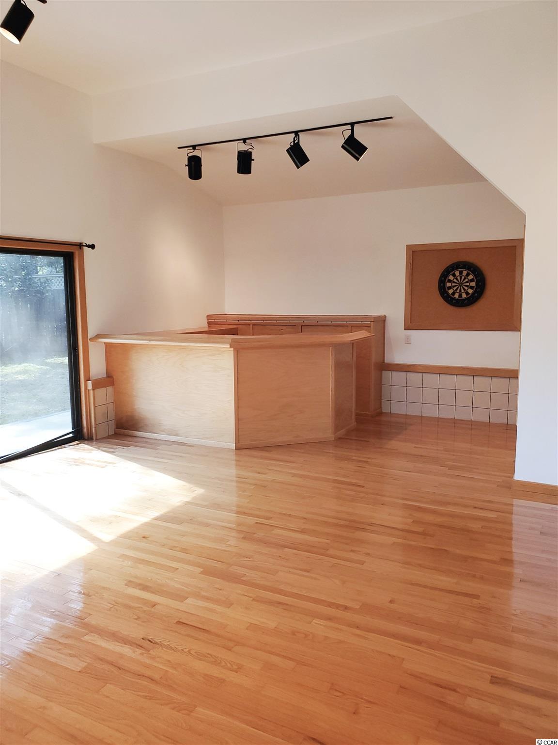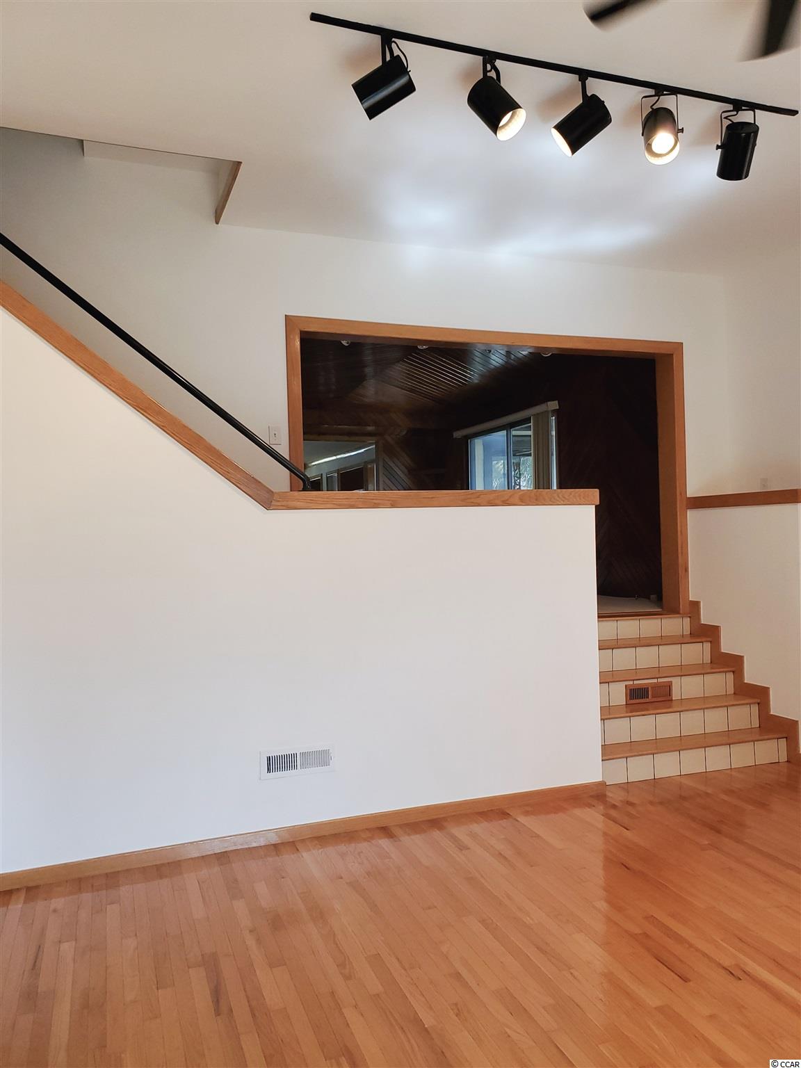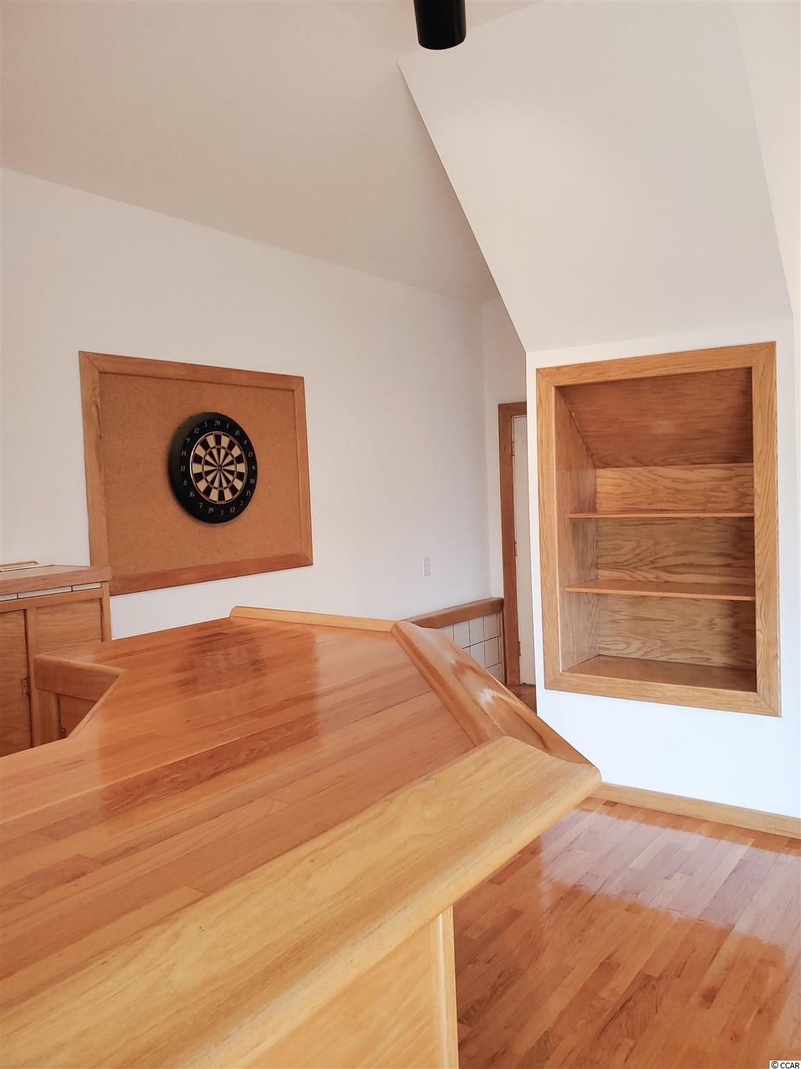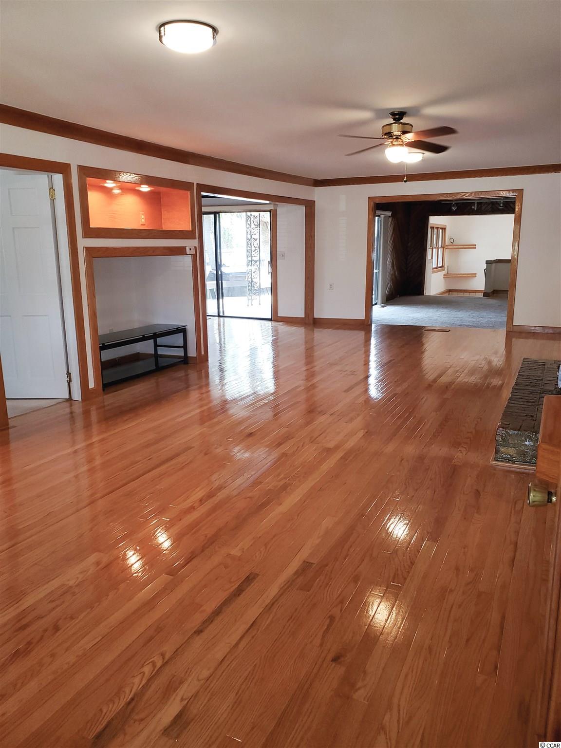 NO HOA and close to the beach. This home greets you with beautiful curb appeal with a fountain and mature palm trees. As you enter the home you walk-into a large tiled sunroom perfect for your green thumb. Then you enter the living room that has a beautiful brick wood burning insert fireplace, great looking oak floors and oak crown molding, custom built-in lighted shelving, and ceiling fan/light. The dining room has an awesome looking custom wood crafted box ceiling, a 8 foot sliding door that walks out to the huge 900 sq. ft. deck for entertaining. This split level deck has plenty of built in seating, beautiful mature palms that light up at night, plus an overhead trellis for shade, gas grill, private outdoor cold and hot shower and a built in sparkling 8 person electric hot tub, along with a long plant box complete with irrigation. This deck has a spiral staircase that takes you to another 520 sq. ft. sun deck that is also accessible from the master bedroom located on the second floor. The kitchen has marble floors with granite countertops, a very stylish backsplash, wet bar, built in seating area and plenty of custom solid oak cabinets for storage, trash compactor, black cast iron triple sink, custom skylight which opens to let fresh air in, and a built-in laundry with a duet washer and dryer with oak doors to conceal it. There is another custom room that has tongue and groove cedar ceiling and walls that can be used as a large den or just another large seating area, also features a 8 ft. sliding glass door that opens up to the deck. As you walk down a few steps you have a great entertainment room complete with a custom built in bar, with custom built in shelving, an 8 foot sliding door that opens up to the fenced in backyard. All the bedrooms are oversized with ceiling fan/lights and adjoining bathrooms. This home also features a workroom with tub sink, outdoor storage and a built in storage for your golf cart for the short ride to the beach. It also features an all fenced in yard that is 7 foot custom built fence with lattice trim for privacy and an irrigation system. The yard has decorative lighting at night along with spot lights on every corner of the house. This home is centrally located to all roads, hospital, post office, shopping and of course the beach access. This is definitely a one of a kind home that is a must see. Brand new 5 ton Train HVAC was installed 6-17-21.