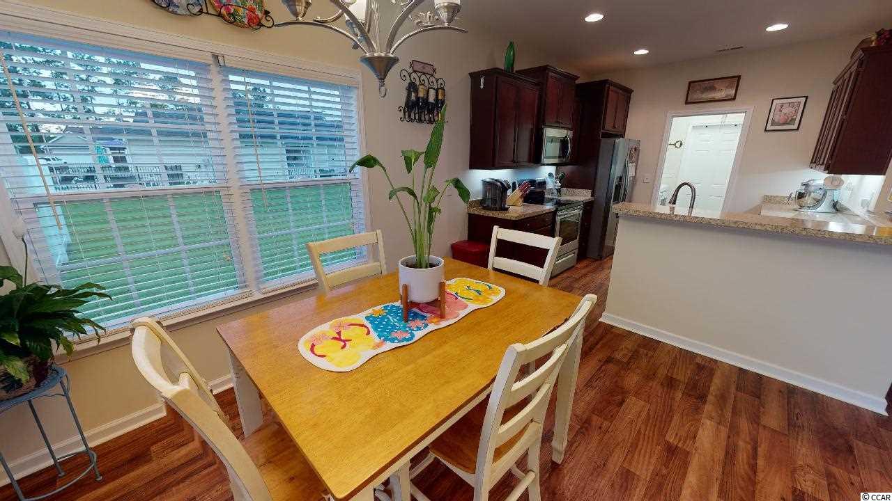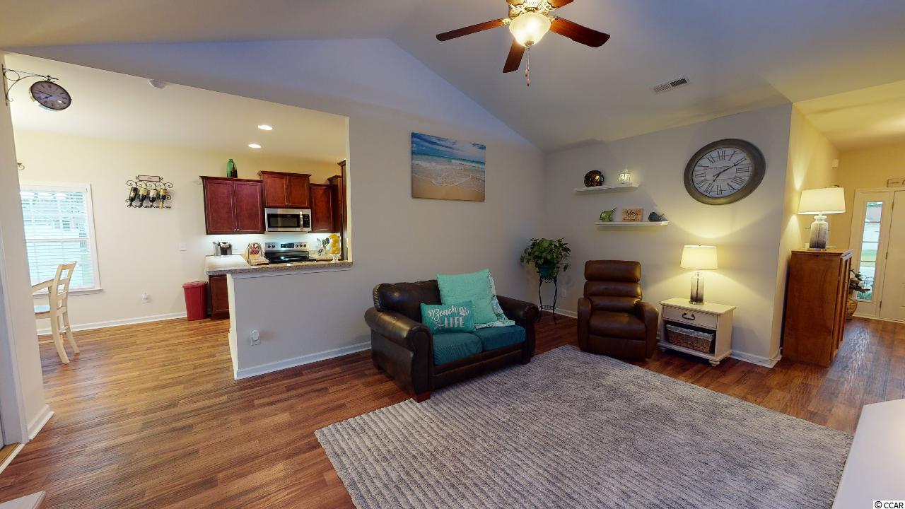Introducing this vibrant and spacious 3 bedroom 2 bath home located on a .38 acre lot in the inviting Tanglewood community. This captivating home comes with wood looking LVT flooring, smooth flat vaulted ceilings, a delightful plant shelf, formal dining area, ceiling fans, and showcases living room access to the covered relaxing back patio. The kitchen offers a breakfast bar, stainless steel appliances, smooth flat top range, built-in microwave, dishwasher, cabinets with crown moulding, ample counter space, recessed lighting, and easy access from the garage. The master bedroom features tray ceiling with fan, walk-in closet, and private access to the master bath that host a vanity with a single sink, comfort station, and a step-in shower. This stylish home is completed with two additional bedrooms, full guest bath, laundry room, fenced back yard, a charming front porch, and a two car attached garage. This home affords you easy access to the beach and golfing along with all of the other activities and happenings in Myrtle Beach & Conway including fun eateries, award winning off-Broadway shows, public fishing piers, Conways historic riverwalk, and intriguing shopping adventures along the Grand Strand. Conveniently located to your everyday needs, including grocery stores, banks, post offices, medical centers, doctors offices, and pharmacies. Check out our state of the art 3-D Virtual Tour.