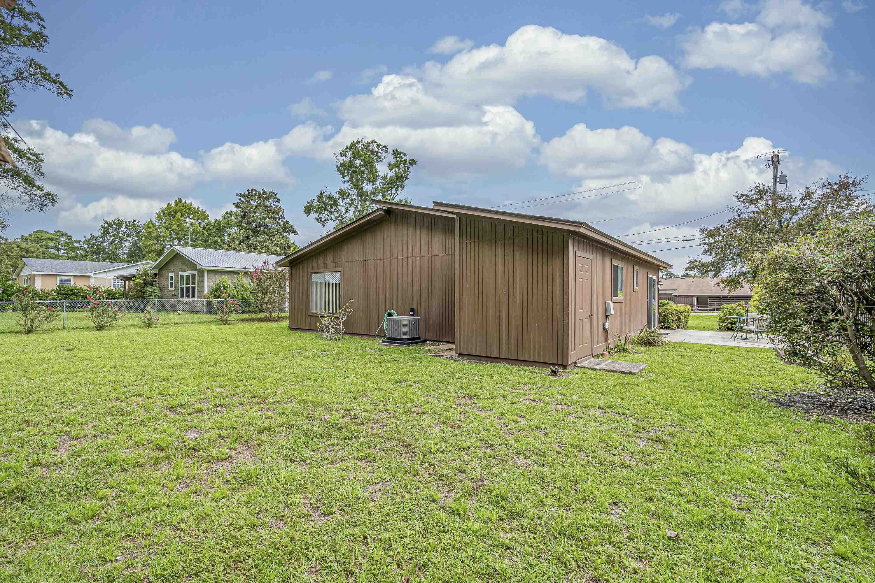 Well maintained (one family owner)2 bed 2 bath home in a wonderful neighborhood, and location with NO HOA! All on single level. Located in the city limits between bypass 17 and bus 17 on 63rd Ave N. It is an easy walk or gofl cart to the beach. This home has a one car garage with pulled down attic stairs,attached storage shed, and wood burning fireplace. Washer/Dryer convey. New roof installed 6/2022. Owner has a complete list of maintenance and updates on the home. There is patio off the dining room area, galley kitchen and a deep, large, back yard.