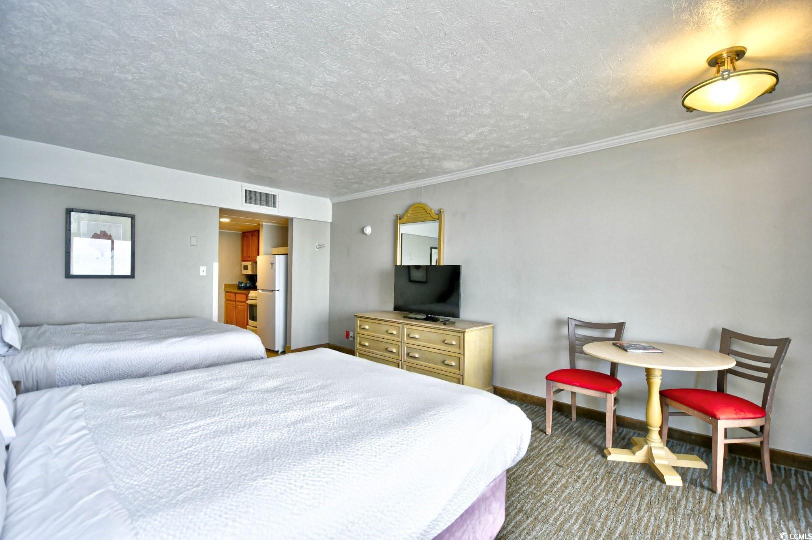 Indulge in coastal living with this spectacular oceanfront efficiency unit nestled within the prestigious Ocean Reef Resort, right in the vibrant heart of Myrtle Beach. Perfectly poised to offer you an unparalleled beachside retreat, this condo comes fully furnished and boasts a complete kitchen, ensuring convenience and comfort at every turn. Step into a generously sized living area adorned with two plush beds, complemented by a sliding glass door that frames mesmerizing ocean views. Discover a world of leisure at Ocean Reef Resort, where every amenity is crafted to elevate your experience. Dive into relaxation with indoor and outdoor pools, drift along the lazy river, savor delectable treats at the onsite restaurant and bar, stock up on essentials at the convenient shop, indulge in playful moments at the game room, and stay active at the well-appointed exercise room. Don't miss out on this exceptional opportunity for your own vacation getaway place or investment property.