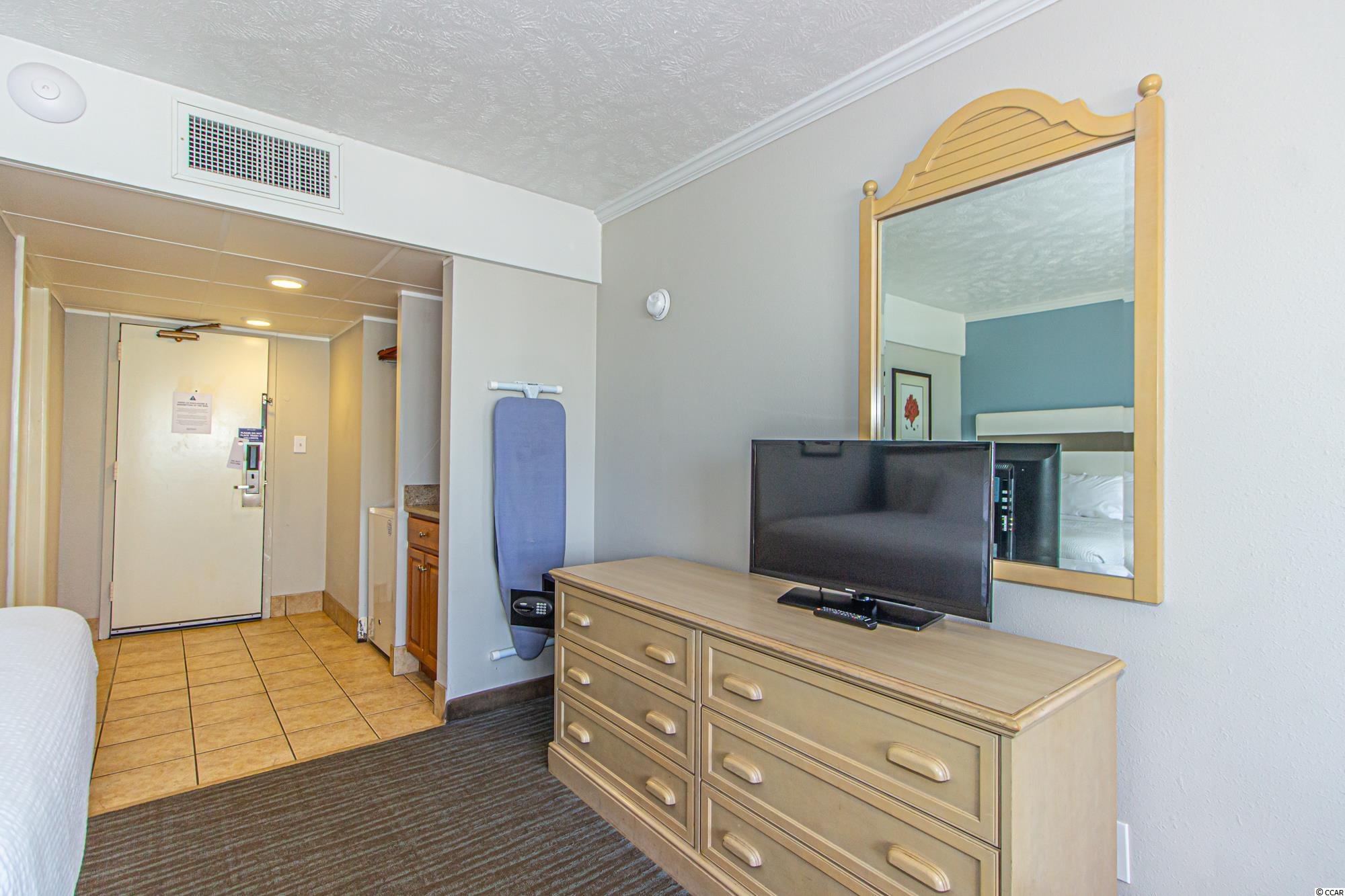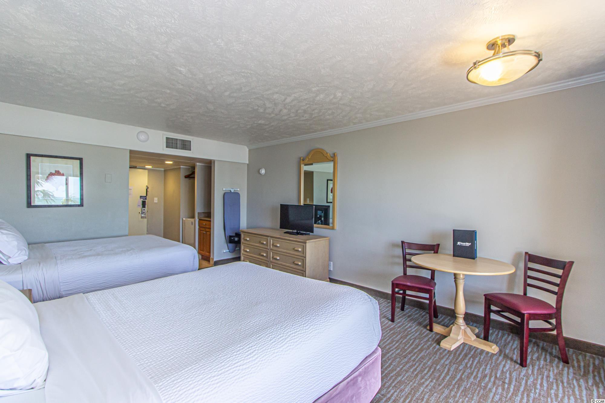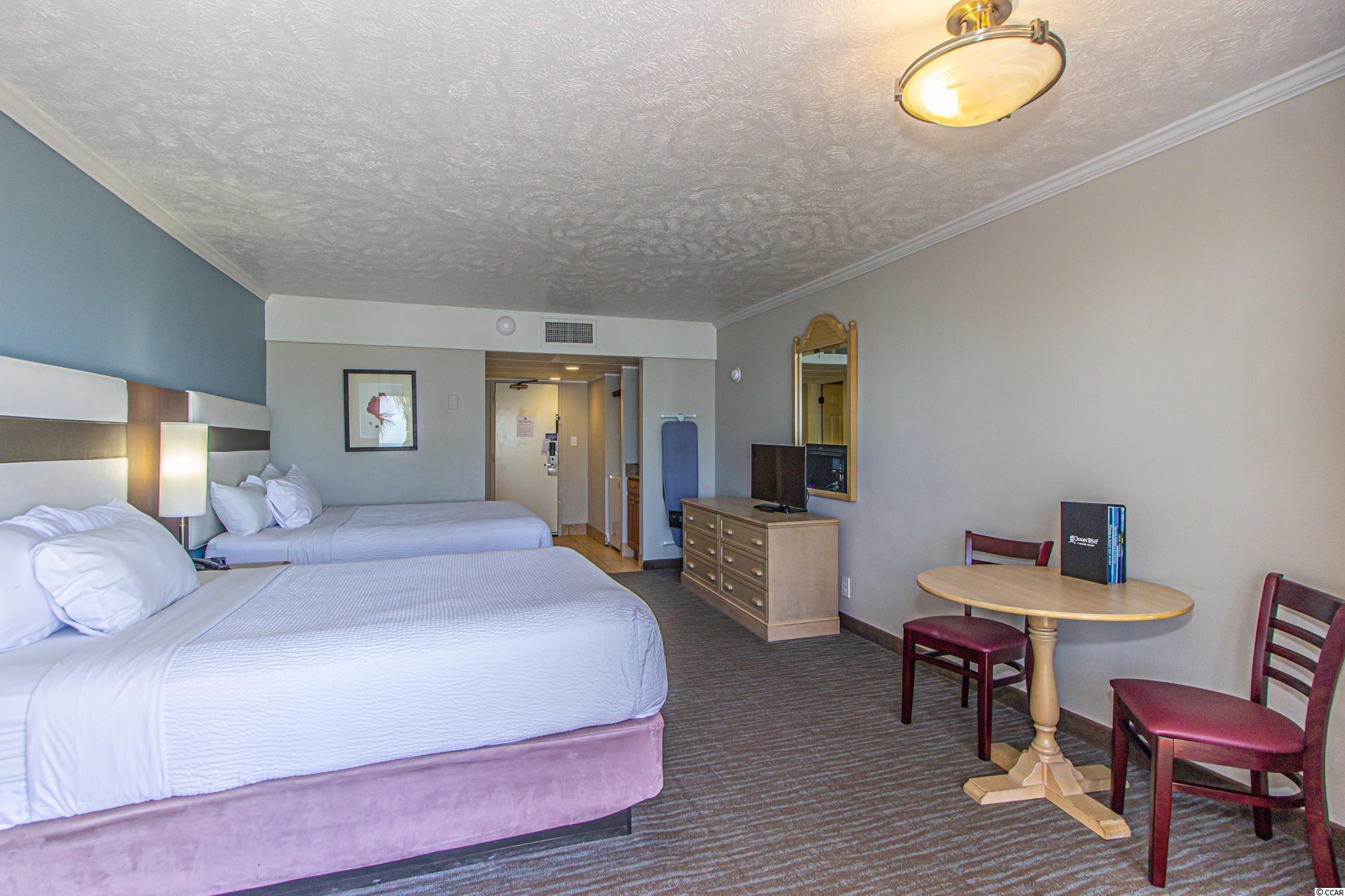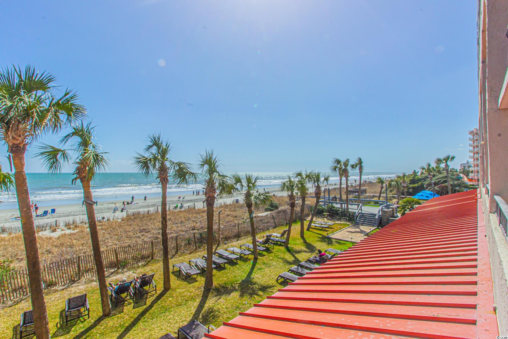 Outstanding direct oceanfront views from this studio in the popular Ocean Reef Resort. Great placement on the 2nd floor with enclosed corridors and super convenient location to be able to use the steps to the beach, pools etc. The Ocean Reef is located on 71st Ave N, on the northern end of Myrtle Beach, minutes from everything the area has to offer, but not in the middle of downtown craziness. Resort amenities include a host of indoor and outdoor pools, lazy river, adult sized water slides, fitness center, conference rooms, oceanfront restaurant and beach bar, all onsite! The HOA/condo fees cover just about everything, insurance(for the building and condo interiors), electric, water, cable, internet, parking, upkeep with the buildings, grounds, pools. Check out the rental income totals, this can be a great money maker for you.