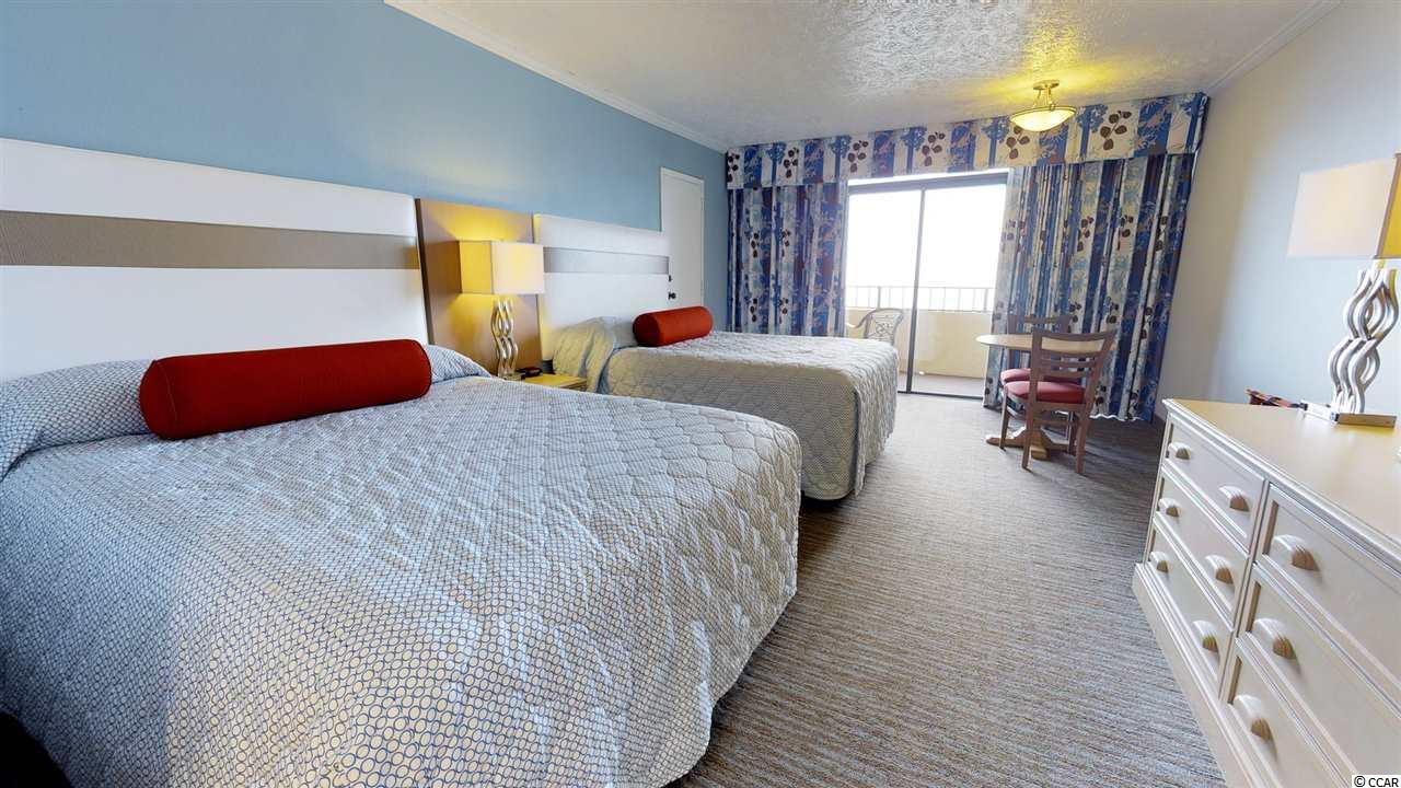 Incredible oceanfront efficiency located in Ocean Reef Resort! Enjoy amazing direct oceanfront views and breathtaking sunsets from your private balcony! Kitchenette with granite countertop, full-size refrigerator and microwave. Granite countertop and tile flooring in bathroom. Ocean Reef Resort offers an oceanfront pool deck, hot tubs, a tiki bar a beautiful oceanfront lawn. There is a covered pool deck featuring a covered water play park for kids! Kiddie water park with giant tiki men and palm trees, a giant tumbling water bucket, a sea serpent waterfall and mushroom waterfalls, surrounded by a lazy river with a waterfall. There is also a covered swimming pool at this Myrtle Beach resort and a sauna for your utmost relaxation. Amenities include Shipwreck waterpark, with giant playful tiki-men standing guard, a large oceanfront pool deck, kiddie water activity areas, a lazy river and hot tubs. In cooler weather, laze river is even converted to a glass-enclosed getaway! Food choices are as abundant as water-play, with a pool bar, Cafe du Port, Banana Boat Lounge and the Breakfast Buffet!