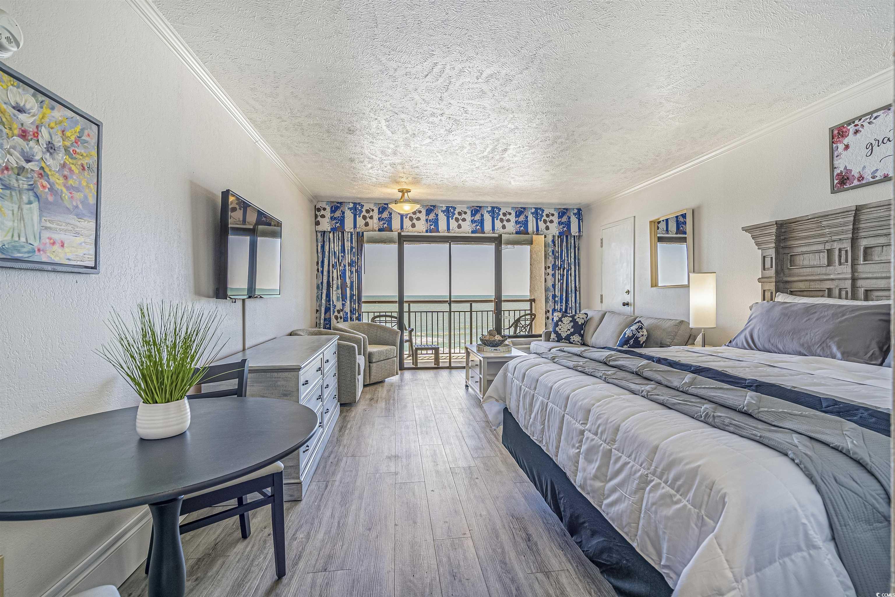 Front-Row Seat to Breathtaking Beach Views! Wake up to the sights and sounds of the ocean from the 5th-floor balcony of this beautifully renovated beachfront gem! Located on Myrtle Beachs highly sought-after Golden Mile, this turn-key unit offers stunning views, refreshing ocean breezes, and direct beach accessall from the comfort of your private retreat. Inside, you'll find a luxurious king-size bed, LVP flooring, and a residential-style sleeper sofa, offering both comfort and style. Designed with relaxation in mind, the space includes swivel chairs, a dinette, and a large flat-screen TV, making it perfect for extended stays or vacation rentals. Guests consistently give this unit glowing reviews! The fully equipped kitchen features full-size appliances: refrigerator, microwave, glass-top stove with oven, tiled backsplash, and plenty of cabinet spaceideal for everything from quick snacks to home-cooked meals. Located in a family-friendly resort, enjoy top-notch amenities including: Outdoor & indoor pools, Hot tubs & lazy river, Poolside bar, On-site breakfast buffet restaurant. No car neededwalk or bike to popular restaurants, shops, and attractions. Close to Barefoot Landing, theaters, outlet shopping, and more. The pristine beaches of the Golden Mile offer a peaceful, upscale vibe loved by locals and vacationers alike. This unit is sparkling clean and move-in ready, ideal for a discerning owner or investor. All inclusive HOA! Whether you're looking for a vacation home, rental income, or boththis is the one! Call today to schedule your private or video tour. Dont miss this opportunity to own a piece of paradise!