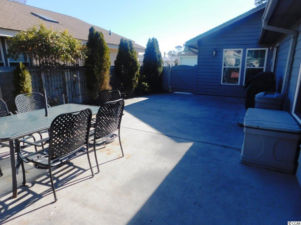 Charm doesn't begin to describe and tell the story of this adorable 3BR/2BA home located in desirable Ocean Oaks community on the oceanside of Highway 17. Home is fully furnished and provides a tasteful Coastal atmosphere throughout with an open split bedroom plan with lots of windows providing a bright, light welcoming feeling. If you have always dreamed of a home near the coast, this is the one. You'll want to call this one yours. Walk into a tiled entry that stretches throughout the kitchen, which is open to a huge dining room, a spectacular open family room sporting cathedral ceilings and lovely hardwood luxury floors. Kitchen is tiled, has smooth top range, dishwasher, side by side refrigerator, breakfast bar, tons of cabinets and counter space and yes there's a large pantry, broom closet and wet bar perfectly situated and open between the kitchen, dining room, and living area. Dining room has beautiful hardwood laminate floors and double windows for such an awesome inviting feeling. Living room is large and boasts cathedral ceilings, window and sliders that open to a huge fenced in, concrete patio perfect for expanding your outside living and entertaining area, complete with a large table and chairs, quaint swing area and an outside storage attached. Master bedroom is large with plenty of room for a great sitting area. Master features cathedral ceiling and a tiled master bath with 2 large vanity/sinks, tiled floors and walk in closet and tub/shower. There are 2 other large bedrooms, one featuring a large walk-in closet and sliders to the outside patio. The 3rd bedroom has a walk-in closet. Between the bedrooms find a large linen closet, full bath boasting tile floors, large vanity, and tub/shower. The laundry room is conveniently located and comes with washer and dryer, plus shelves. The HVAC was installed in 2018. This home and yard provide a haven at the beach for you, your family, and guests. Current owners have concrete double driveway which will allow 4+ cars and a concrete slab on left side of home to park your golf cart behind a lovely portion of this fenced in yard. A great attached storage room is on the front and also one on back of home to store all your beach chairs, umbrellas, etc. This home is spectacular and has it all and is nestled at the end of a cul-de-sac affording owners privacy. Low, Low HOA fees. Park your car and golf cart to ocean, shopping, restaurants- Great location.