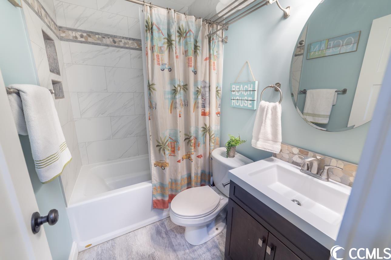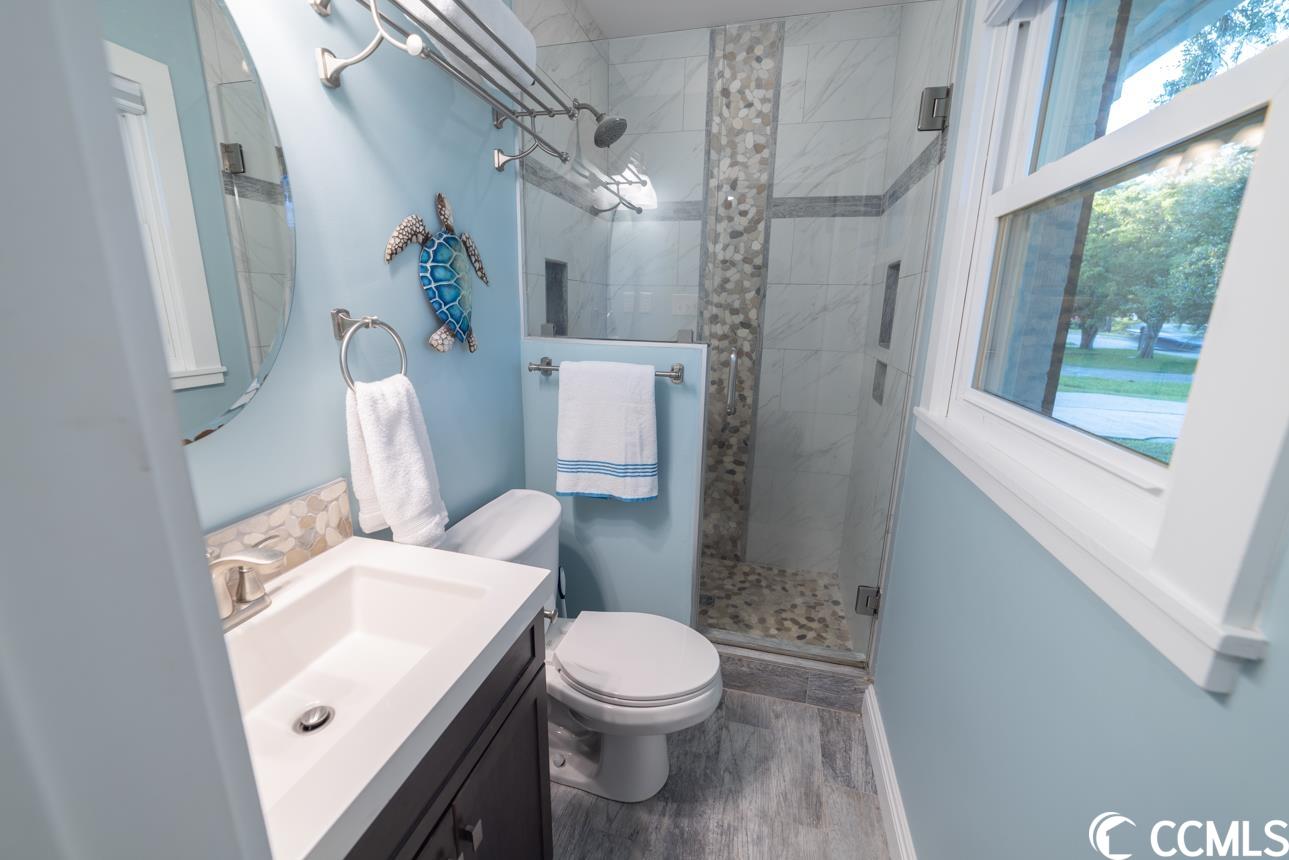 This is it! Just blocks from the beach, this all-brick ranch home on the north end of Myrtle Beach at this price point is hard to find. With no HOA, you are free to park your boat, RV or work vehicle at home. This property has been totally remodeled in the last several years with a new roof, HVAC, gas tankless hot water heater, Pex plumbing, encapsulated crawl space, remodeled kitchen and bathrooms, gutters, converted carport to a 1-car garage, large backyard deck, new windows and doors, freshly painted inside and out, and more! This home has so much to offer. It's adorned with a beautiful oak tree to provide much needed shade. The large back yard with expansive deck and privacy fence is perfect for entertaining. All kitchen appliances, washer and dryer and window treatments convey. You don't want to miss this opportunity - it will go fast.