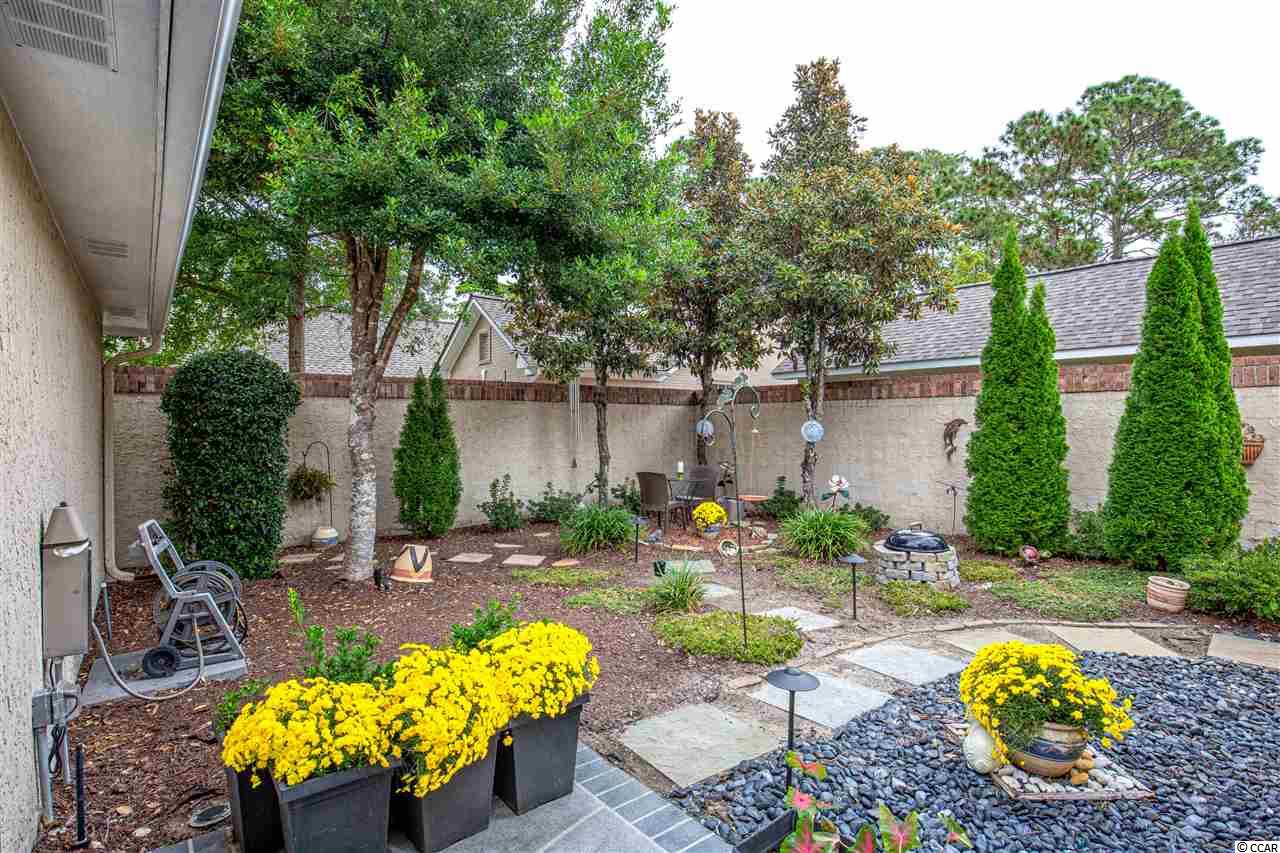 Welcome to coastal living in your very own garden home. It is less than a mile walk or golf cart ride to the beach, home is not in a flood zone and located in lovely Providence Park community. The home has an oversized two car garage, large enough for your vehicle, a golf cart, and extra storage. This three bedroom, two bath home comes partially furnished. The open concept living room/dining room combination has a spacious entry way with a cathedral window which allows the light to fill the space. Wood floors and a gas fireplace complete this inviting space. The large eat in kitchen has plenty of cabinets for storage, a pantry, granite counter tops and a kitchen island. Kitchen opens into the Carolina room which steps into your private walled backyard and patio, perfect for entertaining and family barbecues. Providence Park is a short walk or golf cart ride to restaurants, entertainment, shopping, hospitals and much more! This home has been lovingly cared for by the family of the original owner with numerous upgrades including 3M film on all windows for solar and storm protection. Call today to see this special home! Owner very motivated!
