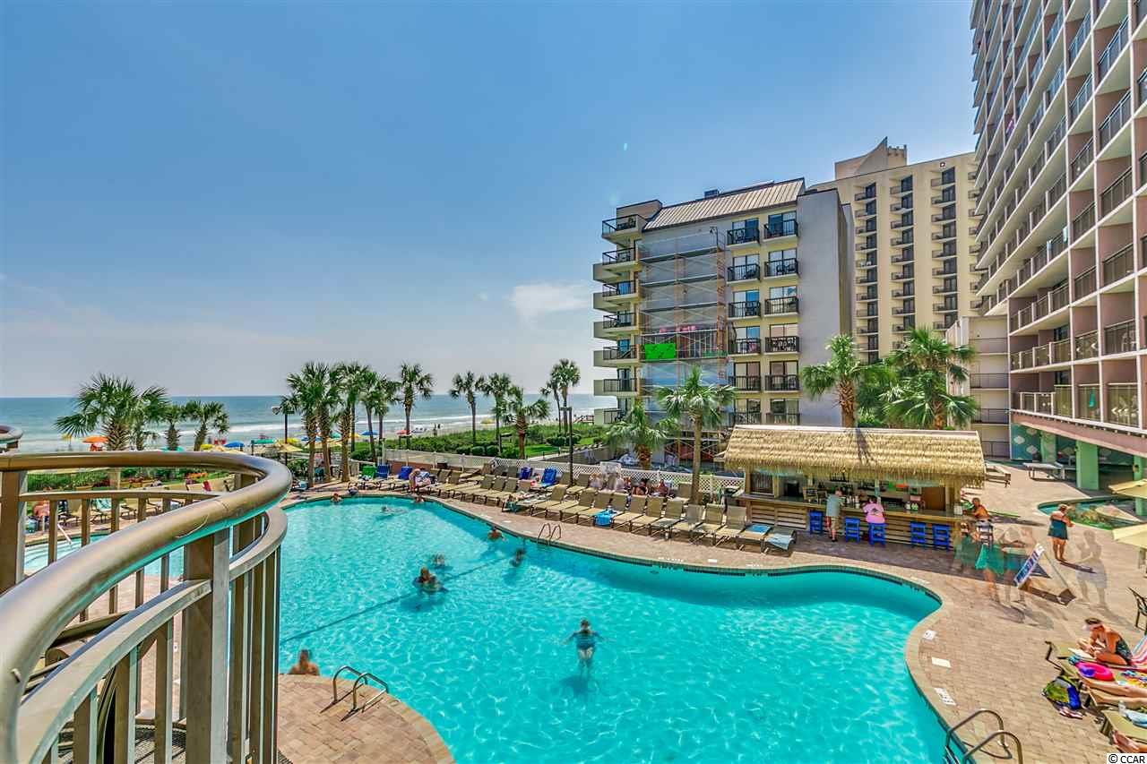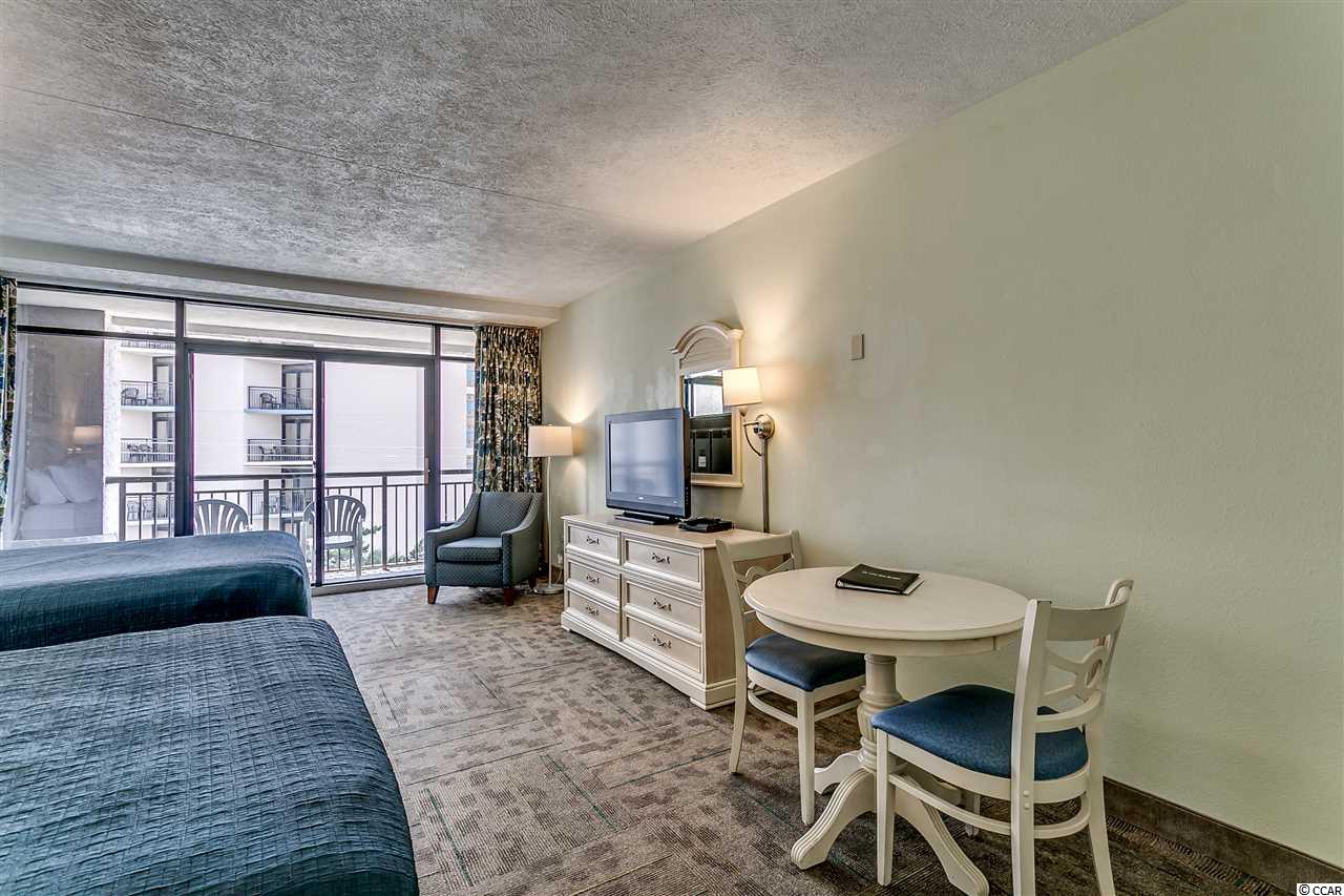 This roomy top floor efficiency at Long Bay Resort offers a nice view of the ocean from the spacious balcony and a super track record as a vacation rental producer. Granite counter-tops in kitchen and bath. New refrigerator, carpet, bedding and drapes in past two years. New AC/heat unit January 2019. Long Bay Resort offers numerous amenities. The oceanfront pool area includes a large outdoor pool and surrounding pool deck as well as a big outdoor whirlpool. The indoor pool area, which is open-air in warm weather and enclosed in the colder months, features a 250 FT lazy river, a 50-FT swimming pool, three whirlpool spas, and a large children's pool with ""mushroom"" showers. There's also a poolside sauna. Beside the building is a ""Silly Submarine"" children's water park. Other resort features include a gift shop, fitness center arcade and meeting facilities. There's an onsite parking garage and you can park on the same level as this condo - You don't have to cross the street or even use the elevator! There are multiple restaurants onsite as well - a Starbucks coffee house with an adjoining shaded garden area, the Oceanview Cafe overlooking the outdoor pool area and Martin's, a locals favorite, offering upscale dining on seafood, beef, veal or pasta. Long Bay Resort is located on the north end of the city of Myrtle Beach, about two miles north of the downtown hotel section. This popular area is home to many of the Grand Strands finest shops and restaurants. Broadway at the Beach, the Restaurant Row section, and Barefoot Landing are all within a 15 minute drive. The HOA fee includes water/sewer, unit electric, cable, and internet, as well as building insurance and HO6 contents insurance. All information is deemed correct, but it is the responsibility of the buyers and their agent to verify all information.