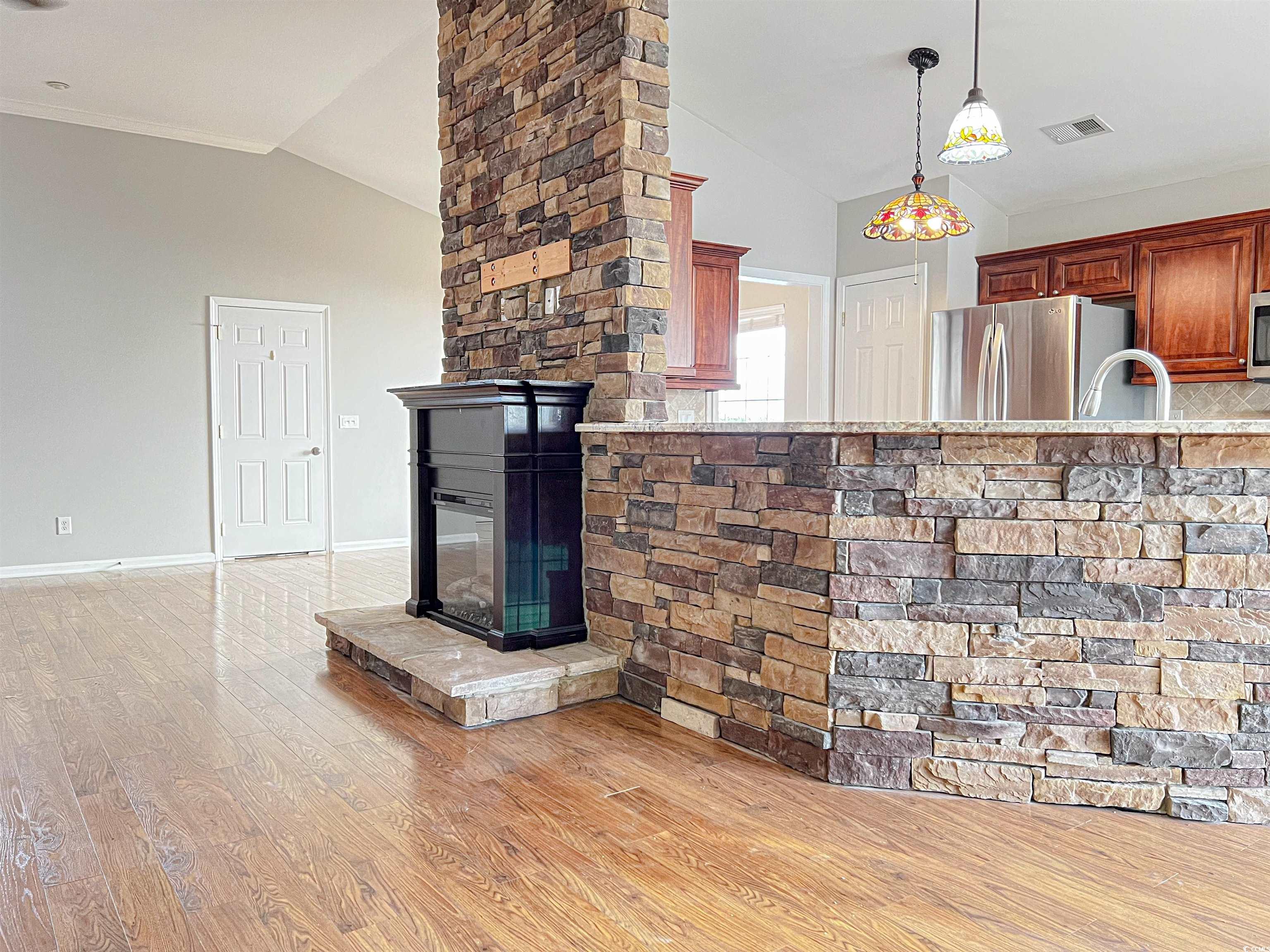 Interior Features: Fireplace, SplitBedrooms, BedroomOnMainLevel, BreakfastArea, StainlessSteelAppliances, SolidSurfaceCounters