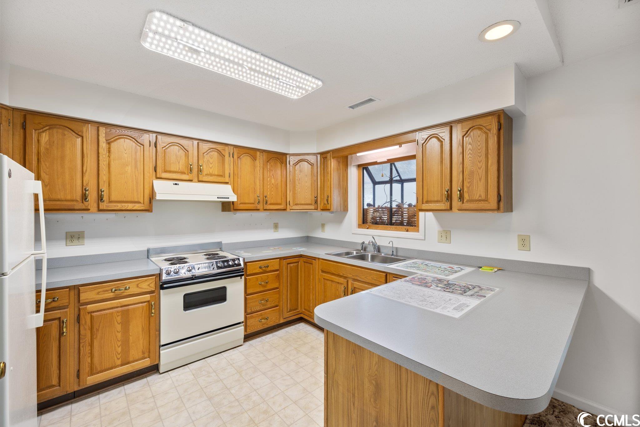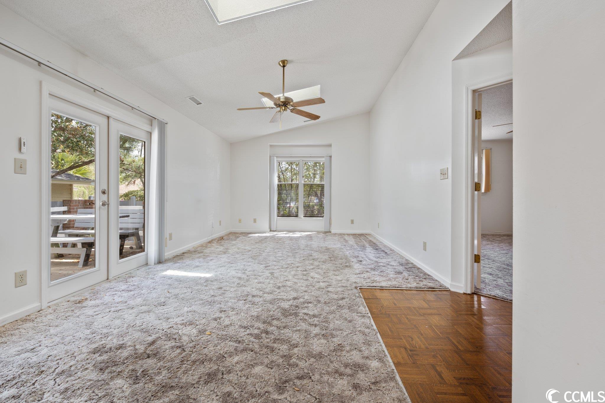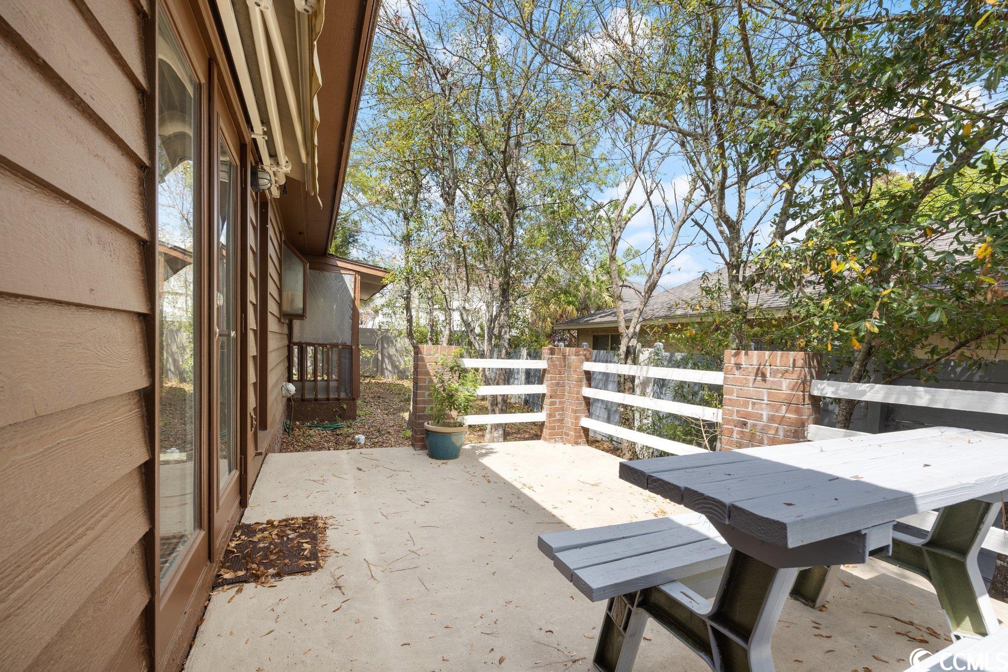 Discover the potential of this charming 2 bed, 2 bath single-story home in the heart of Ocean Oaks Plantation, North Myrtle Beach! Located just a golf cart ride away from the picturesque beaches and oceanfront attractions, this home is the perfect combination of location and affordability. Step inside and be greeted by an open floor plan with plenty of natural light shining through the skylights in the living room. The separate laundry room and walk-in closet in the master bedroom provide added convenience and storage space. Take advantage of the low HOA fees and enjoy a fresh start with the exterior of the home freshly painted and ready for you to move in. The backyard is a peaceful oasis, surrounded by mature trees and features a retractable awning and a back deck, the perfect place for a morning coffee or an evening beverage. Don't miss this opportunity to own a piece of paradise in one of the most sought-after communities in North Myrtle Beach. Priced to sell, this home is an incredible value and a must-see for anyone in the market for a beach home. Book your showing today!