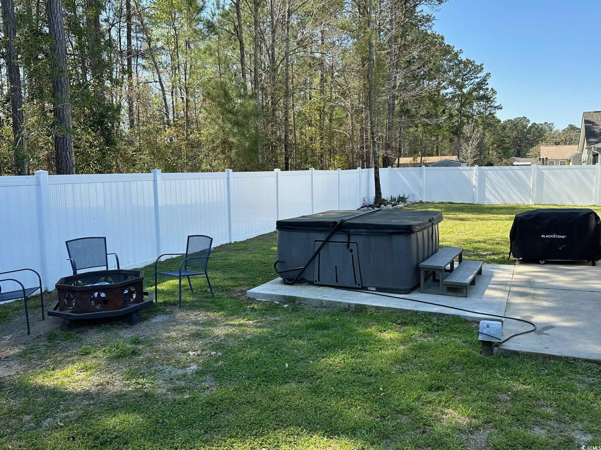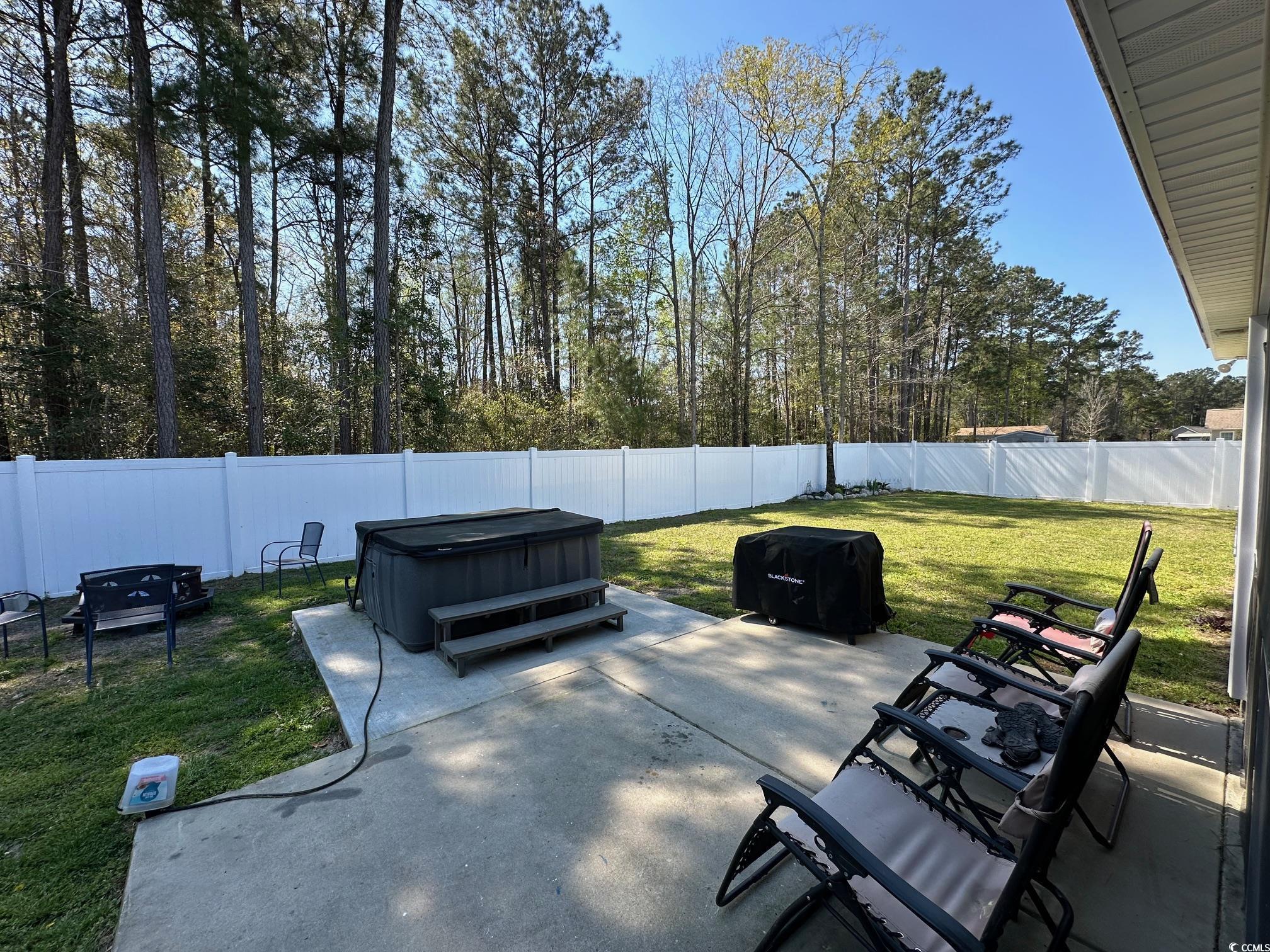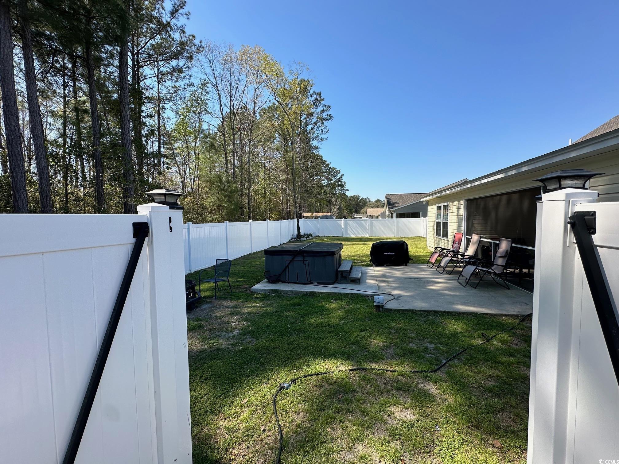 Gated community with Boat Ramp and access to the GREAT PEE DEE RIVER!!! Welcome home to Yauhanna Landing. Large lots allow RVs and Boat Storage in this well-maintained quiet rural neighborhood. This single story ranch-style home offers low maintenance LVP flooring throughout, vaulted ceilings in the family room and a tray ceiling in the primary bedroom. The split floor plan has the primary suite nestled on the rear of the home with the other two bedrooms on the front of the property, sharing a bath. A newer build (2017) this home has many updates and all appliances and TVs/TV Mounts convey with the property. Park your boat and/or RV on the extended driveway (hookups in place) and relax in the hot tub or enjoy a quiet evening on the screened porch. The fully fenced backyard offers