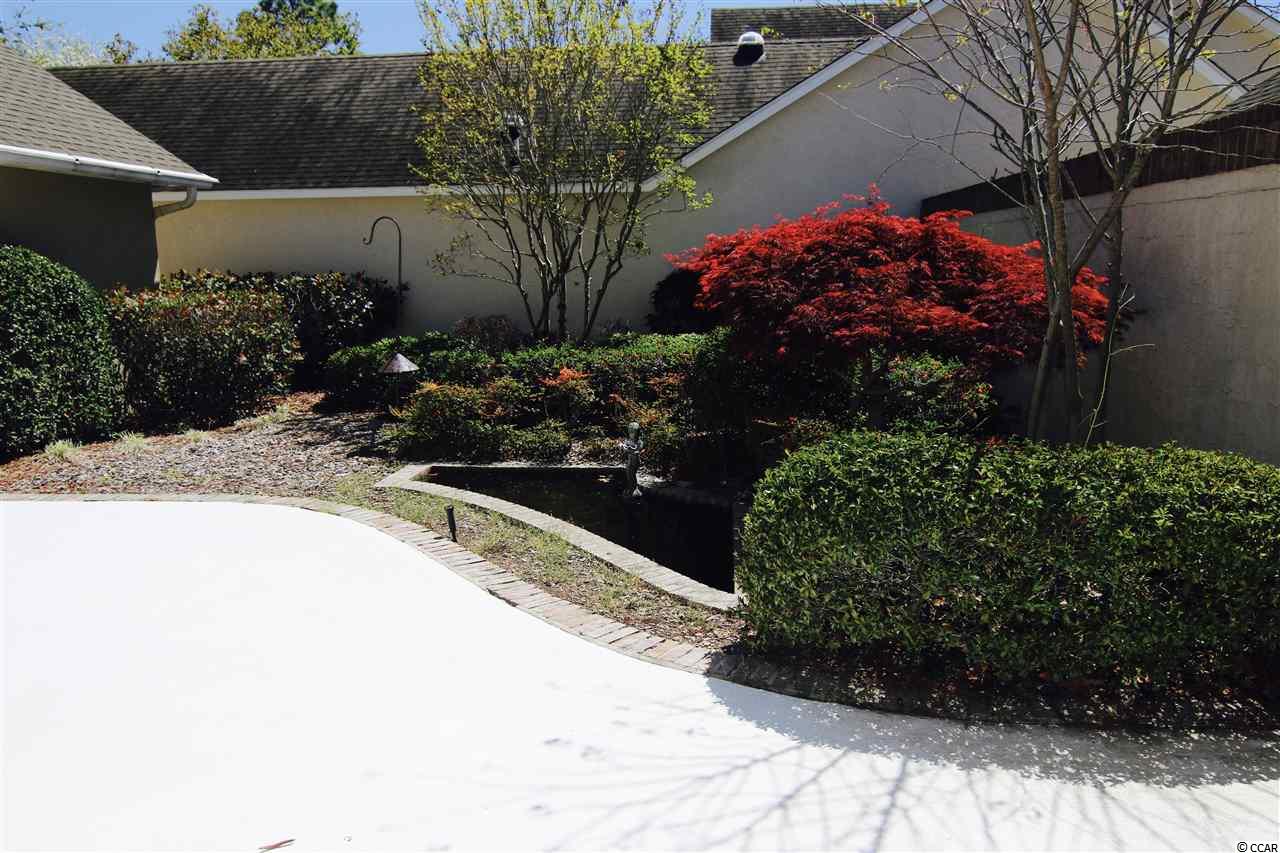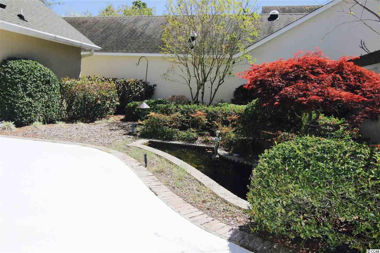 Well maintained home with an outstanding family room addition with fireplace. Wood floors throughout living, dining and bedrooms with tile in kitchen, family room and baths. Very neutral colors. Corian counters in eat-in kitchen that opens to family room. IT would be easy to open this home up even more than it already is! Spacious, airy and opening to a back yard with pond/fountain and large patio area that wraps from family room to bedroom. One of few plans in the neighborhood with a separate laundry room. Walk or golf cart to the beach, shopping and dining. Unbelievable location! Very close to the hospital and medical facilities as well.
