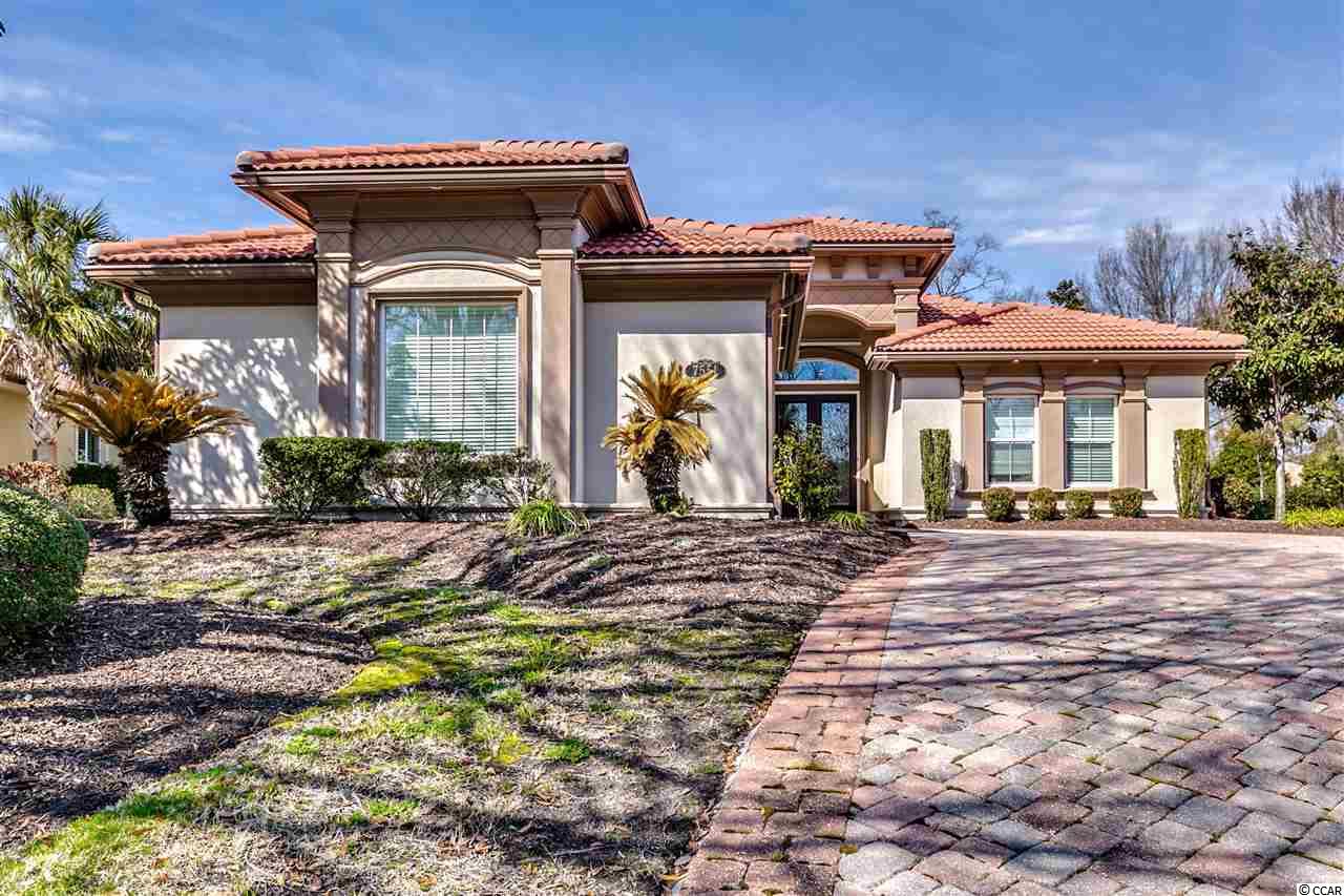 Beautiful Mediterranean-style Villari floor plan in Siena Park - Grande Dunes. Shows like a model - 18"" diagonal tile, granite counters and back splash, cast stone fireplace with custom built-ins, brick paver driveway. Private backyard oasis featuring a stunning beach entry pool with hot sub and privacy stucco wall and lush landscaping. Grande Dunes Ocean Club membership included - Ocean Club is directly on the ocean front and just minutes from the home. Home owners can enjoy the fine dining restaurant and relax by the resort style pool.