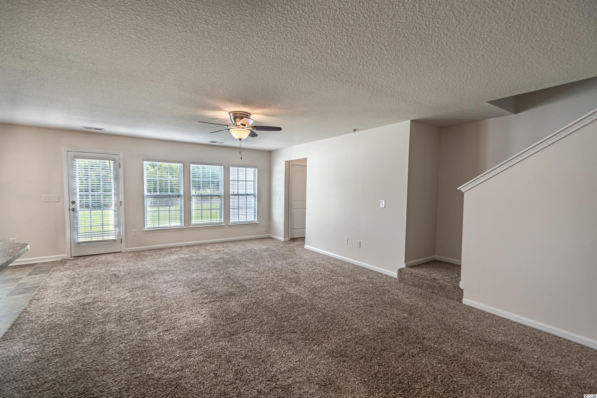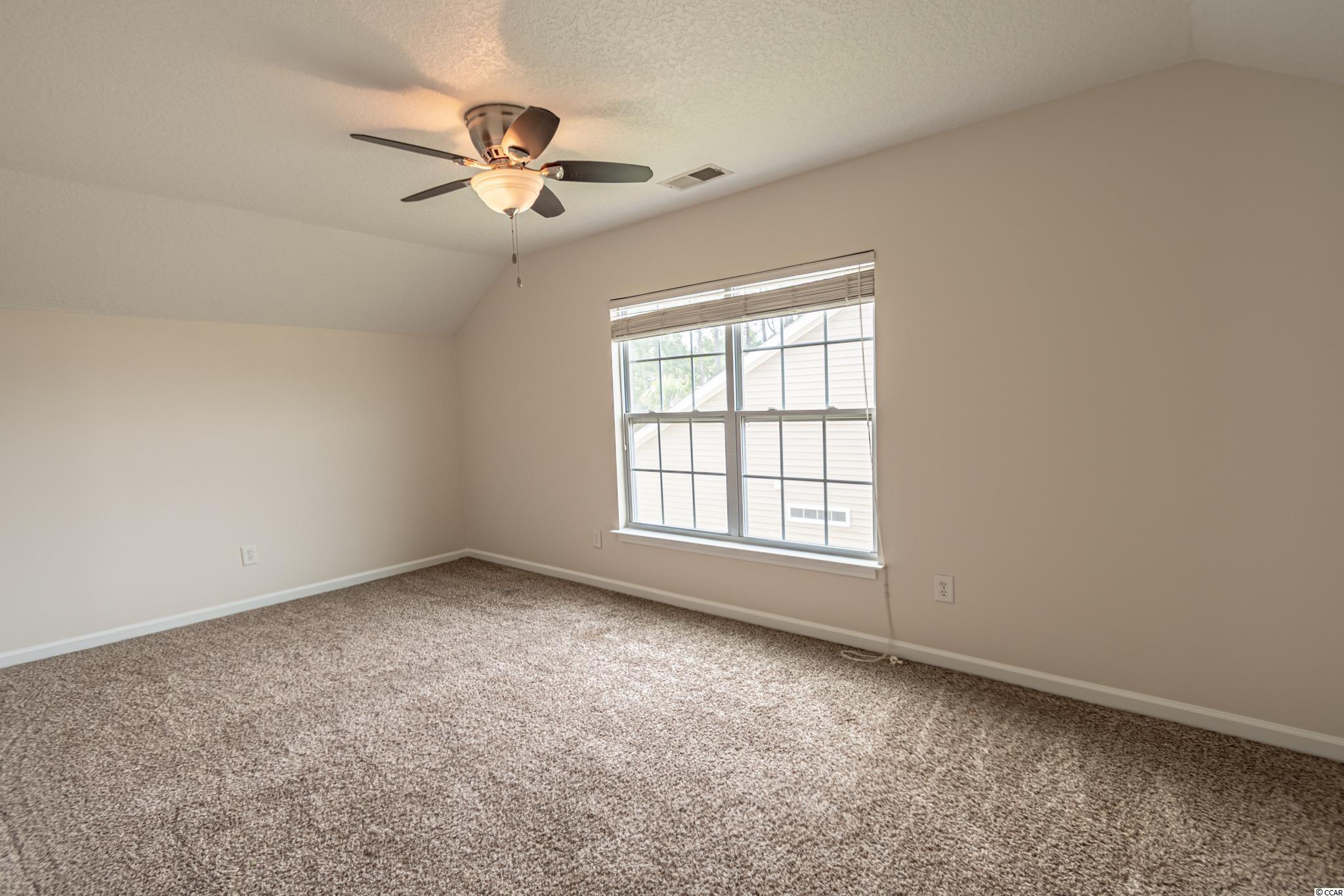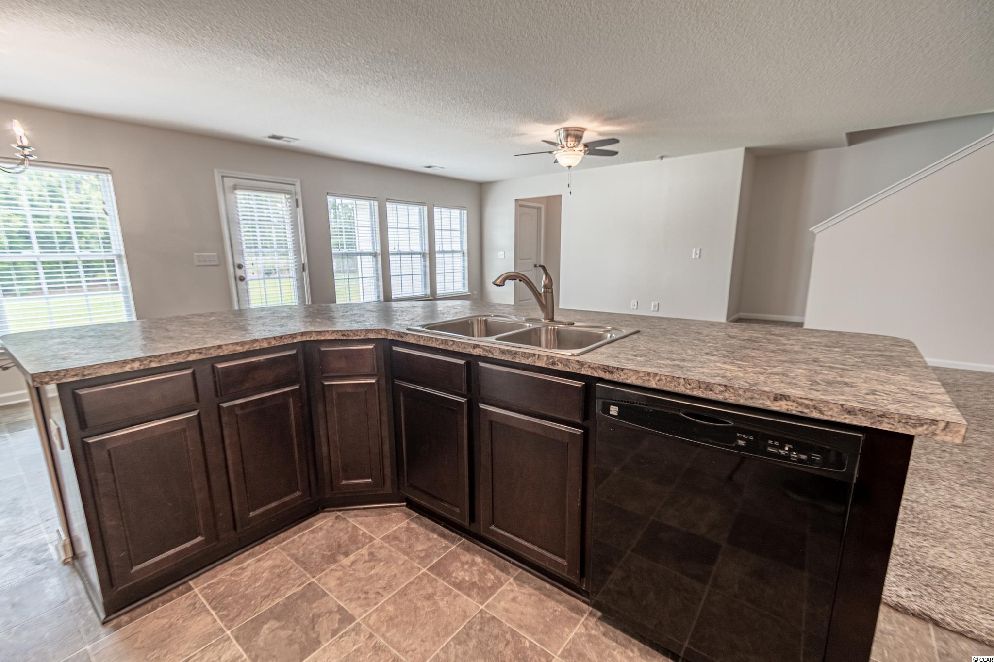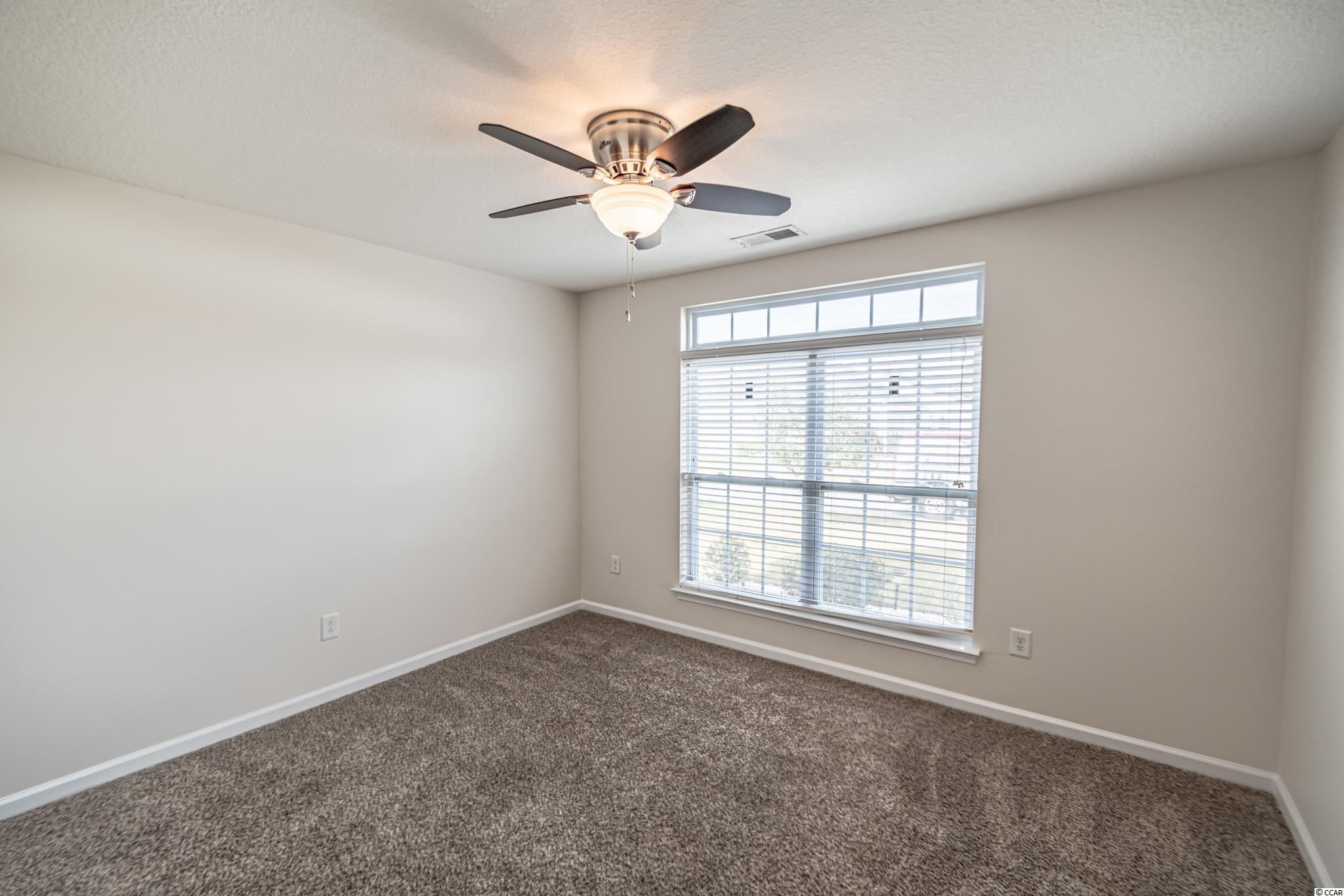 Spacious four bedroom, two bathroom house in the Summerlyn community in Carolina Forest. Wood, carpet, and vinyl covers the flooring. The primary suite is on the first floor and offers ceiling fan, private bathroom with double sinks, stand up shower, walk-in closet and linen closet. The open concept kitchen, living room, and dining room has a ceiling fan, granite counters, work island, breakfast bar, and breakfast nook. Two bedrooms are also located downstairs both with ceiling fans and a sharable hallway bathroom. Upstairs you will find the fourth bedroom and a large loft that can be used as recreation room, media room, or whatever your heart desires. This house backs up to woods and has a sizable back yard. Summerlyn is a natural gas community and offers a beautiful pool, clubhouse, and playground. Square footage is approximate and not guaranteed, buyer is responsible for verification.