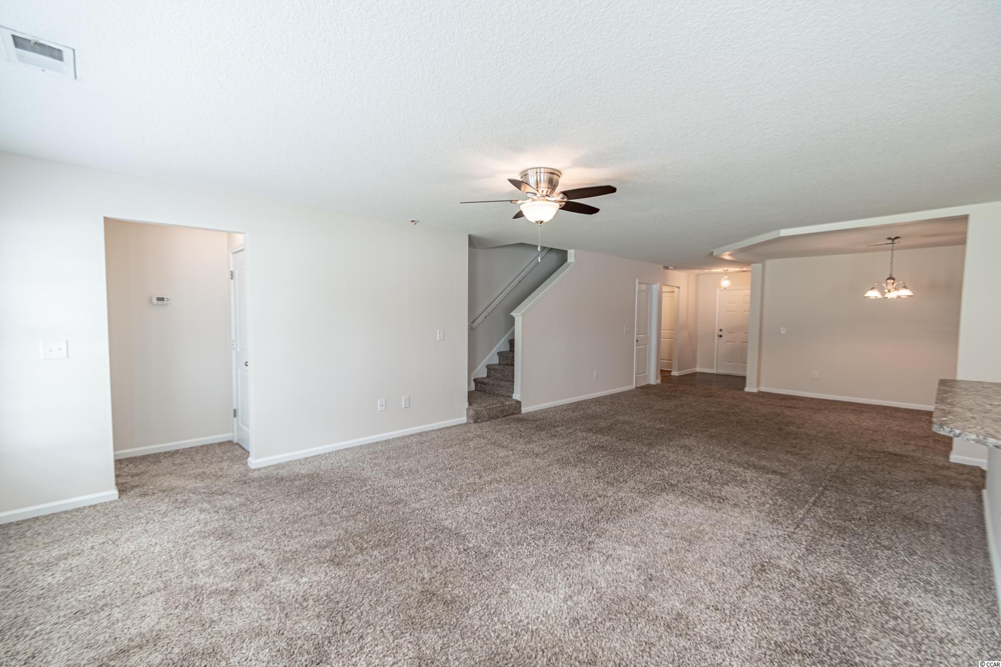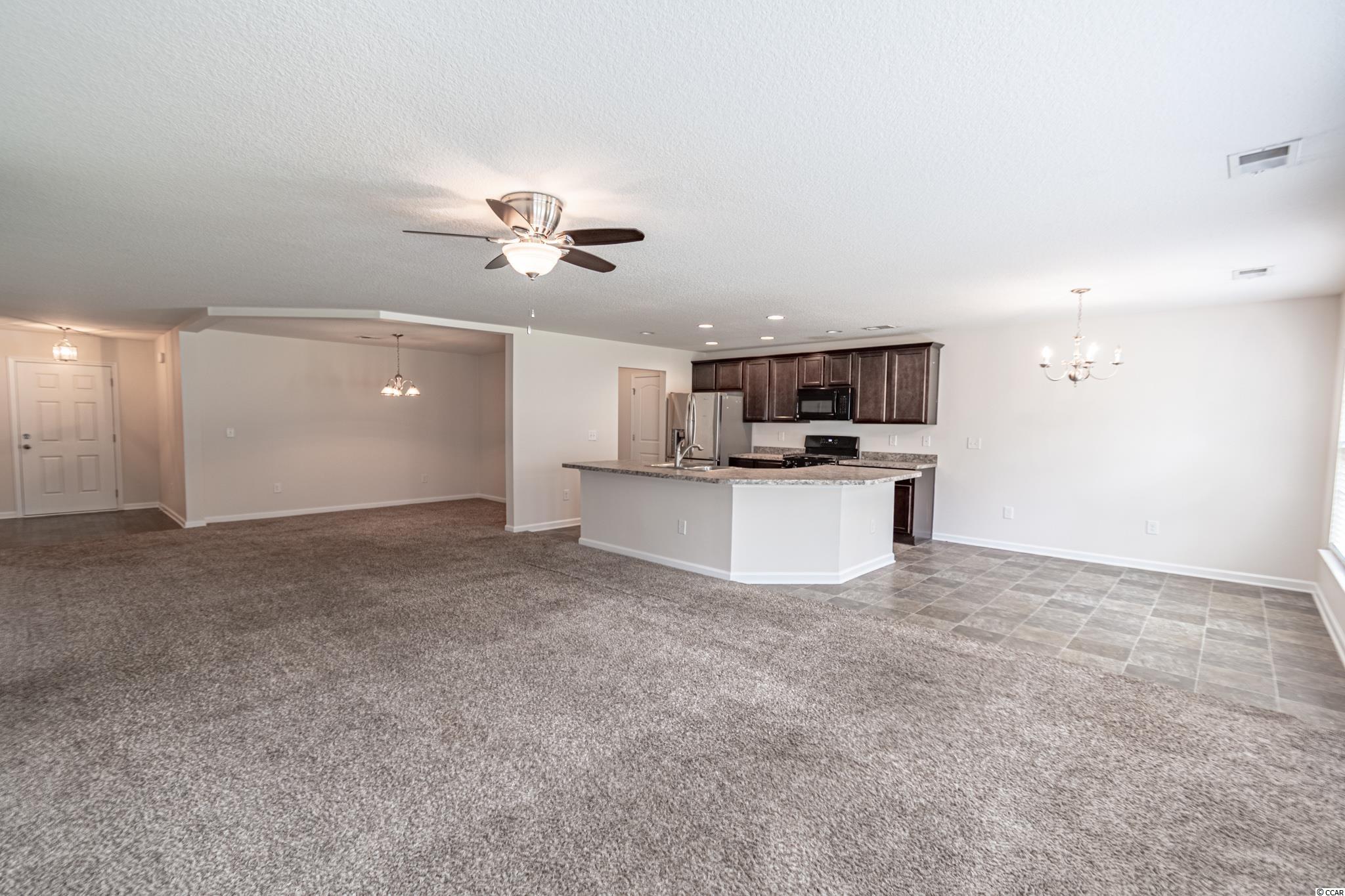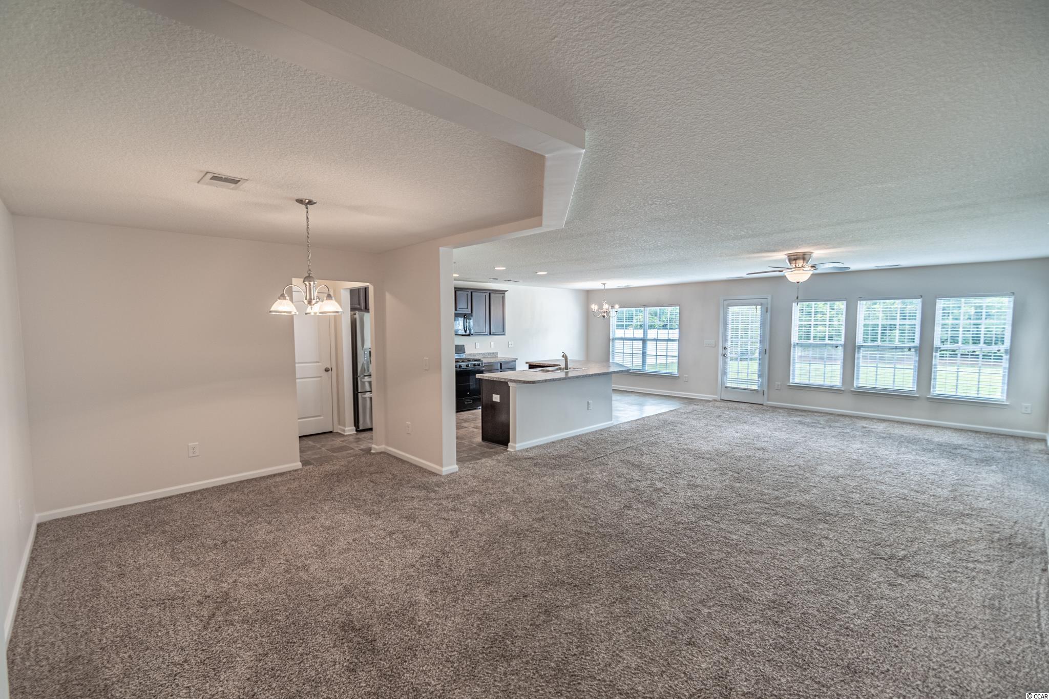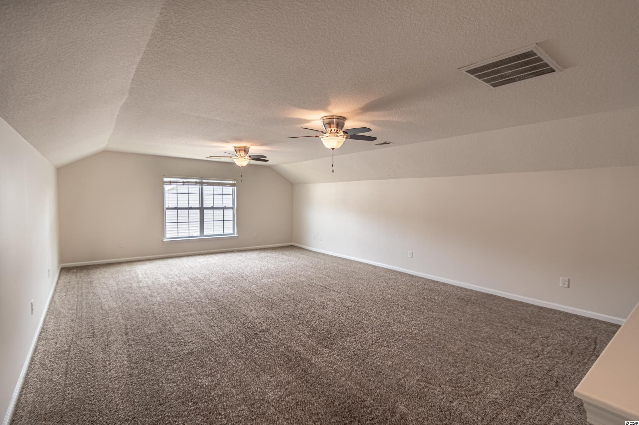Spacious four bedroom, two bathroom house in the Summerlyn community in Carolina Forest. Wood, carpet, and vinyl covers the flooring. The primary suite is on the first floor and offers ceiling fan, private bathroom with double sinks, stand up shower, walk-in closet and linen closet. The open concept kitchen, living room, and dining room has a ceiling fan, granite counters, work island, breakfast bar, and breakfast nook. Two bedrooms are also located downstairs both with ceiling fans and a sharable hallway bathroom. Upstairs you will find the fourth bedroom and a large loft that can be used as recreation room, media room, or whatever your heart desires. This house backs up to woods and has a sizable back yard. Summerlyn is a natural gas community and offers a beautiful pool, clubhouse, and playground. Square footage is approximate and not guaranteed, buyer is responsible for verification.