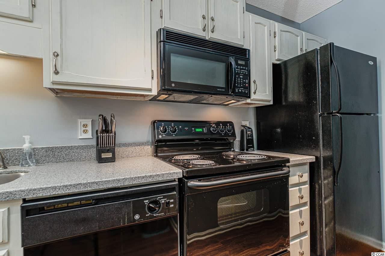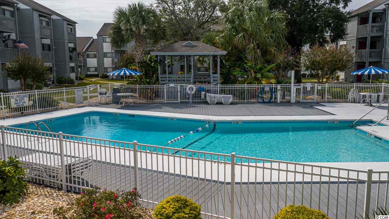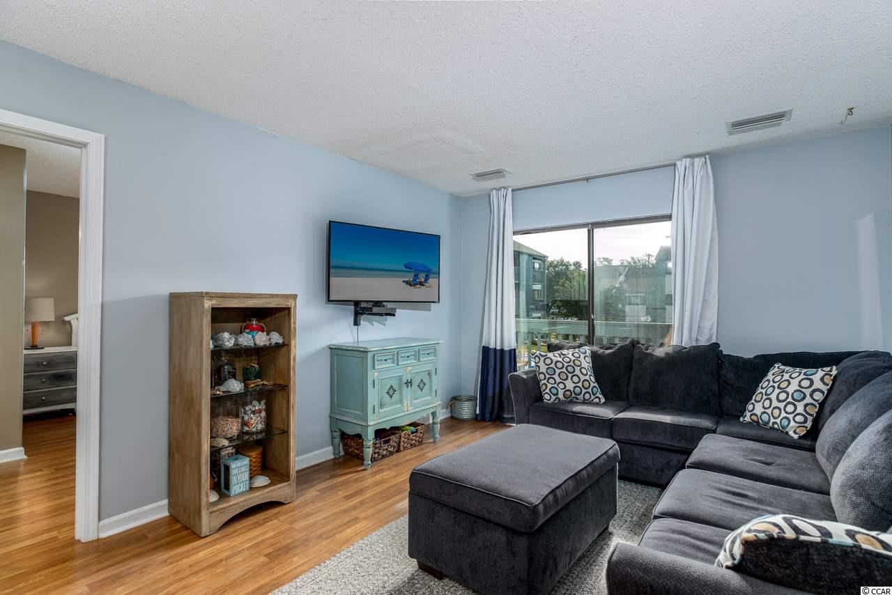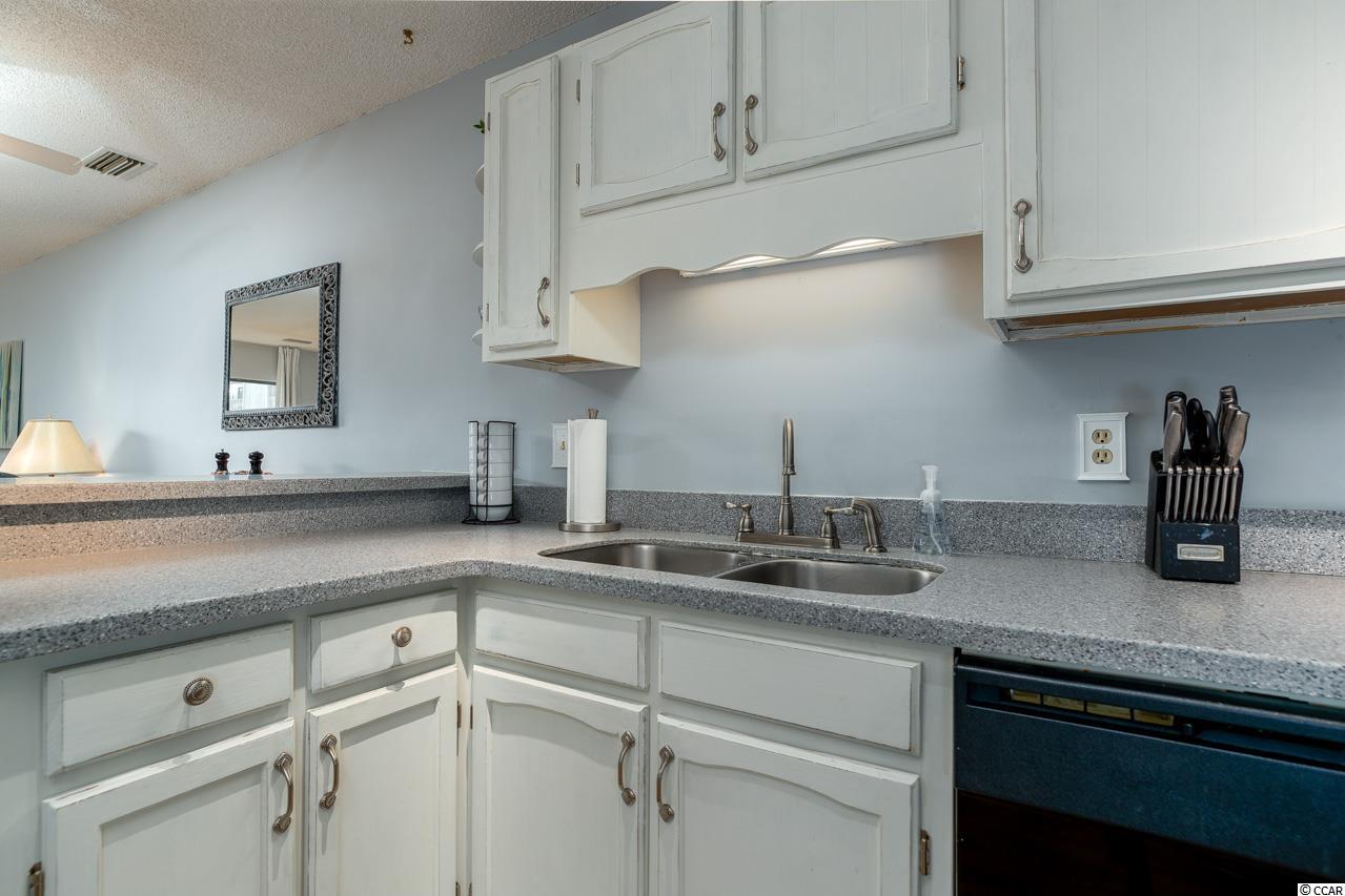 Amazing opportunity to own a condo just steps to the water in Myrtle Beach! Small complex conveniently located off 77th Avenue. Second floor unit with a true split bedroom plan. Laminate flooring for easy care located throughout the unit. Warm color pallet for relaxing vibes. Full kitchen with distressed white cabinets, solid surface countertops and black appliances. A breakfast bar is located in the dining area. Living room features a sliding glass door to the balcony overlooking the pool. A perfect spot for early morning coffee or afternoon Happy Hour. Outside storage room is located on deck. The guest room is located to the front of the unit and has access to a hall bath. A washer and dryer are also conveniently located here. The Master overlooks the pool also and has a large closet and a private bath. The complex offers not only a large swimming pool, but a picnic area with grills under a gazebo just off the pool deck. This sweet unit is lovingly updated and features a two year old washer and dryer and a four year old HVAC. Nothing to do but move in and start enjoying life at the beach. This convenient location offers not only quick access to the beach, but dozens of restaurants, shopping and entertainment choices. The unit is being sold partially furnished and includes all electronics. A full list is available from your agent. Hurry, you can be in before the holidays!